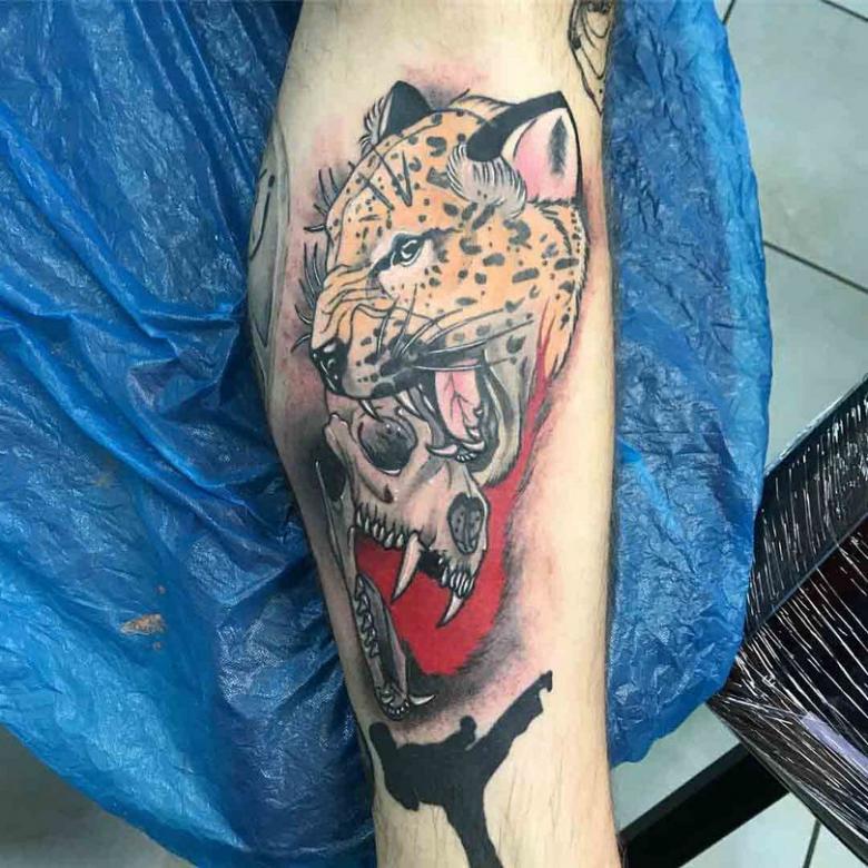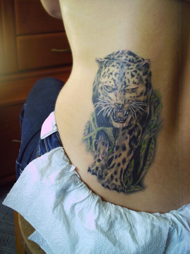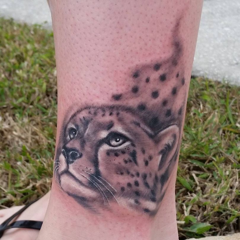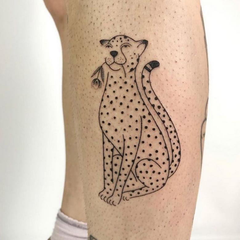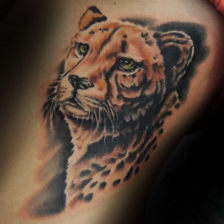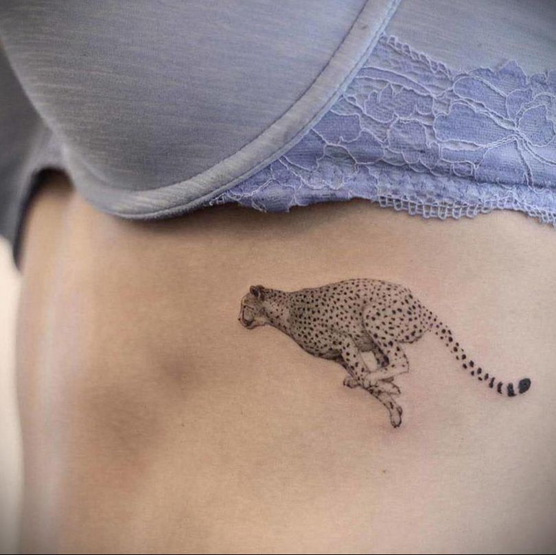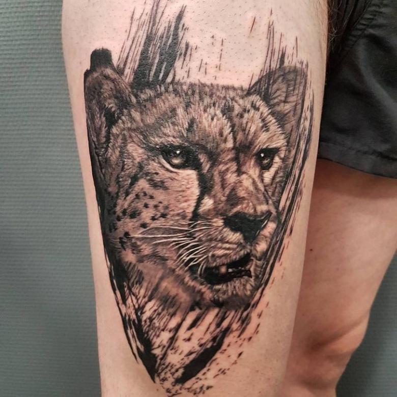 Beaucoup de gens aiment la variante sur les mollets, les chevilles, et surtout le guépard miniature en train de courir. Sur les côtes, les omoplates, l'épaule, le dos, une bonne image détaillée du museau de l'animal - dans un état grimaçant ou calme.