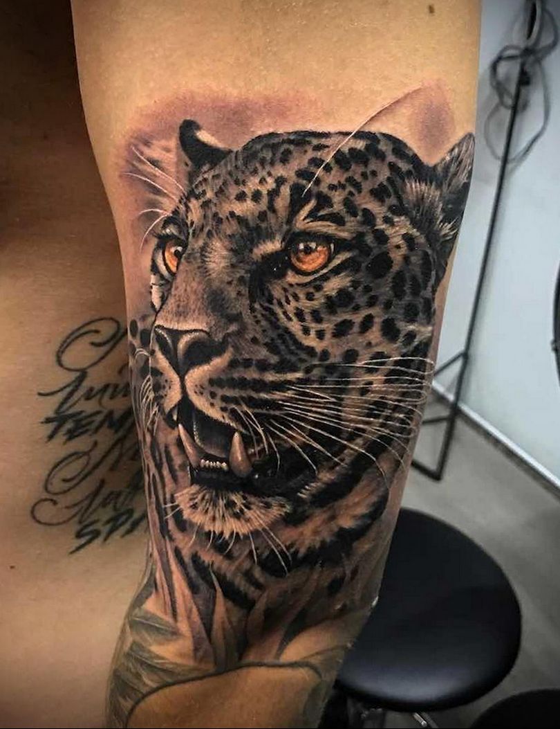 Le motif du guépard convient à un large éventail de parties du corps. Le choix classique est l'épaule, l'omoplate ou la cuisse et le dos. Le style du croquis, la taille et d'autres paramètres sont déterminants. Un bon maître tiendra toujours compte du jeu des muscles et des particularités de l'apparence d'une personne.