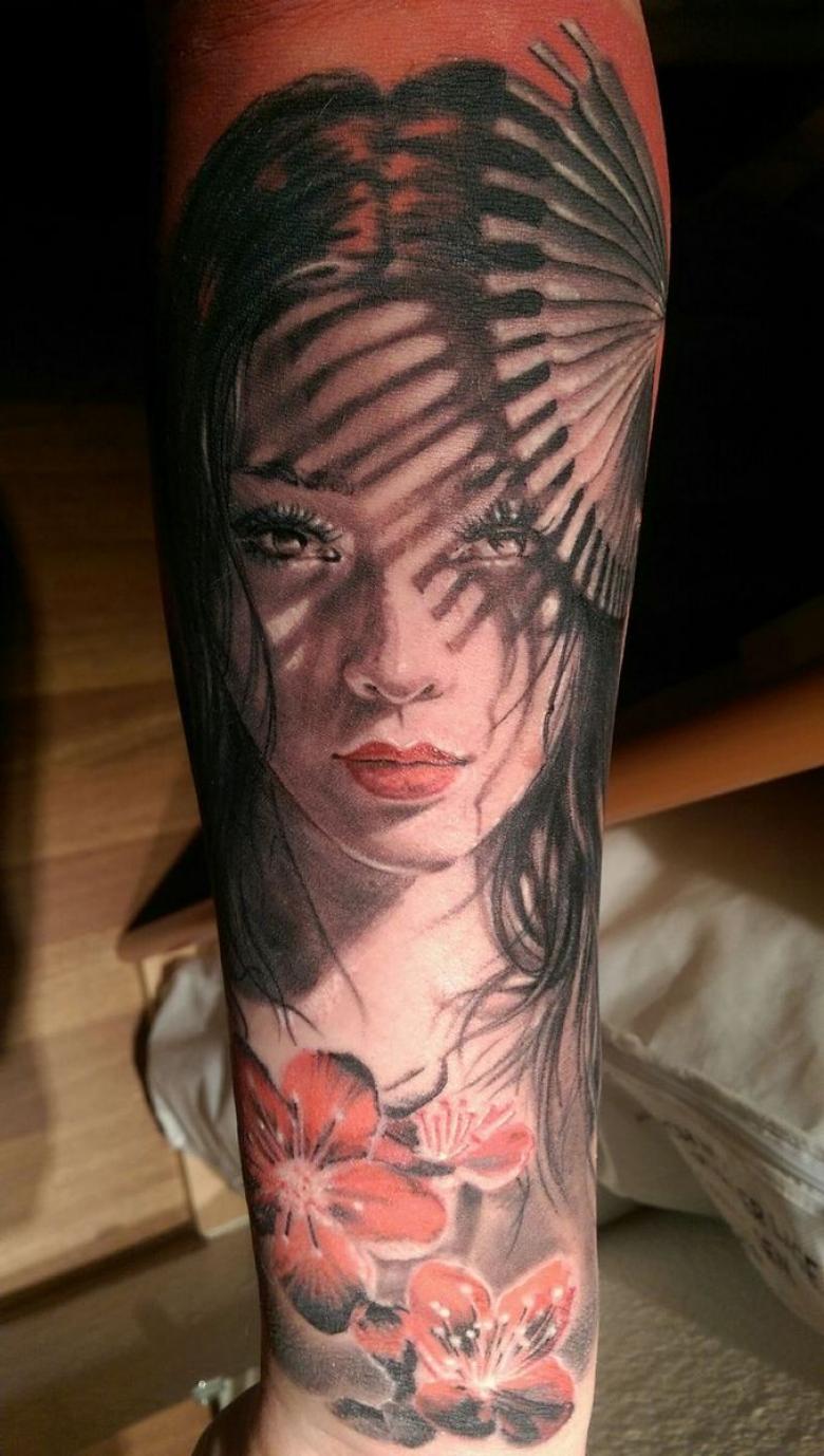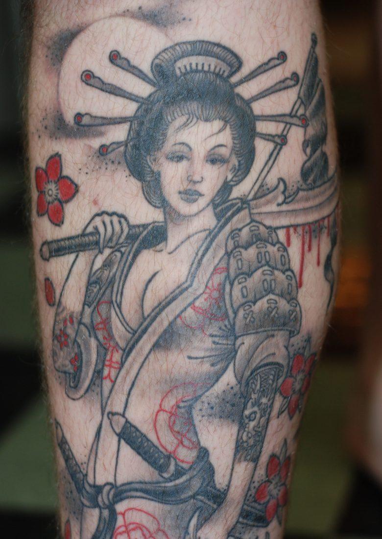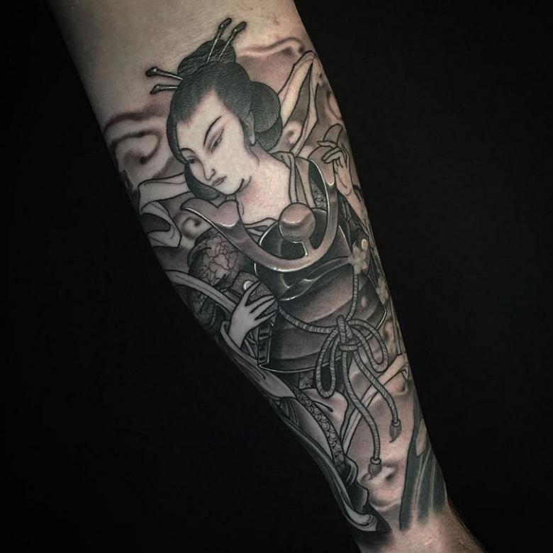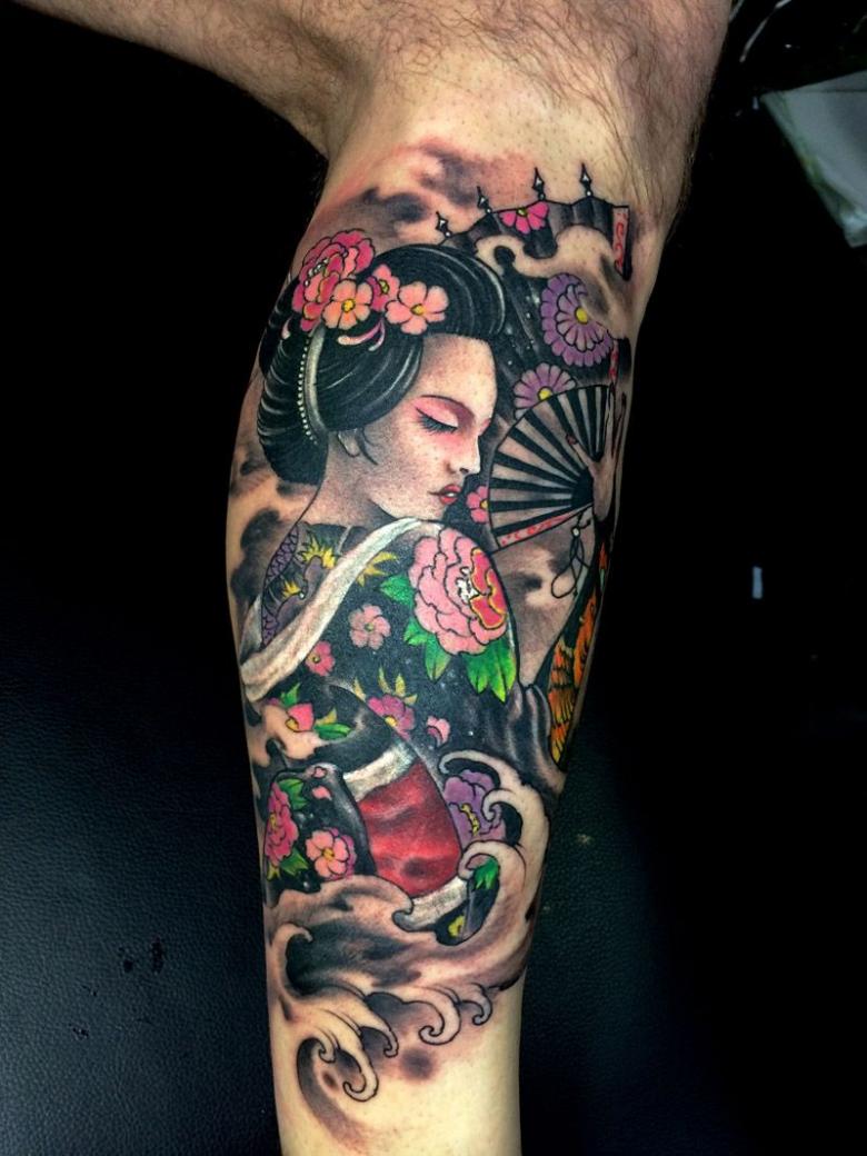 Une geisha en pied peut être représentée sur l'avant-bras ou dans le dos. Sur le bas de la jambe, d'ailleurs, le tatouage serait assez spectaculaire.