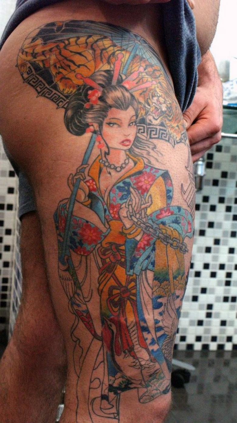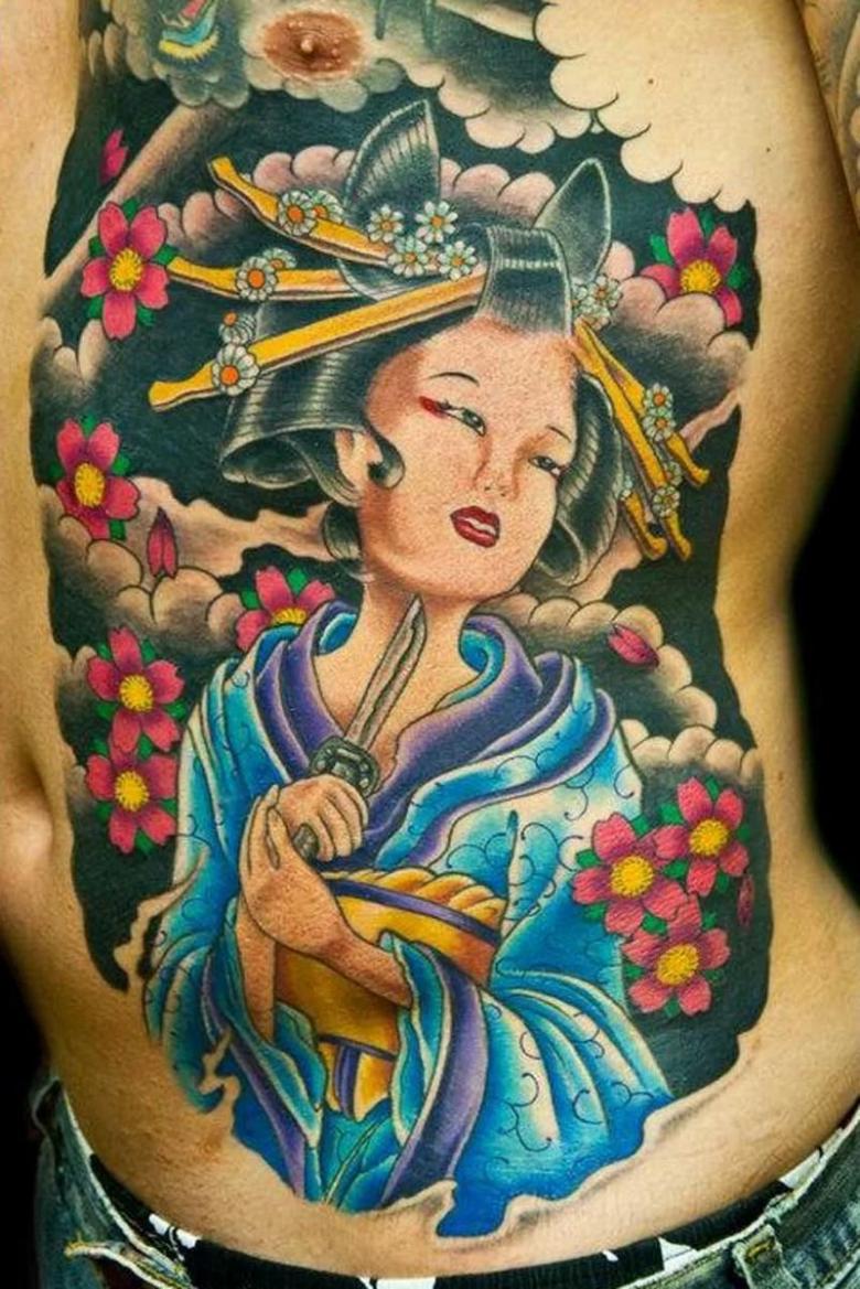 - Les hommes sont plus susceptibles de mettre l'image d'une geisha sur leur poitrine.