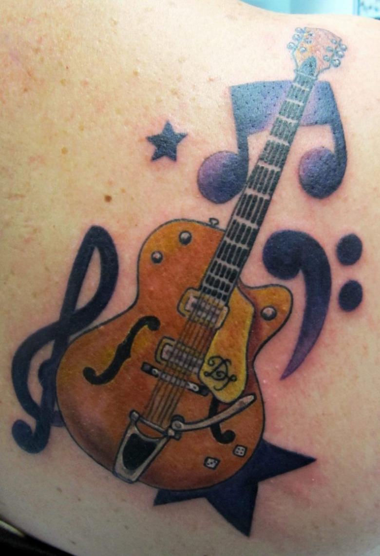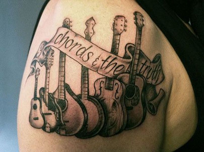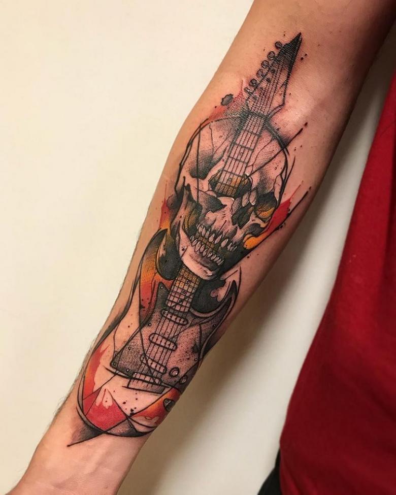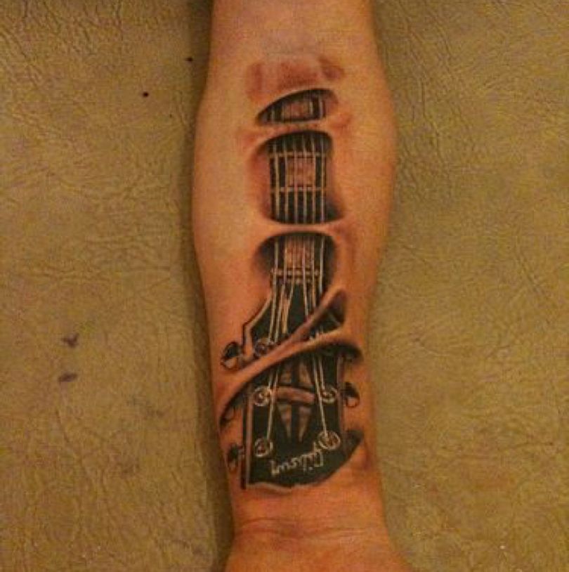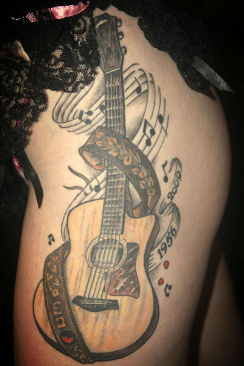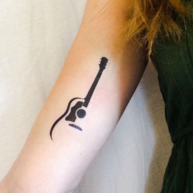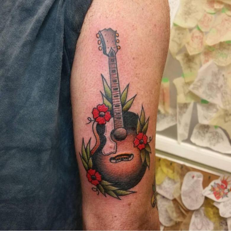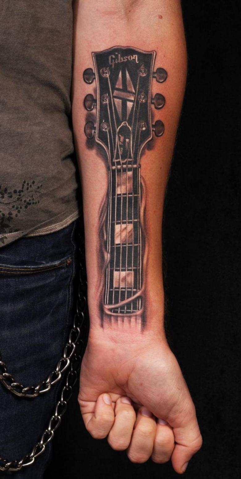 Tattoo guitare - design et signification du tatouage pour les filles et les hommes, où le placer (sur le bras, l'épaule), photos amusantes