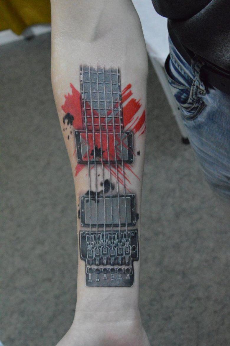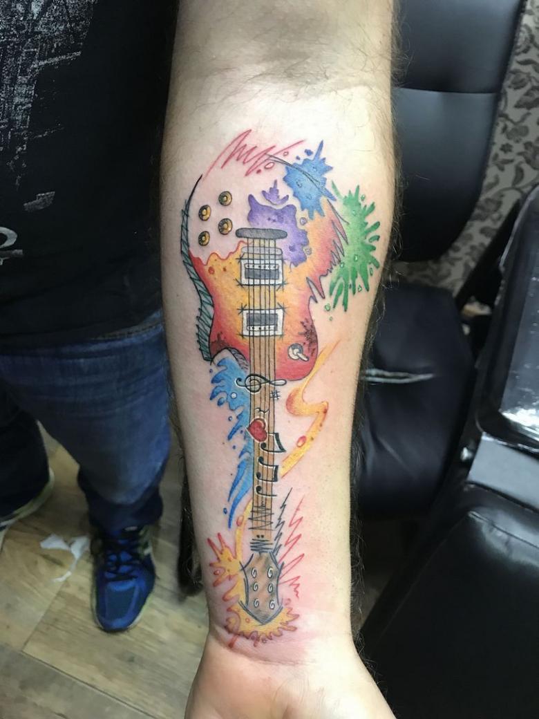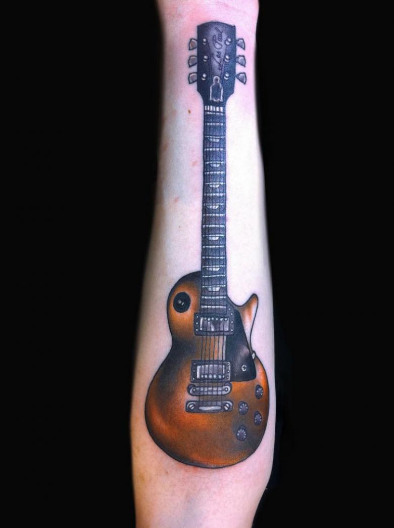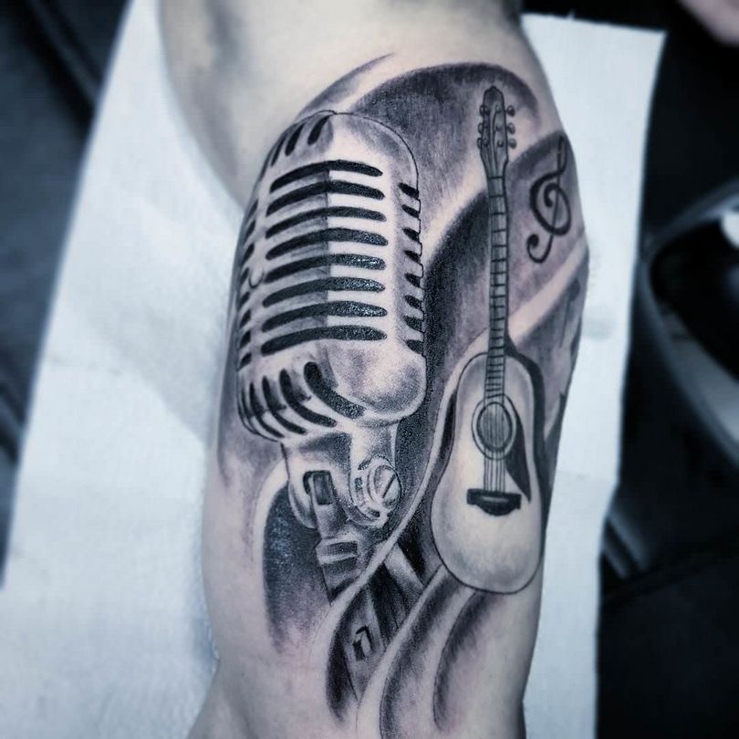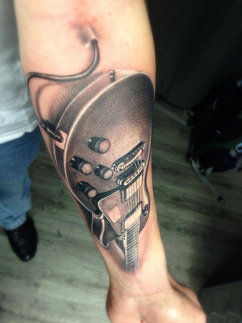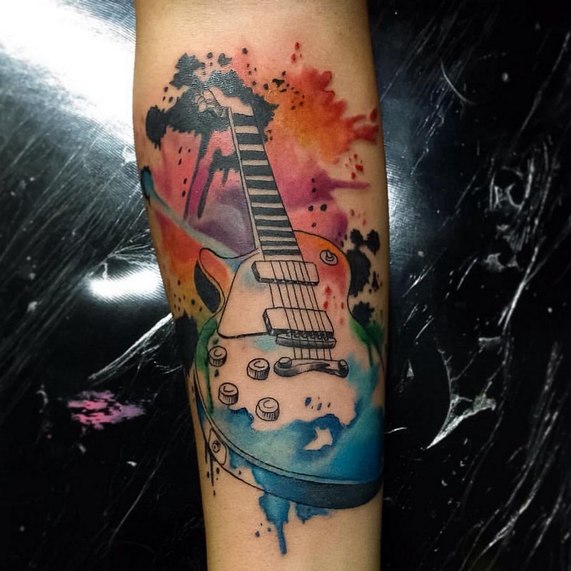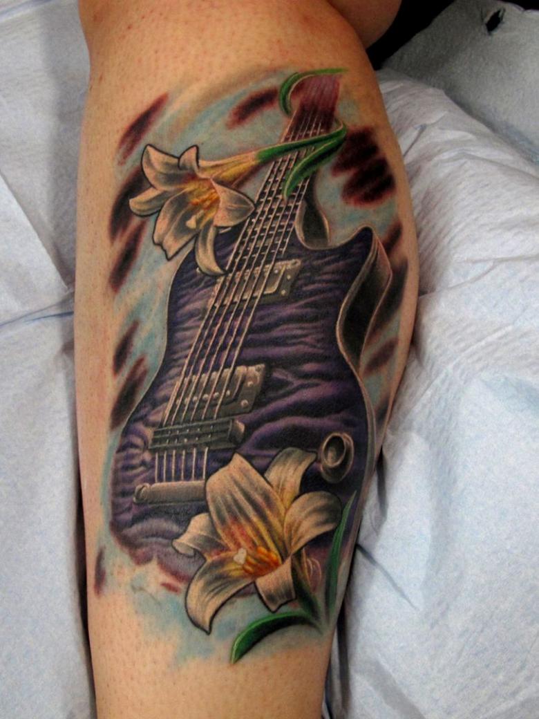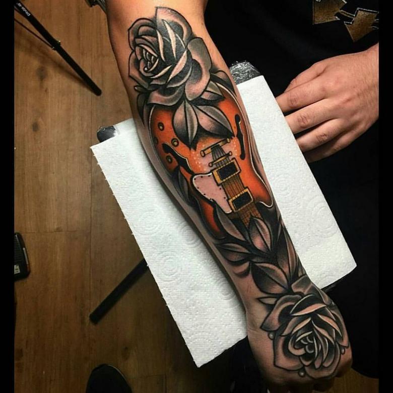 Tattoo guitare - design et signification du tatouage pour les filles et les hommes, où le placer (sur le bras, l'épaule), photos amusantes