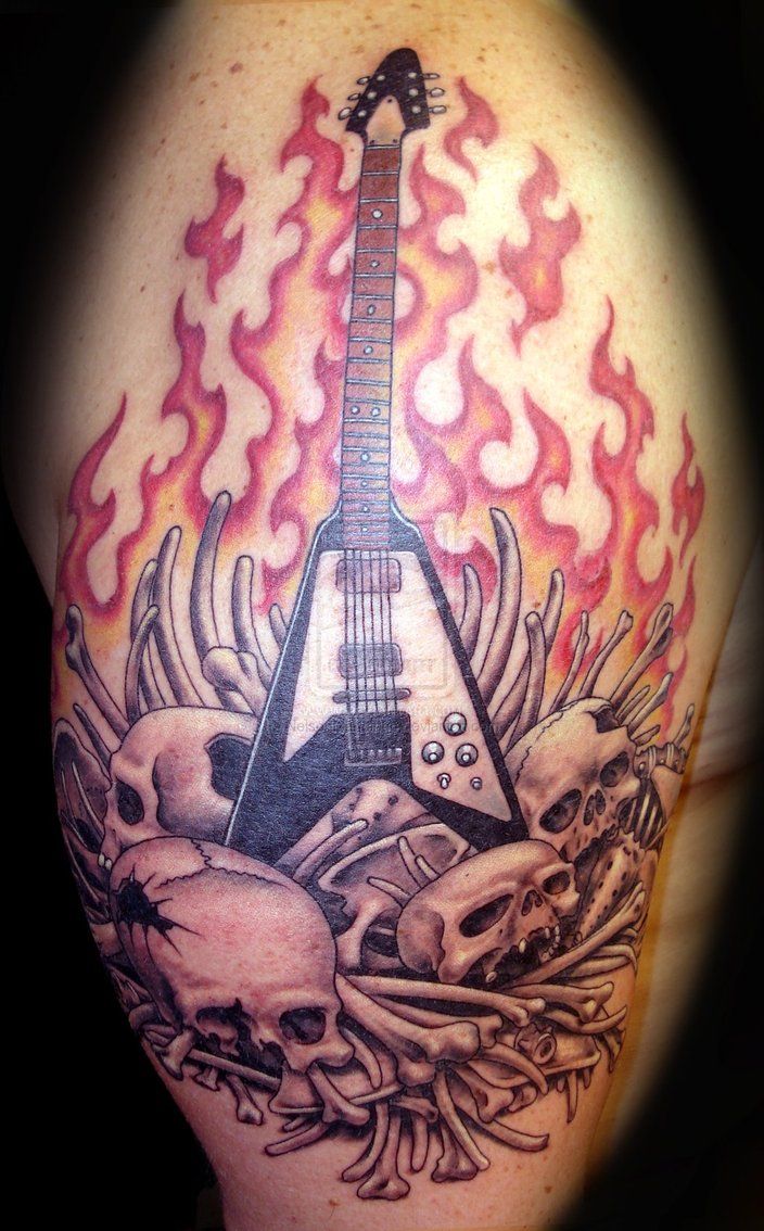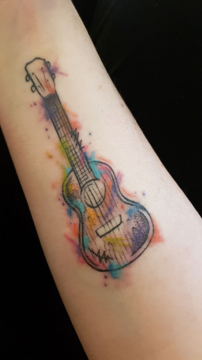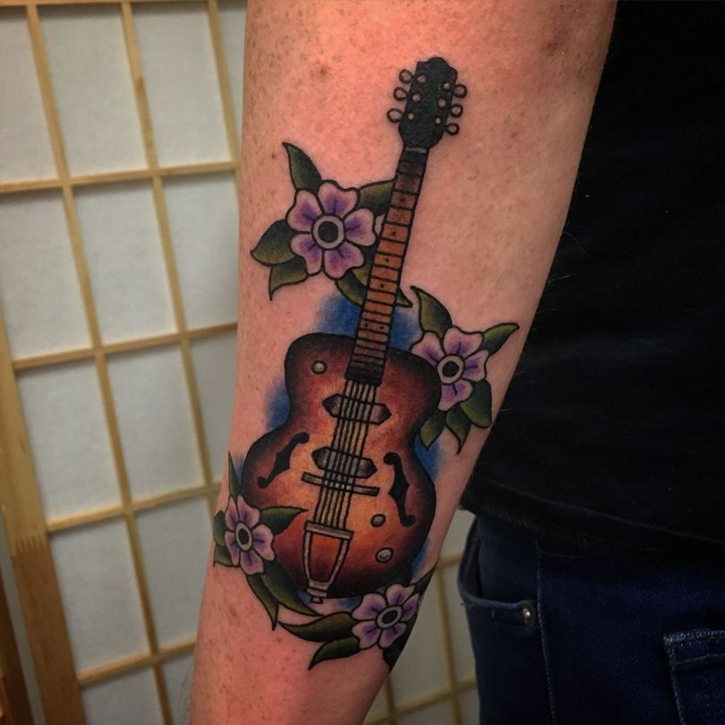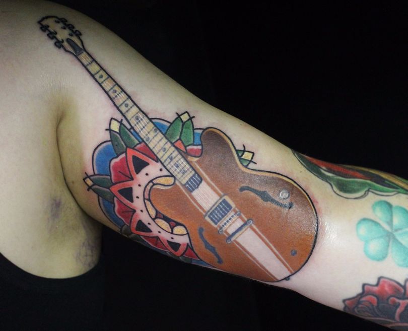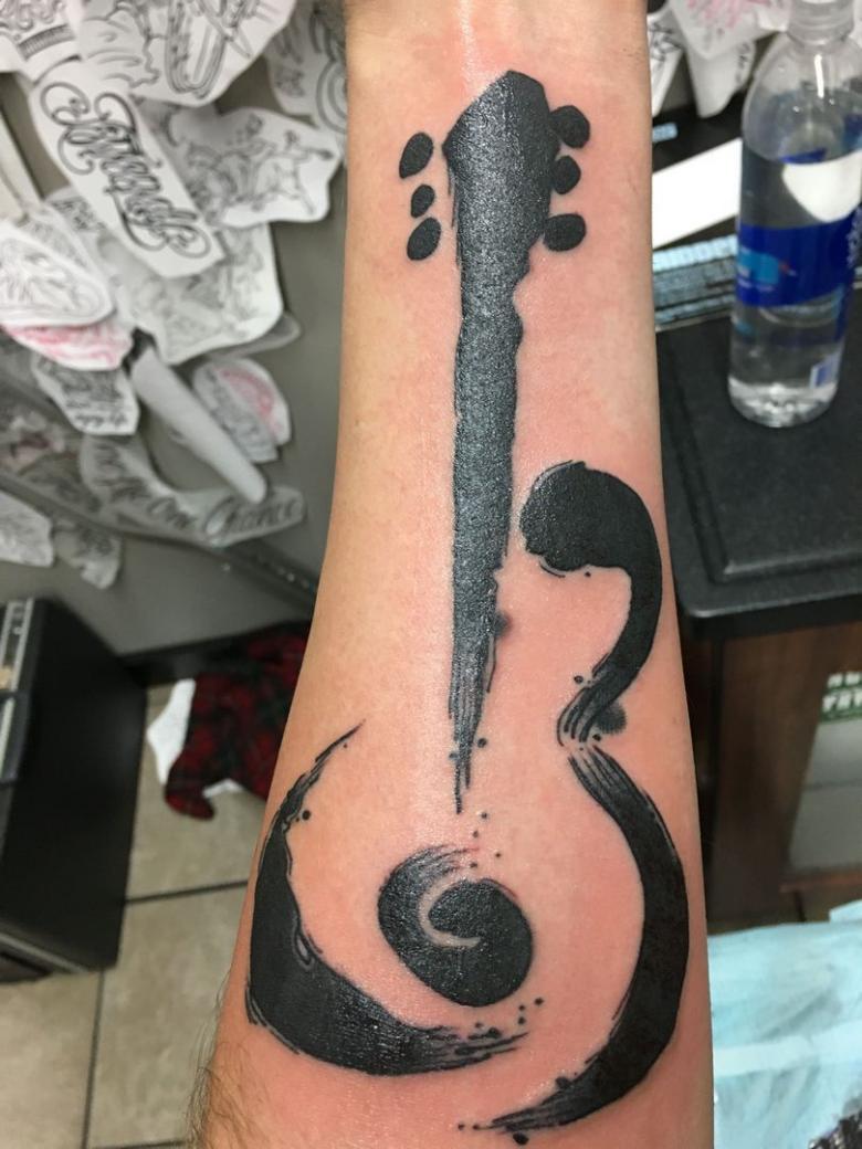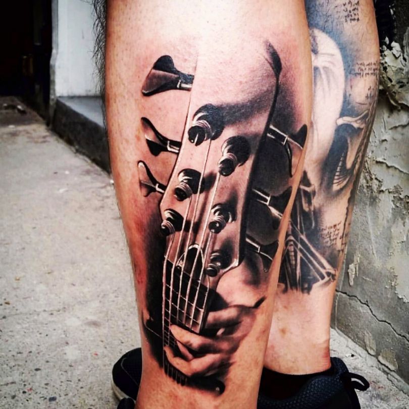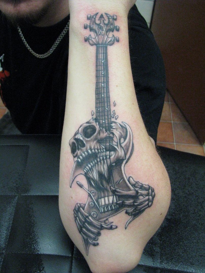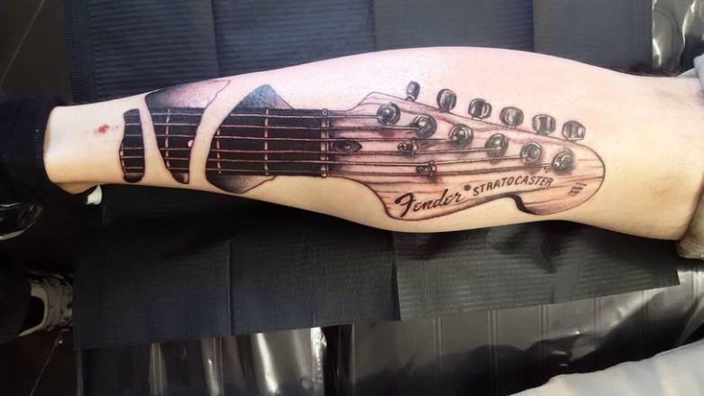 Tattoo guitare - design et signification du tatouage pour les filles et les hommes, où le placer (sur le bras, l'épaule), photos amusantes