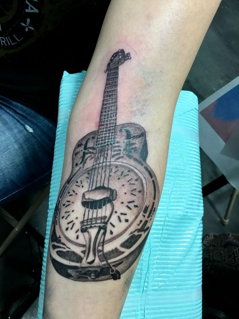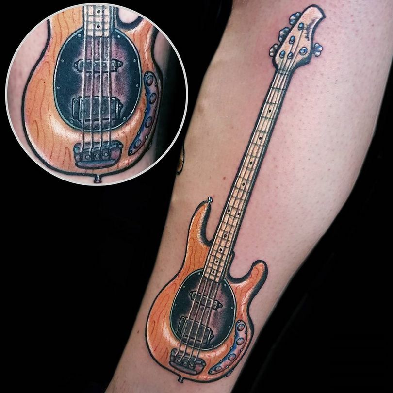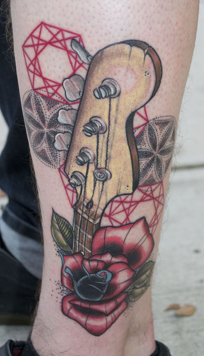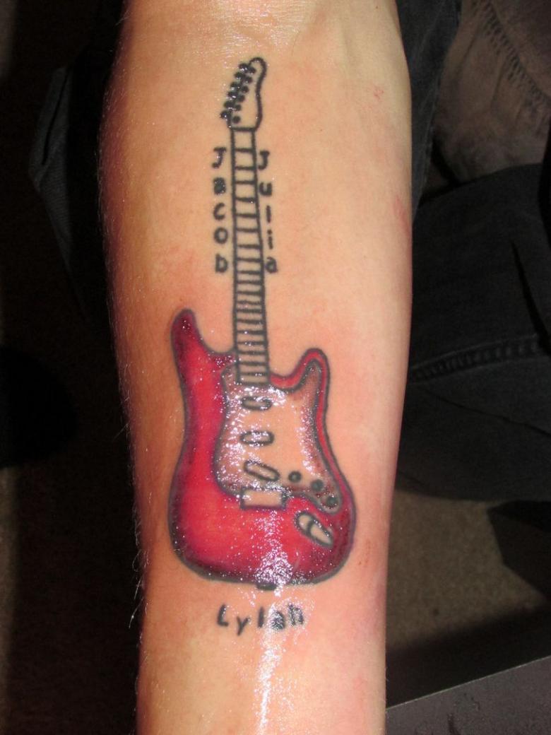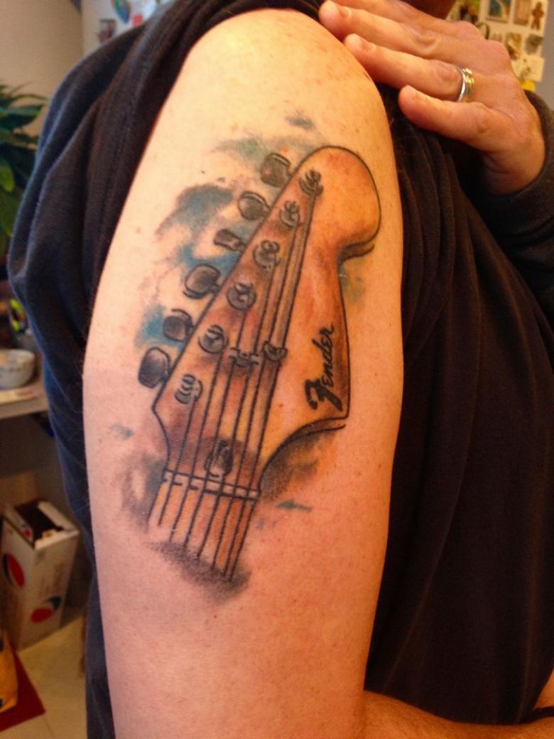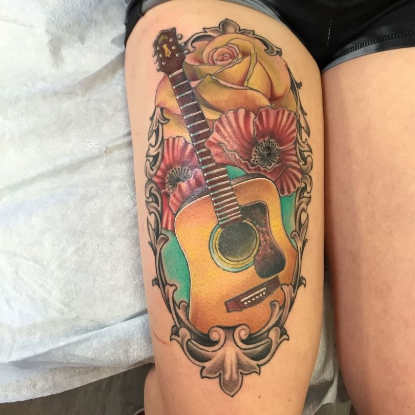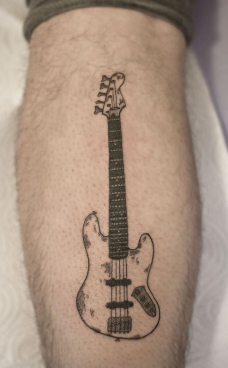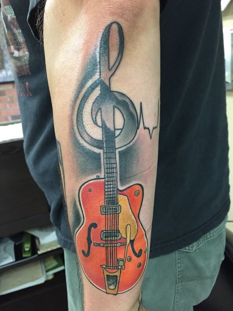 Tattoo guitare - design et signification du tatouage pour les filles et les hommes, où le placer (sur le bras, l'épaule), photos amusantes