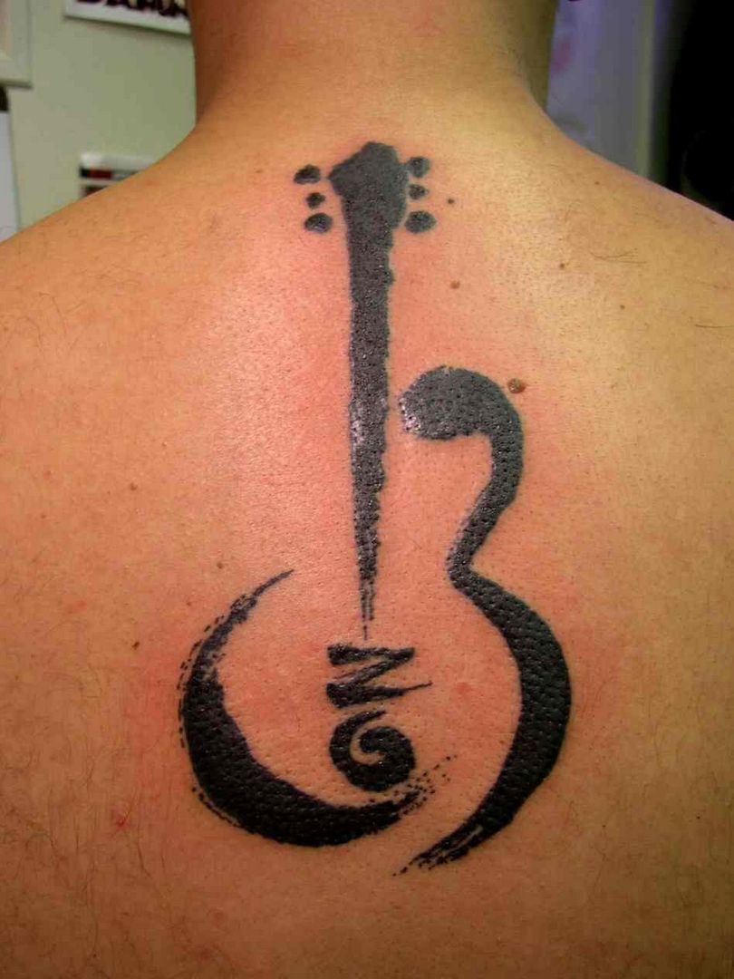 Une image assez courante de la guitare est le contour de l'instrument dans la silhouette vidéo du corps féminin. Un tatouage de guitare de grande taille, par exemple, appliqué sur le dos d'une fille, souligne la beauté de la personne qui le porte. N'importe lequel de ces styles rendra un tatouage de guitare attrayant.