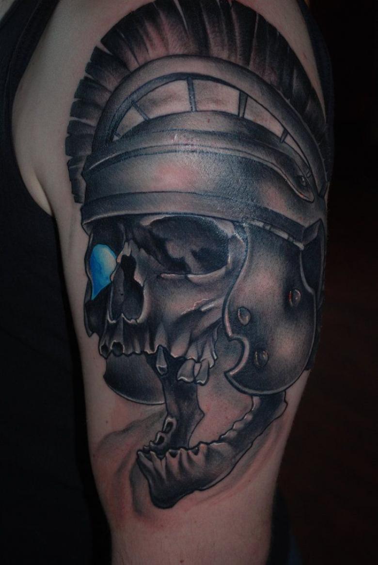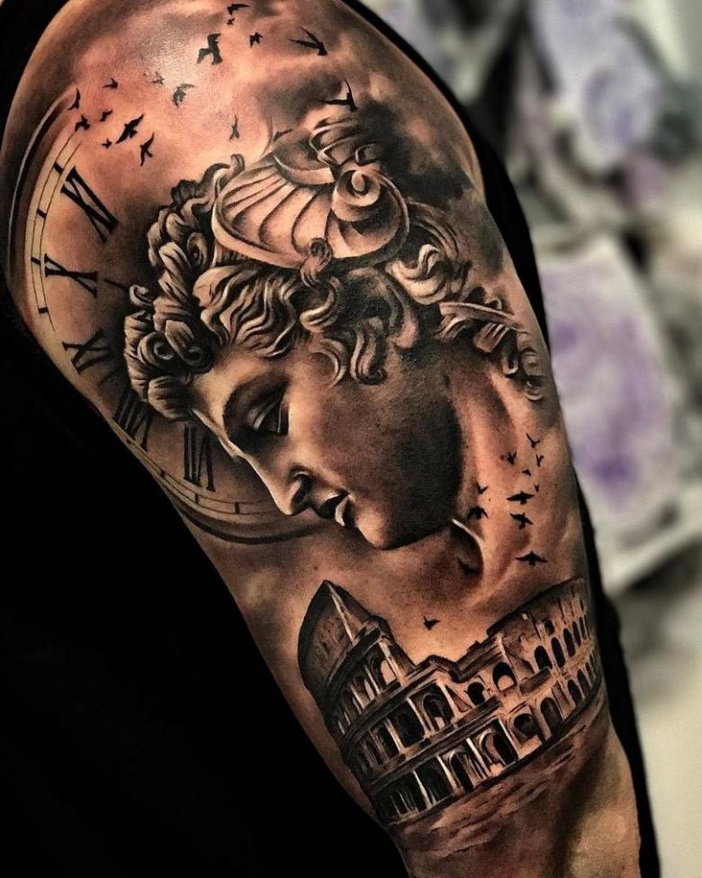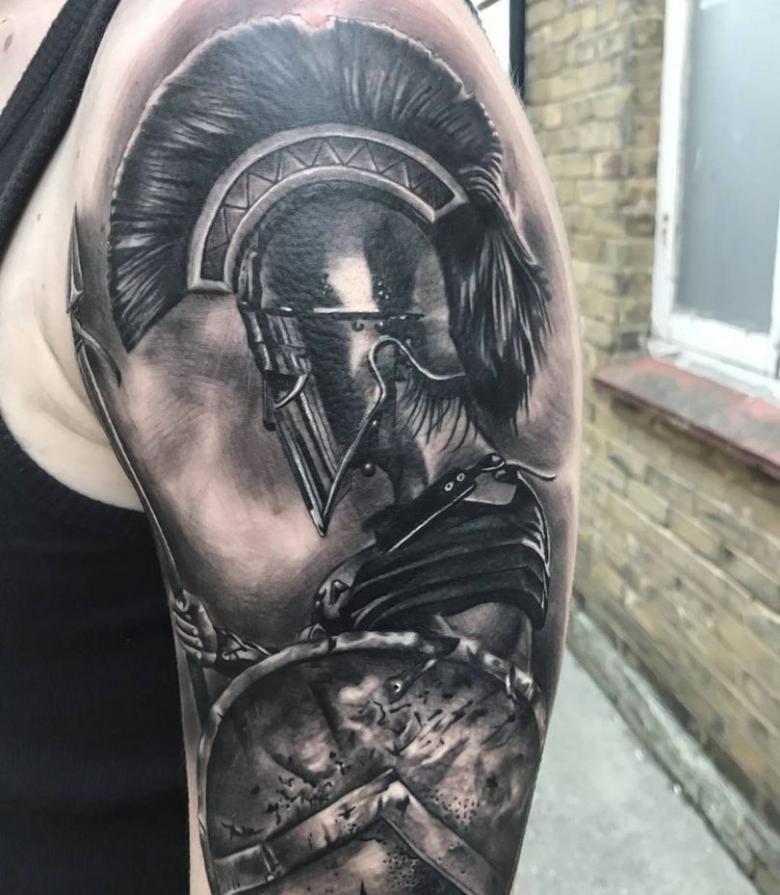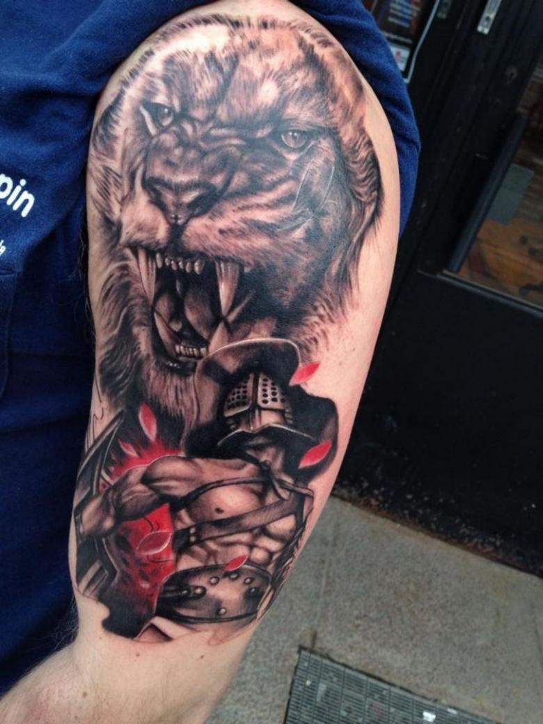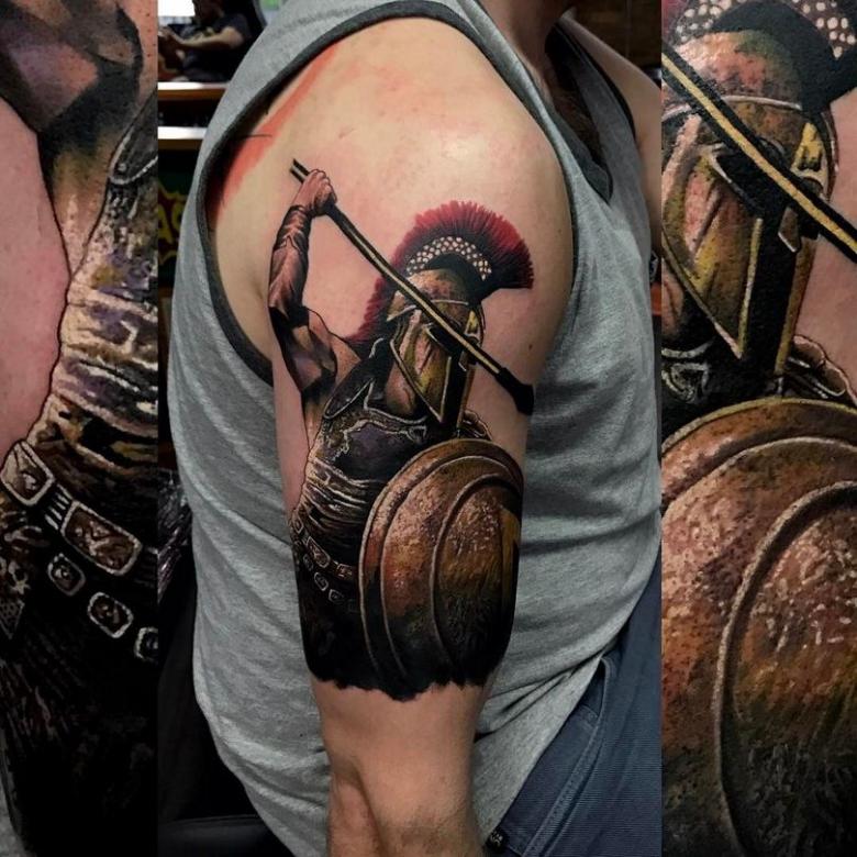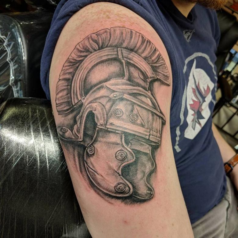 Les tatouages de gladiateurs volumineux et réalistes sont parfaits sur l'épaule car il y a suffisamment d'espace pour créer une image détaillée. Ceci est particulièrement avantageux si l'épaule est massive et musclée.