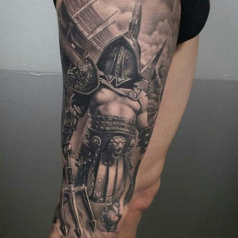 La signification moderne des tatouages avec un gladiateur indique la fermeté d'esprit et de caractère de son porteur.