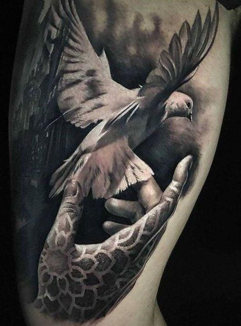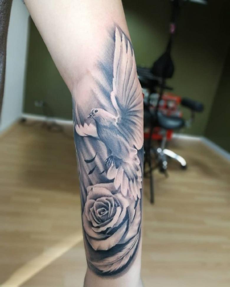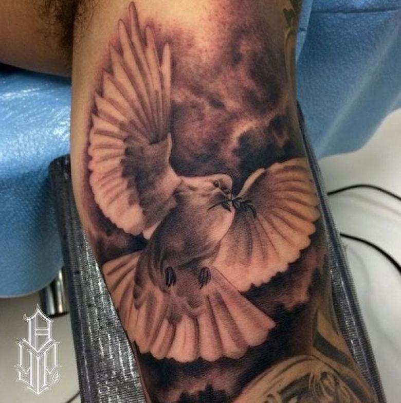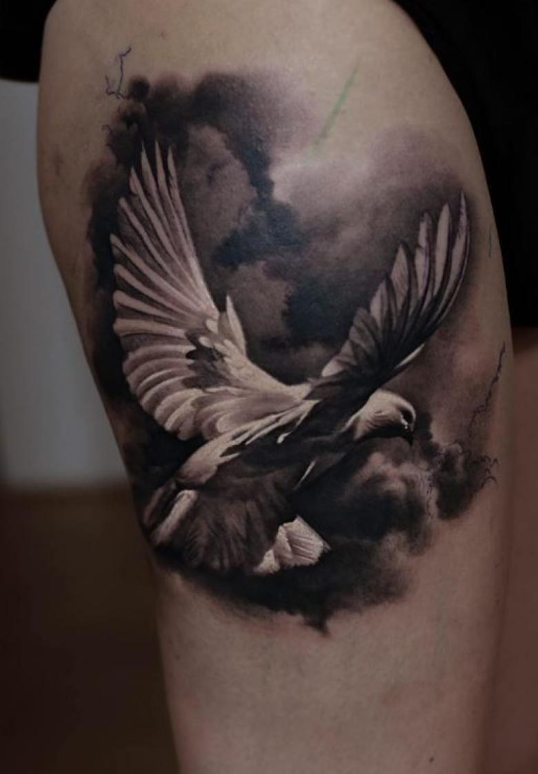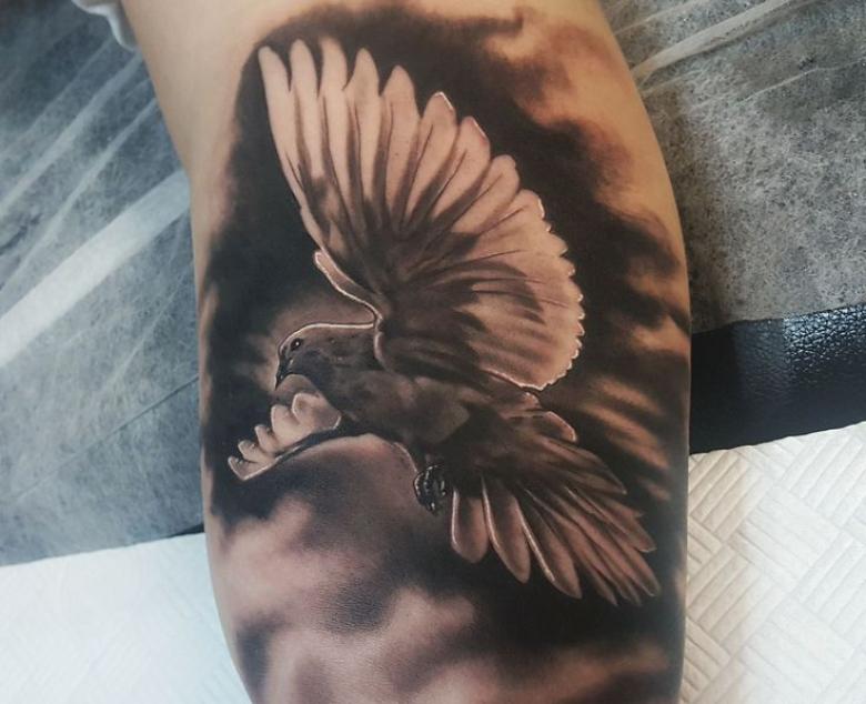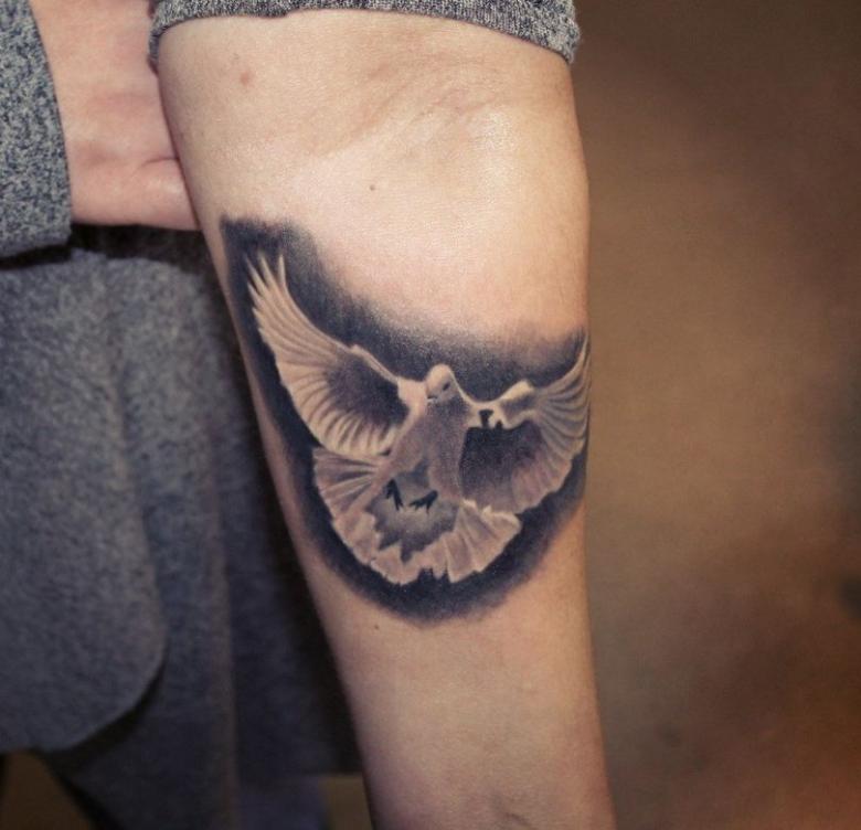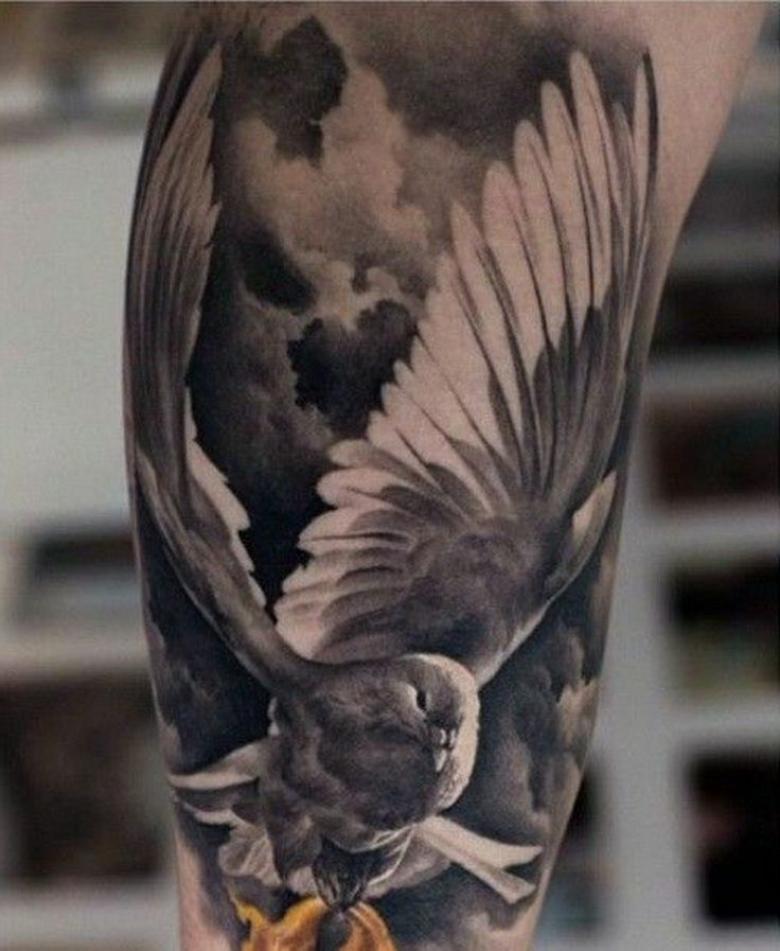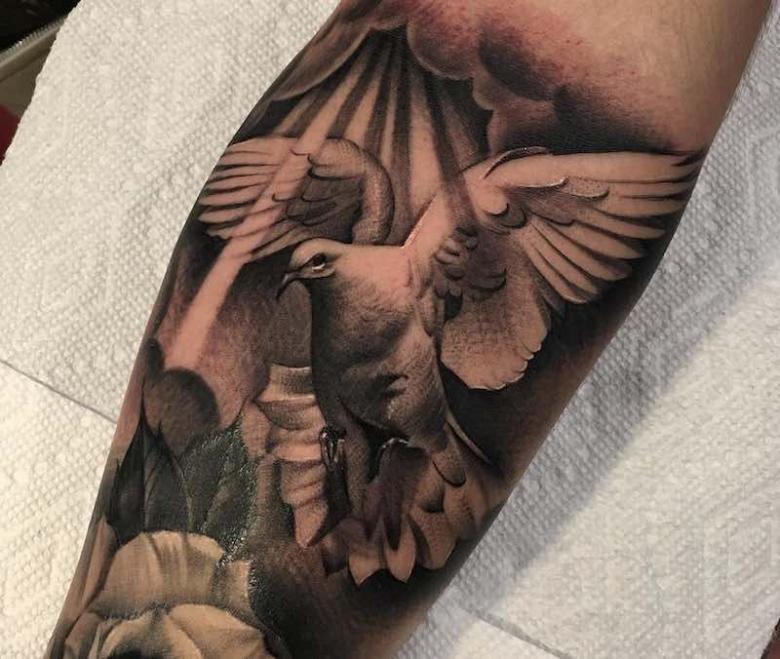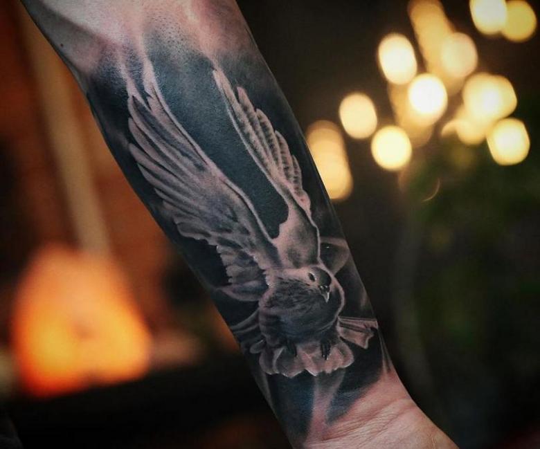 Tatouage d'une colombe - symbolisme, espèce, signification pour les filles et les hommes, placement, croquis et idées de photos