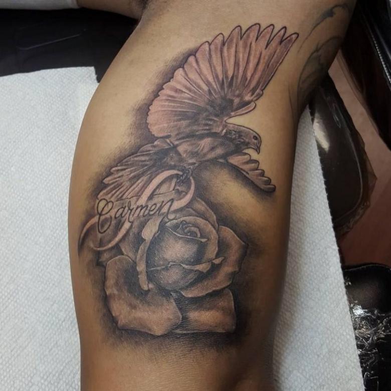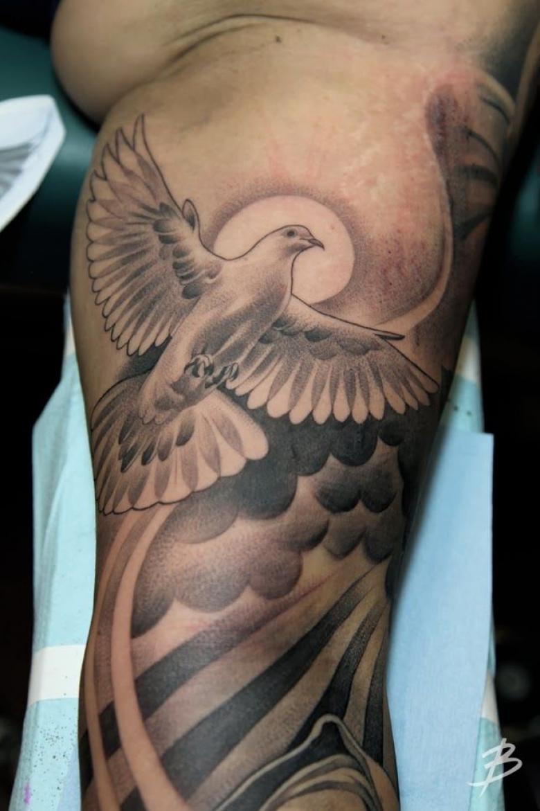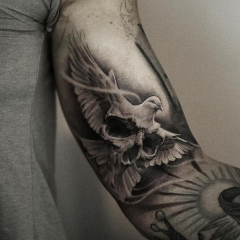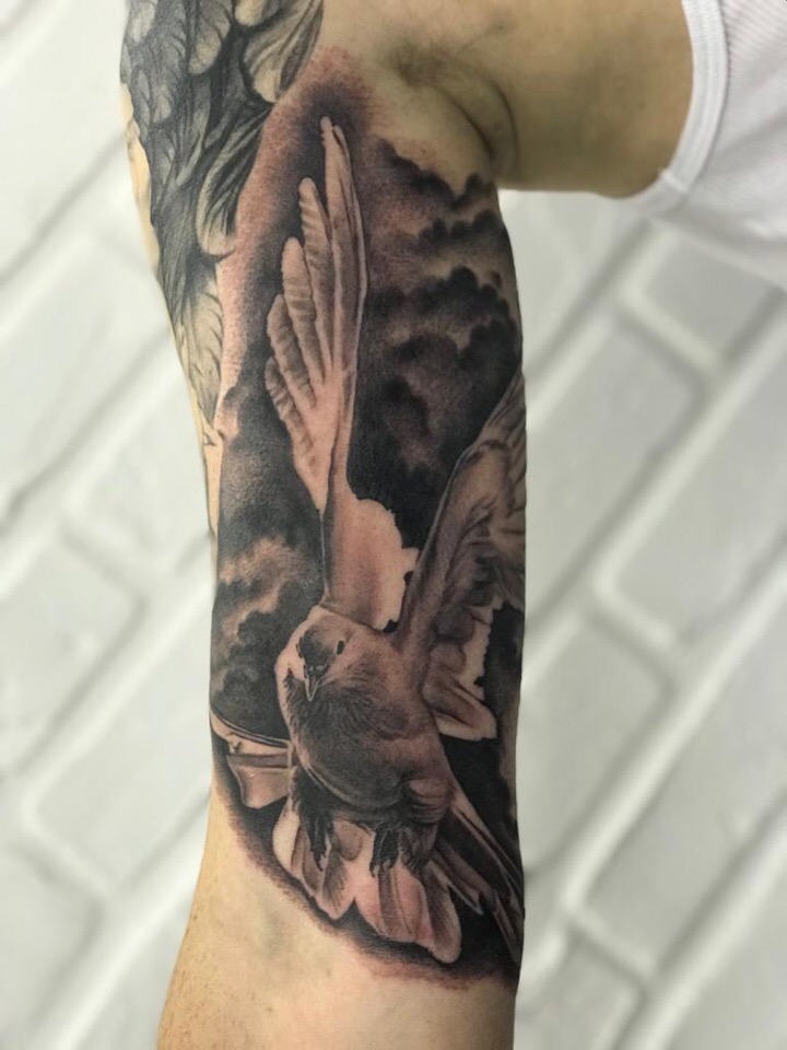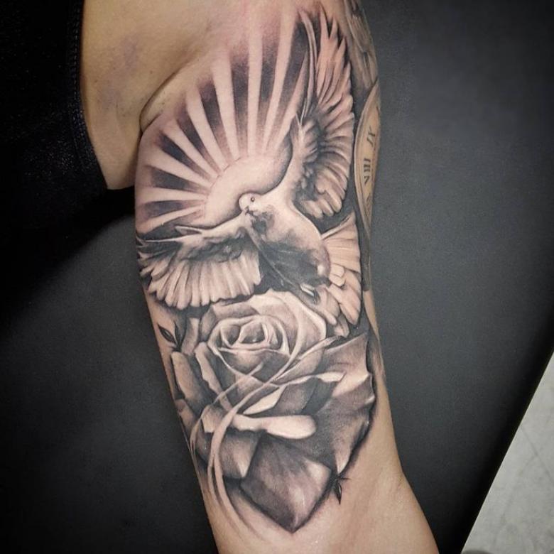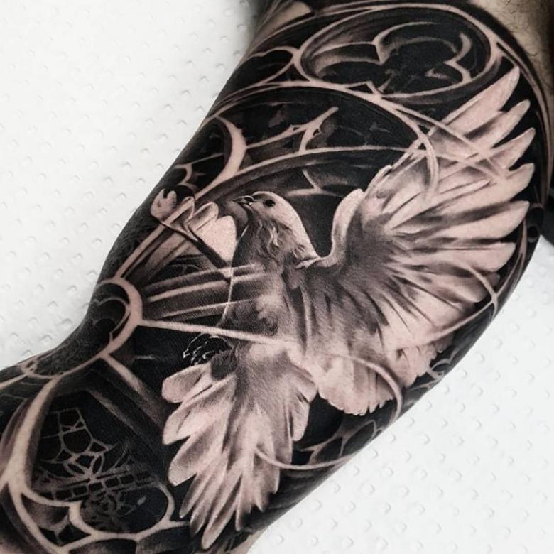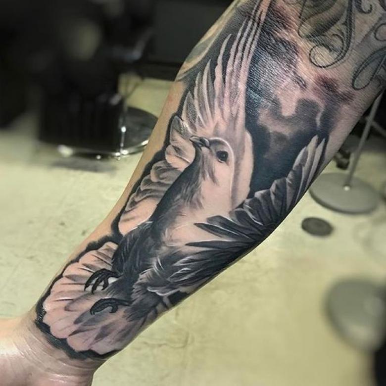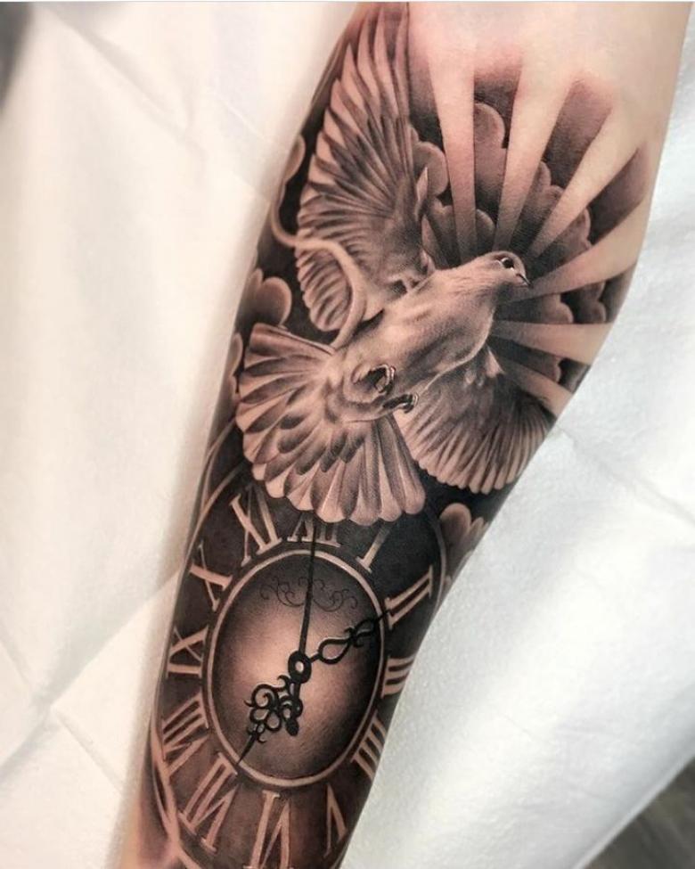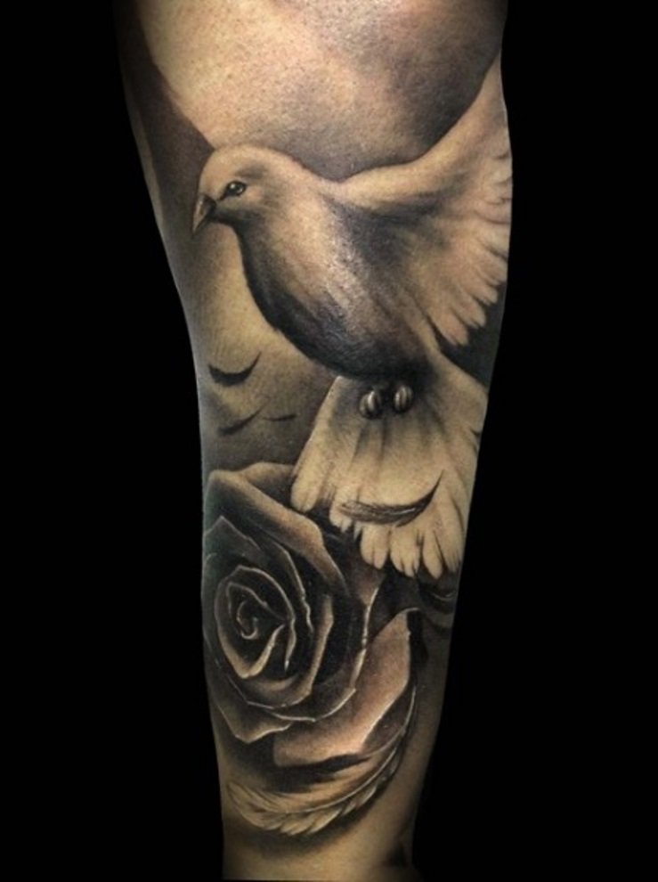 Tatouage d'une colombe - symbolisme, espèce, signification pour les filles et les hommes, placement, croquis et idées de photos