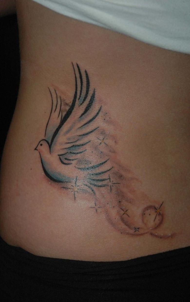- Pour les jeunes hommes, la colombe sur le corps est interprétée comme un symbole de sincérité, de droiture et de désir d'aller de l'avant, en surmontant les obstacles sur son chemin.