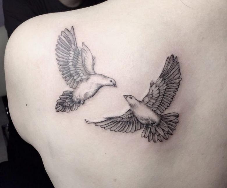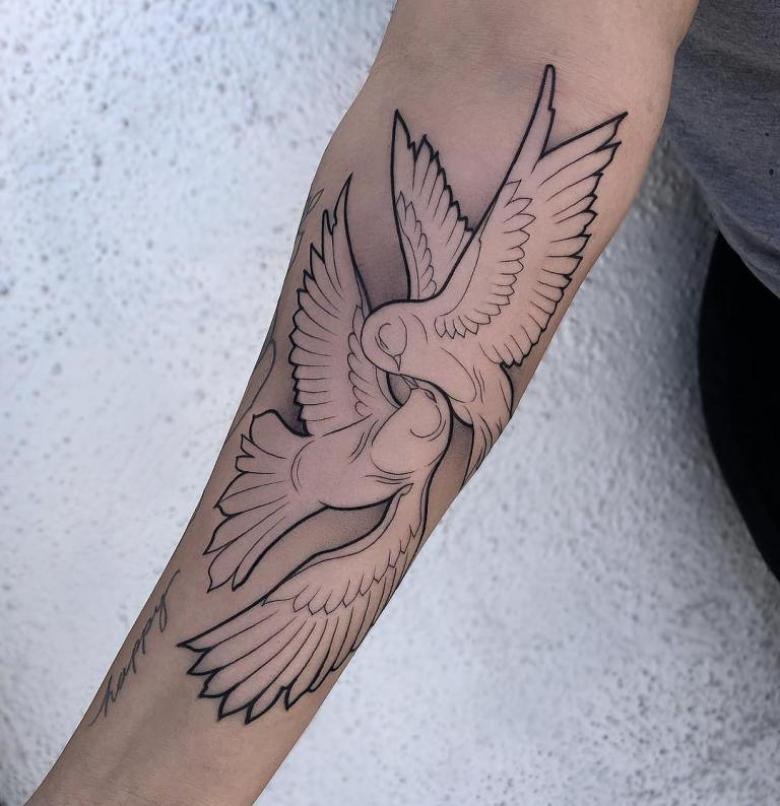 - Les amoureux choisissent souvent un tatouage représentant une paire de colombes pour souligner la profondeur de leurs sentiments, et le placent sur les poignets de leurs mains.