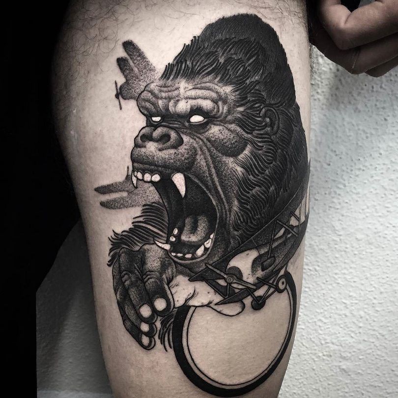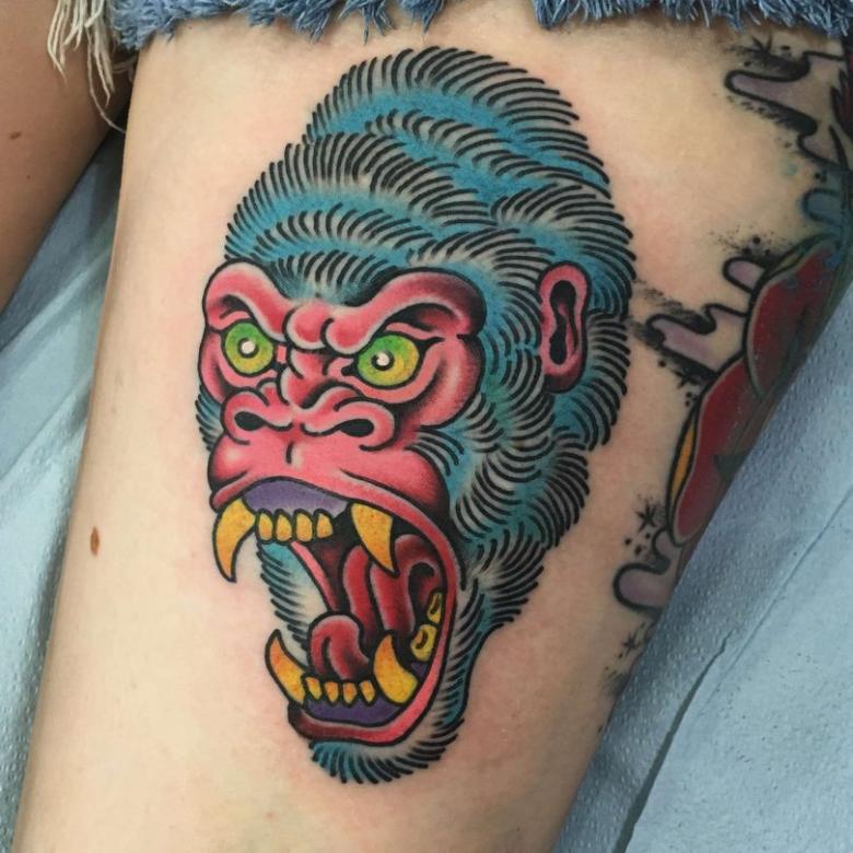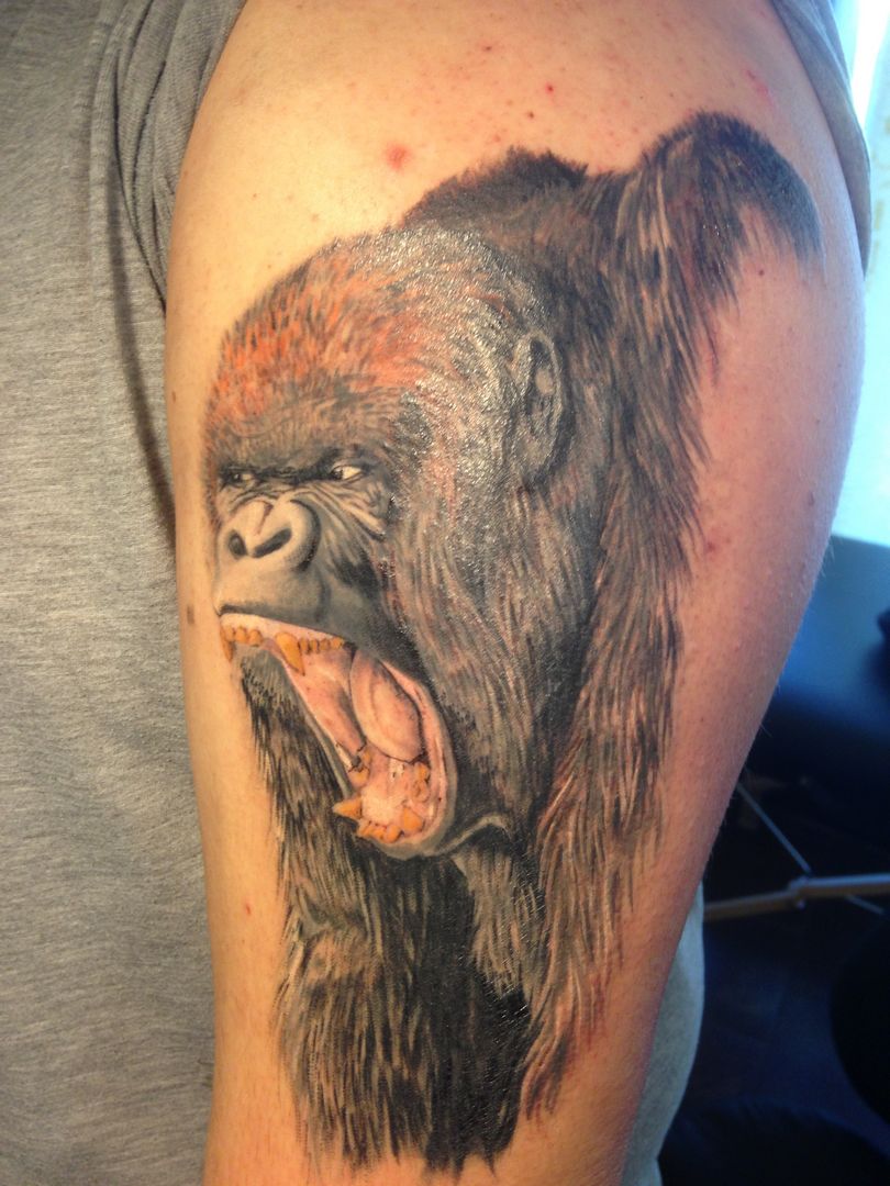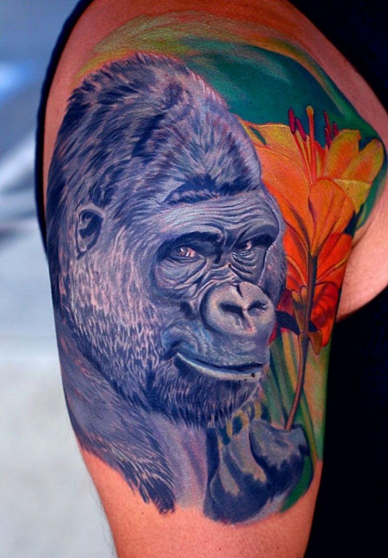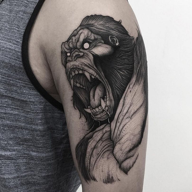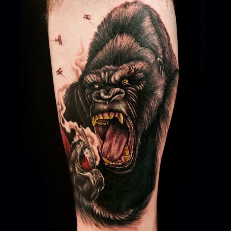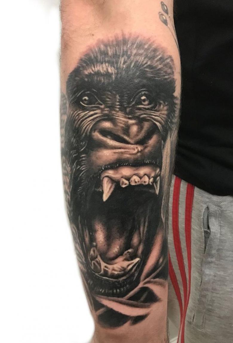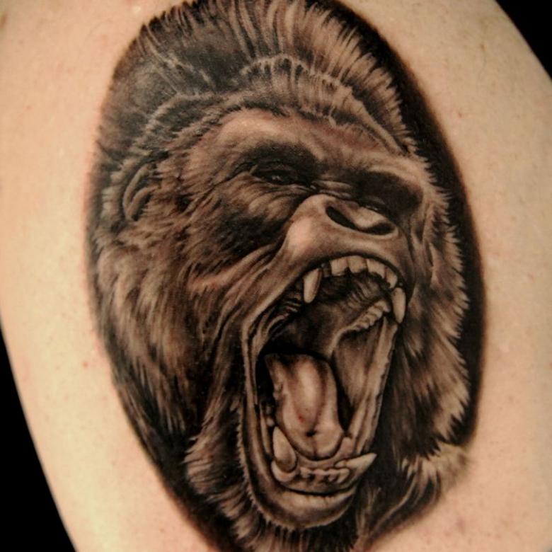 Tatouage gorille - Styles et options de tatouage (y compris gorille avec couronne et rictus), placement, motifs et photos impressionnants.