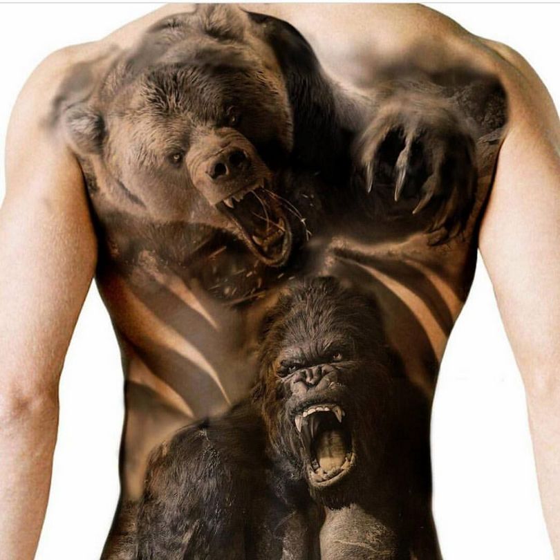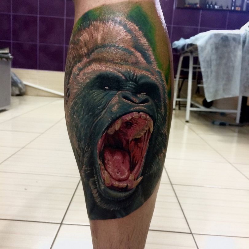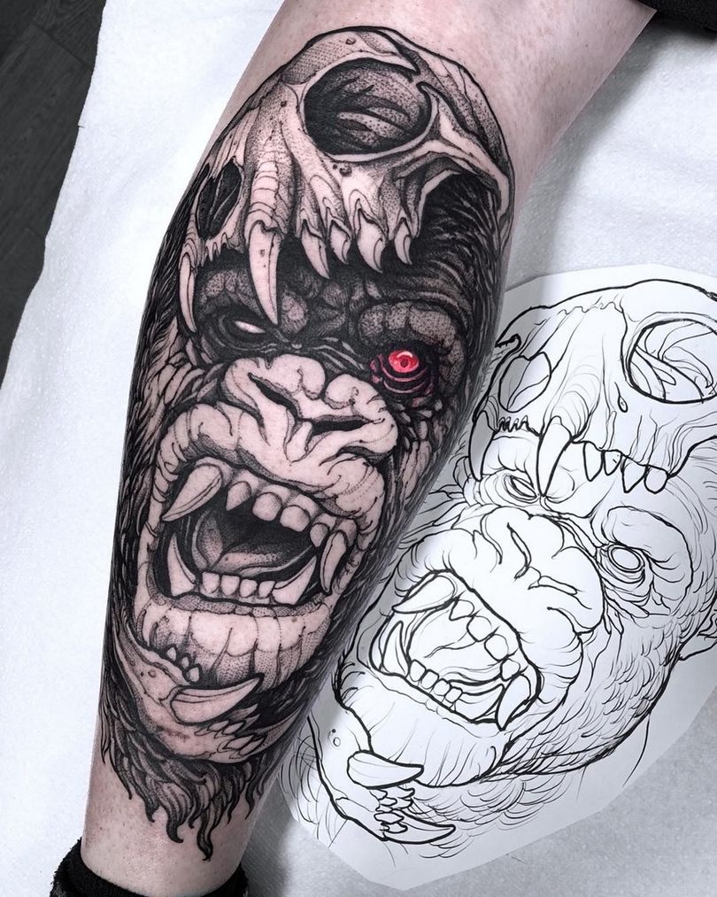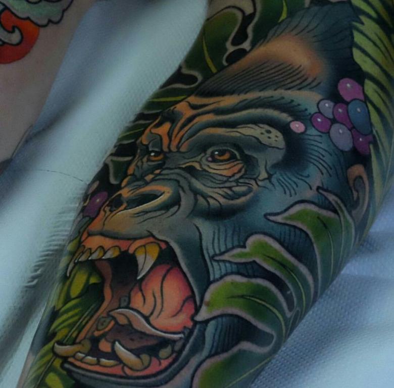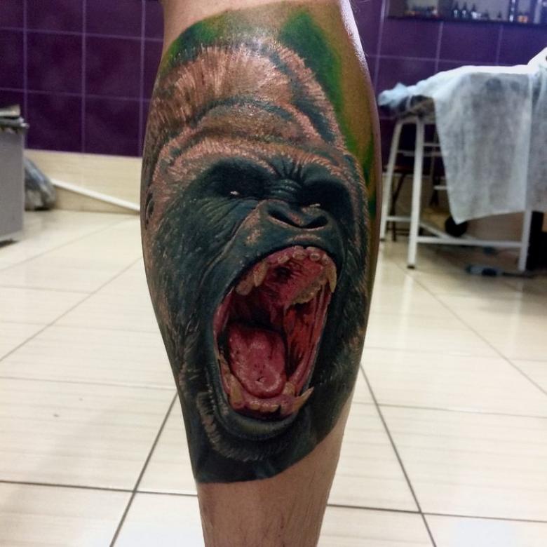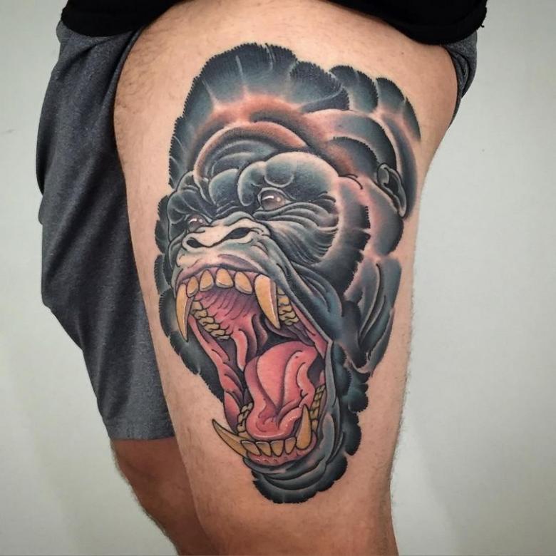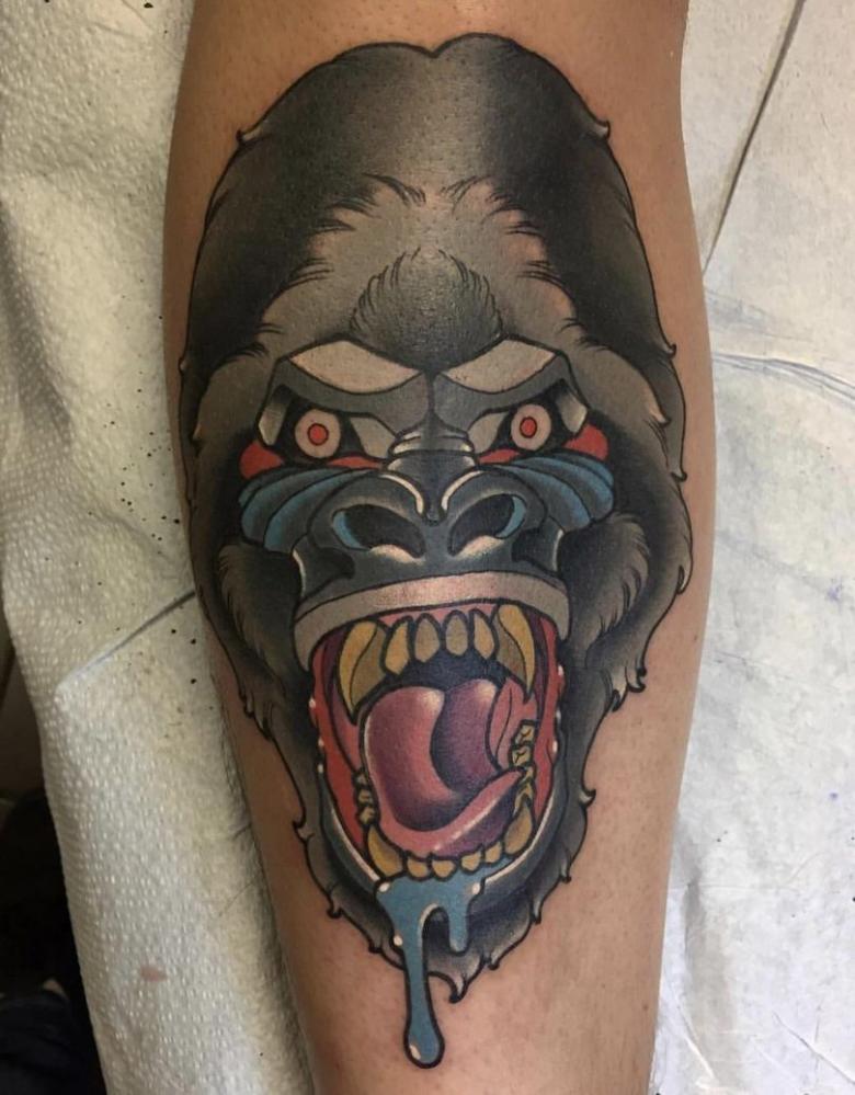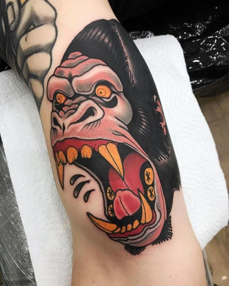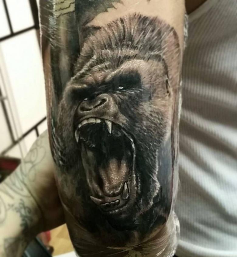 Il est important de penser à la posture du gorille, aux émotions qu'il exprime. Imaginez un gorille en pied, de dos, menaçant sur quatre pattes, souriant méchamment avec ses énormes crocs. Vous pouvez l'imaginer ? C'est le genre de tatouage que l'on a tendance à trouver sur le corps d'un homme toujours prêt à attaquer un agresseur, à mener les gens en bateau. Ou un gorille avec sa bouche grande ouverte et ses crocs exposés ? Un tatouage très révélateur.