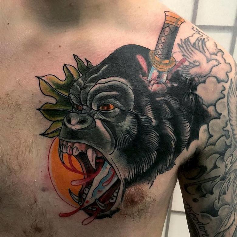Quoi qu'il en soit, presque toutes les images d'un gorille, quels que soient l'endroit et la manière dont elles sont tatouées, portent le même motif - force, grande puissance, autorité, volonté de conquête.