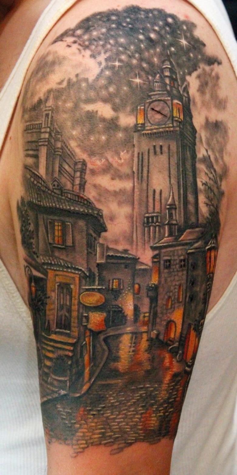 Chaque ville a sa propre histoire, ses traditions, son identité et sa culture. Les paysages urbains n'ont fait leur entrée dans l'art corporel que relativement récemment, mais ils ont immédiatement attiré l'attention des aficionados du tatouage.