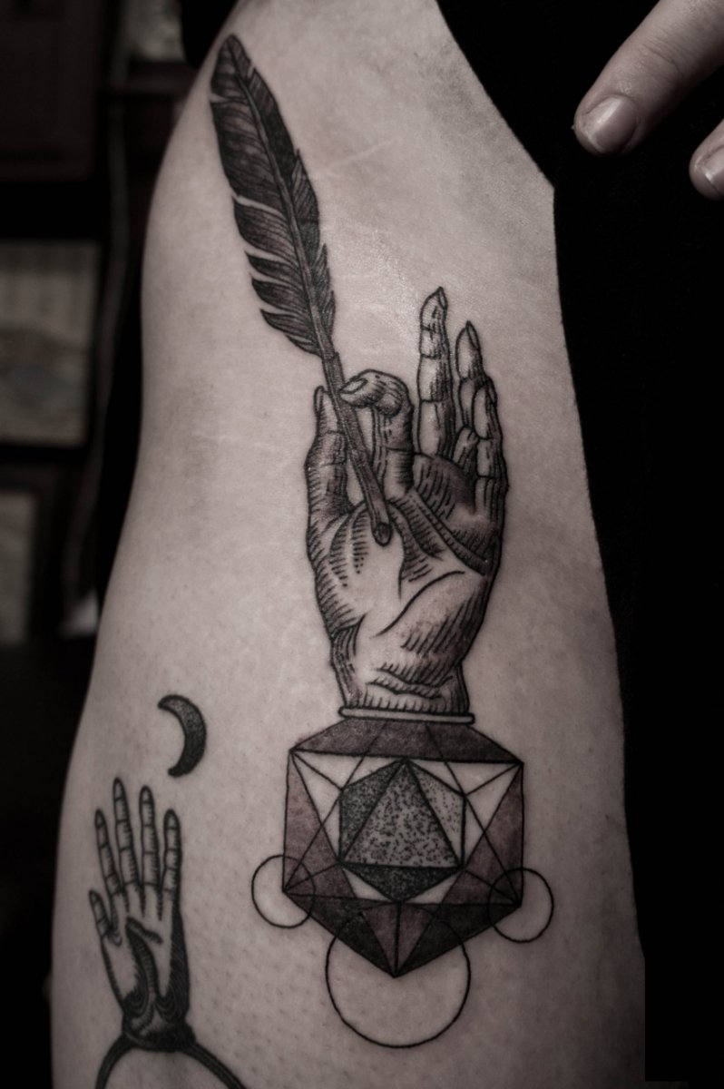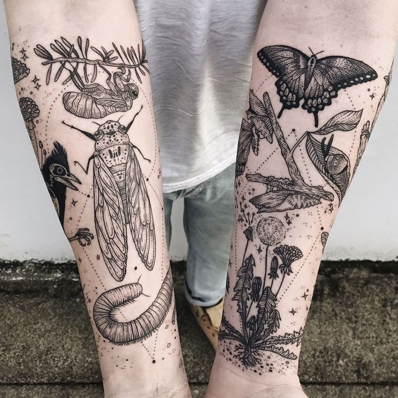 - Dotwork - la présence d'un grand nombre de points qui donnent du volume est très harmonieuse avec le graphisme ;