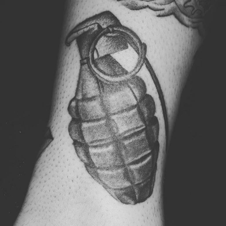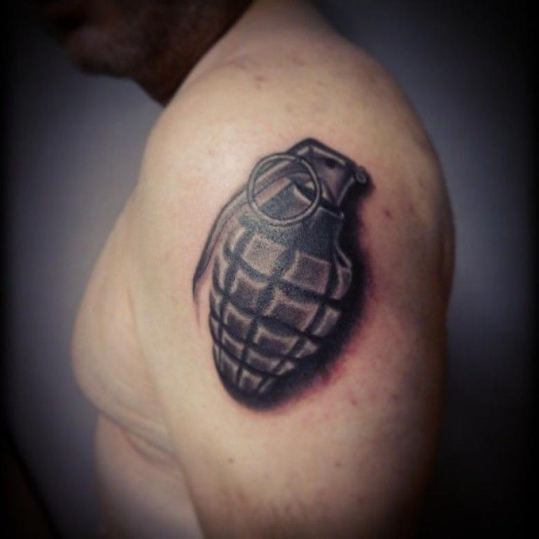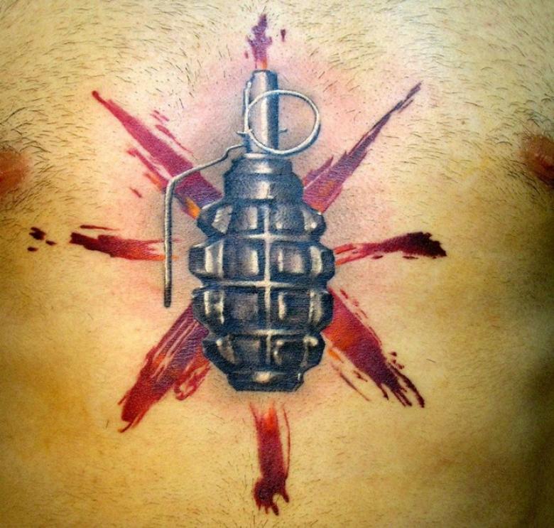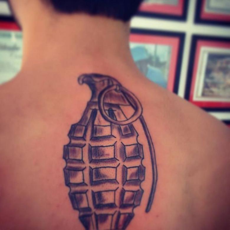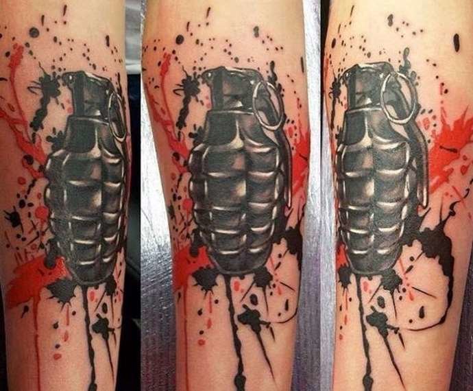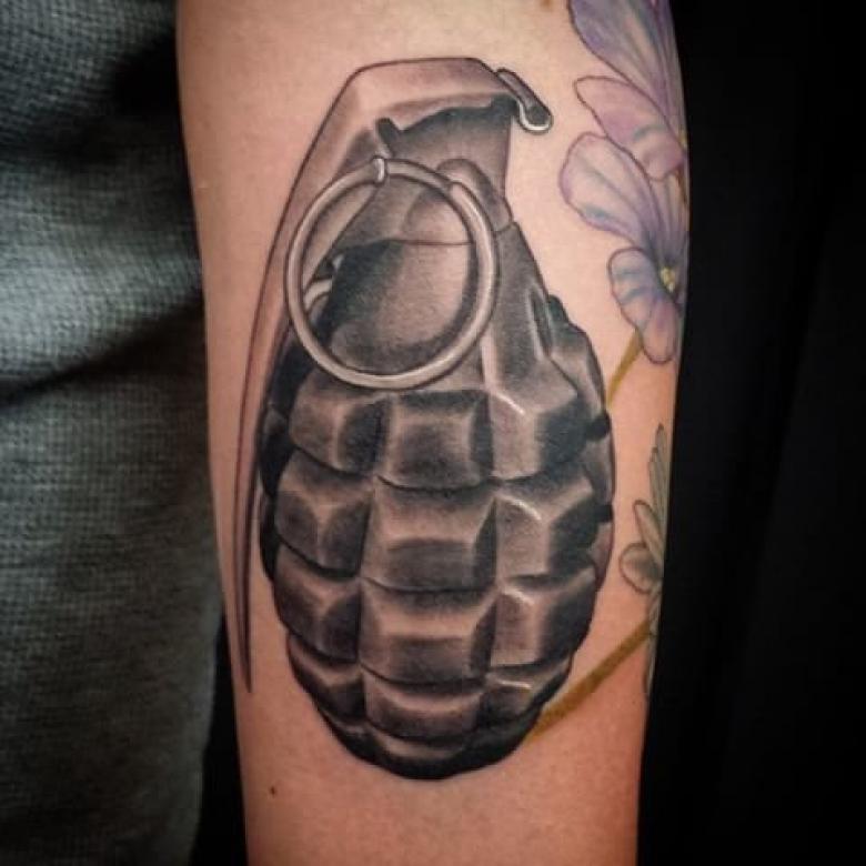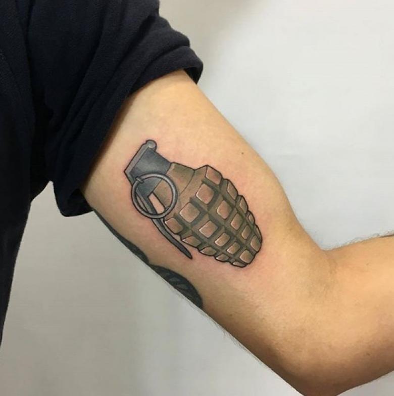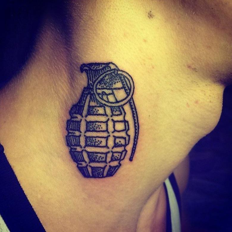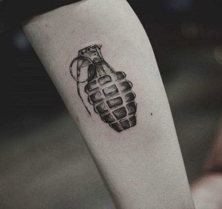 Tattoo grenade - une description de la signification, où marquer (sur le bras, la main, le cou, la poitrine), dessins et photos