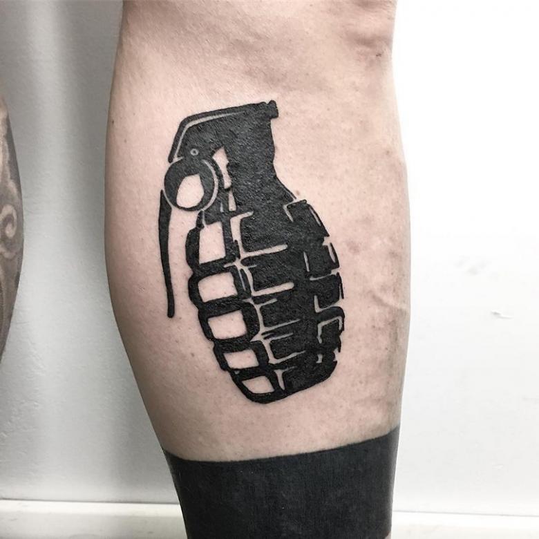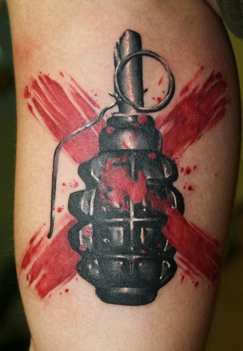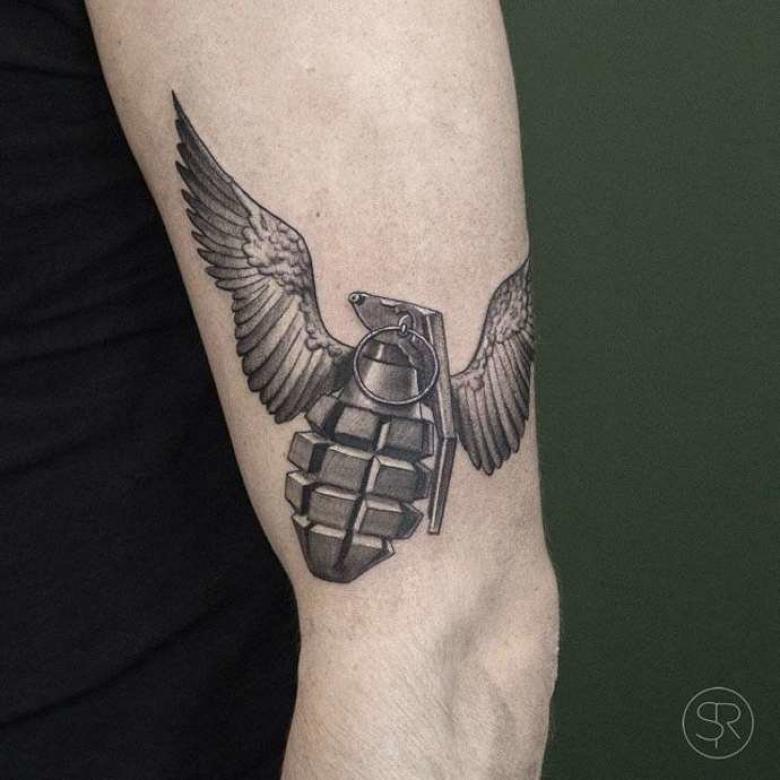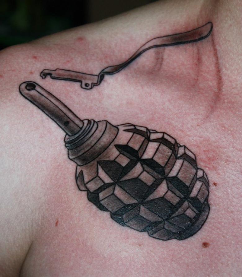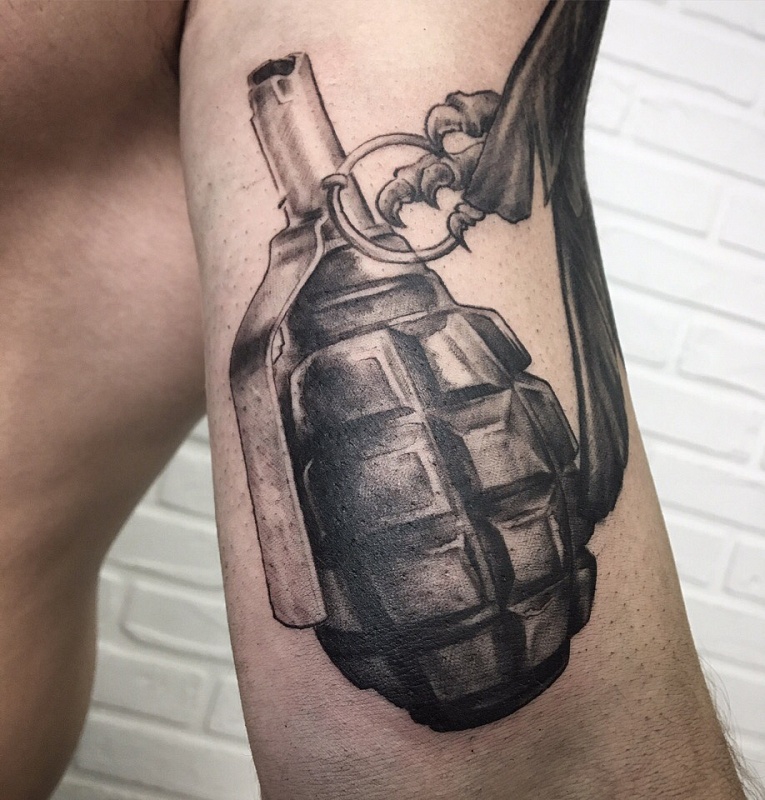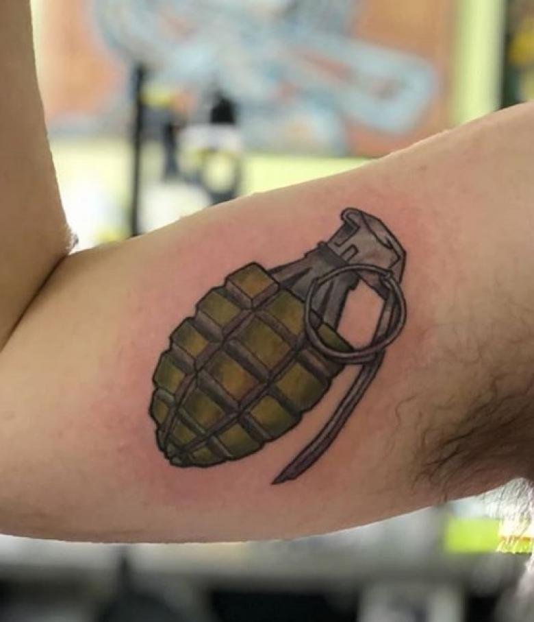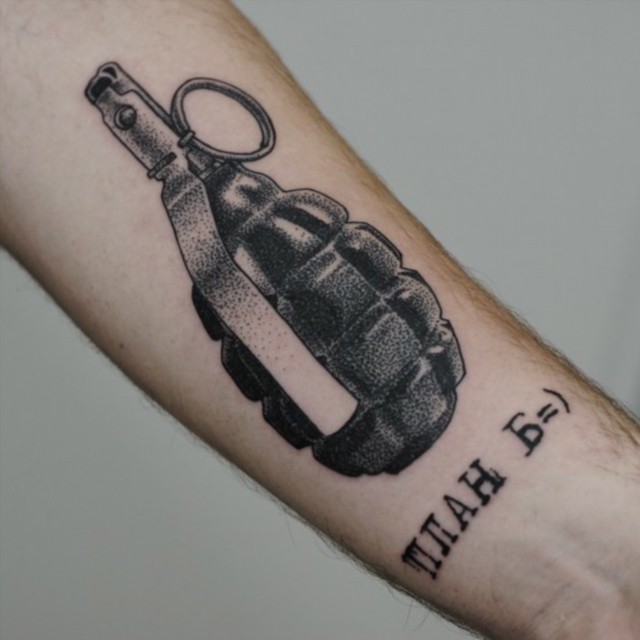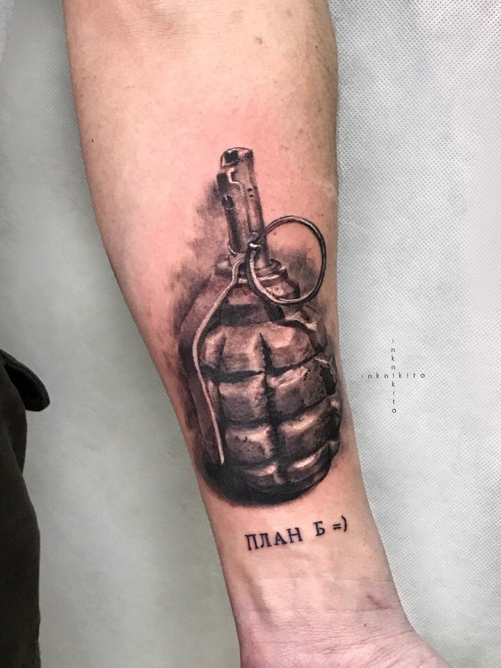 Tattoo grenade - une description de la signification, où marquer (sur le bras, la main, le cou, la poitrine), dessins et photos