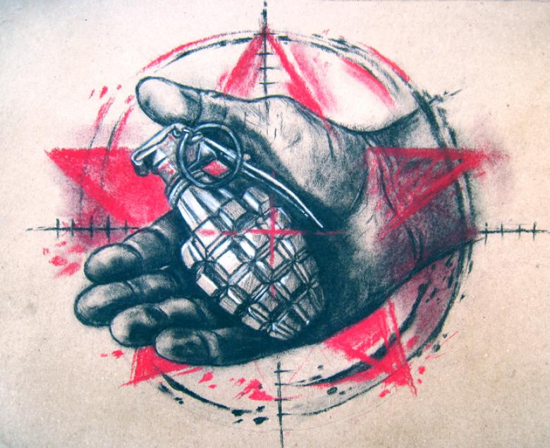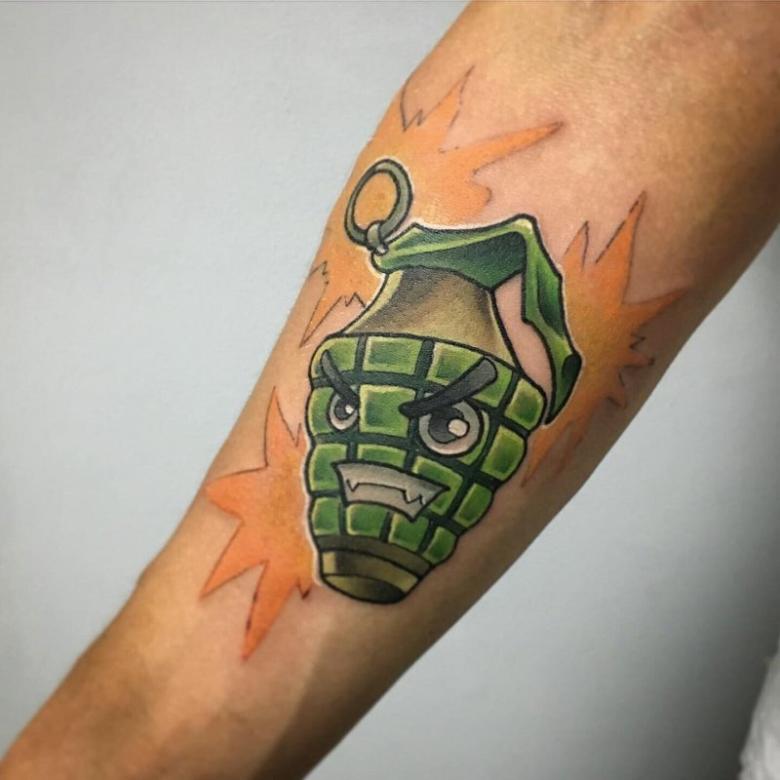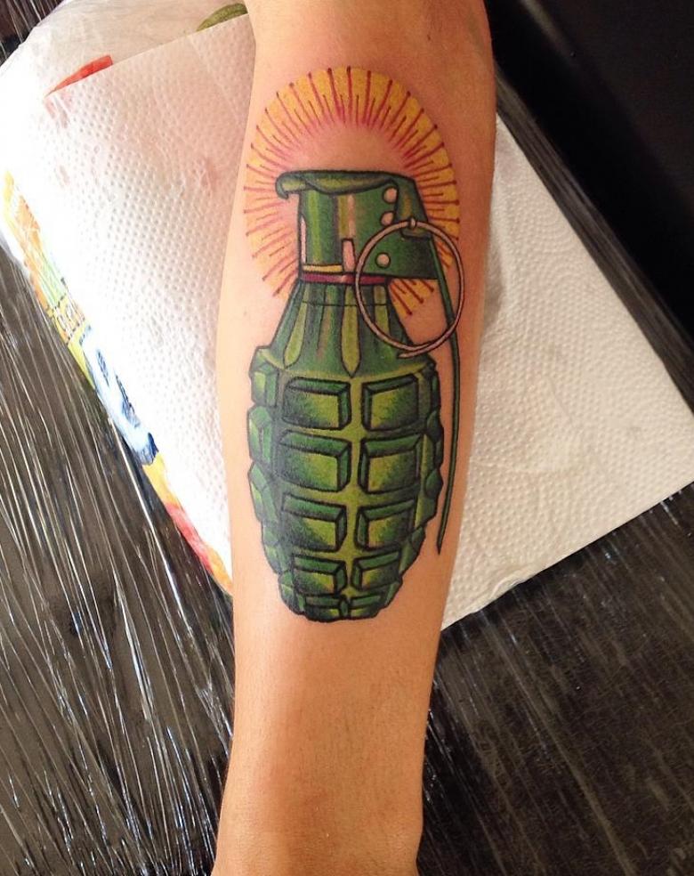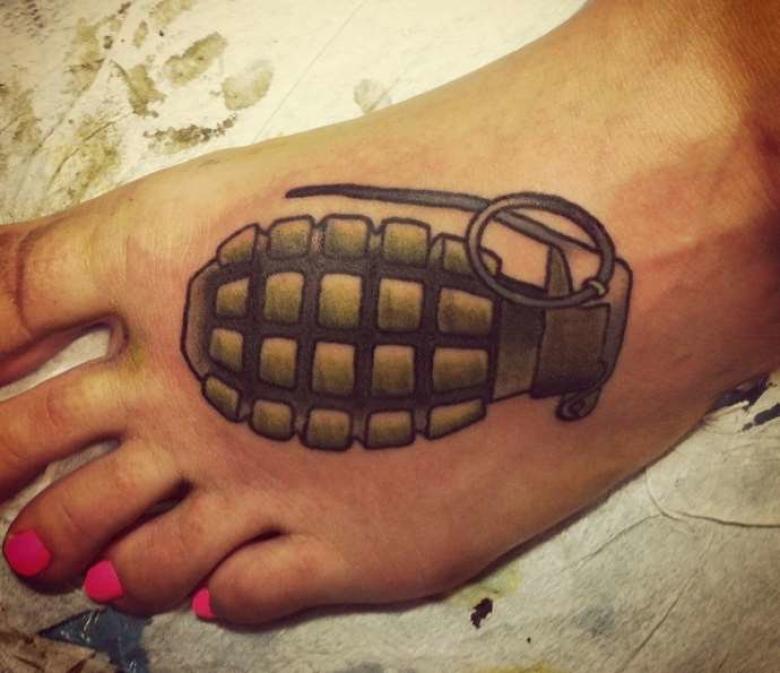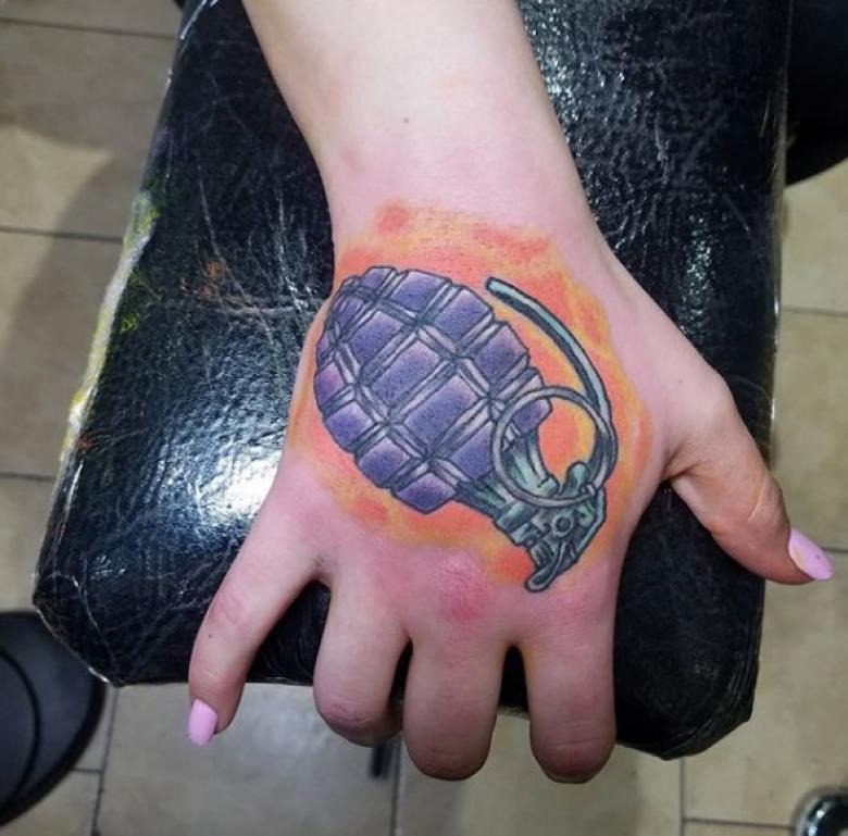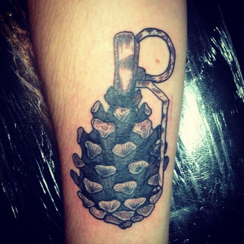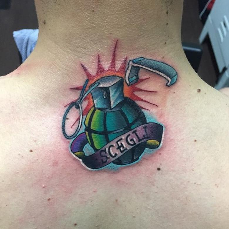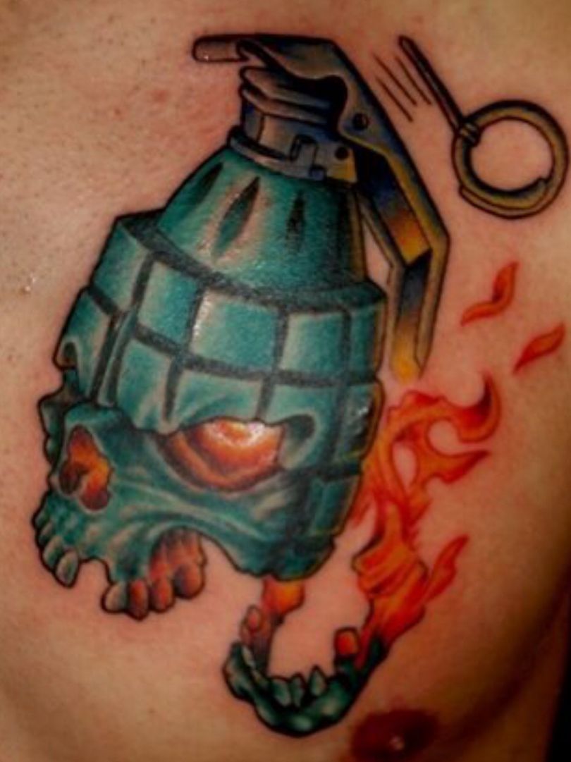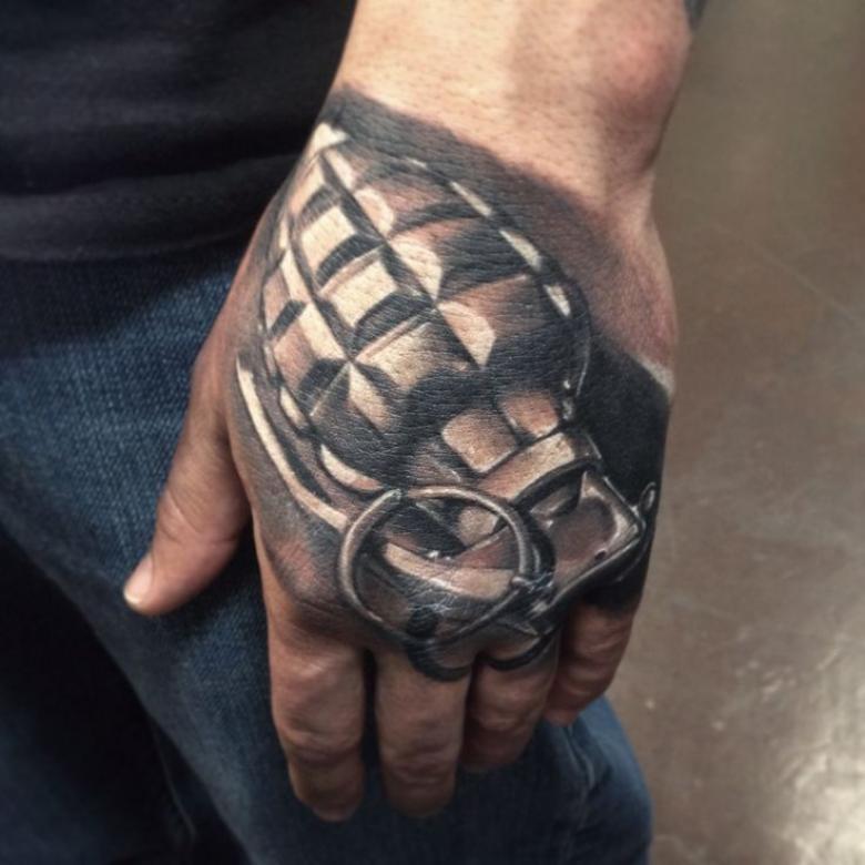Tattoo grenade - une description de la signification, où marquer (sur le bras, la main, le cou, la poitrine), dessins et photos