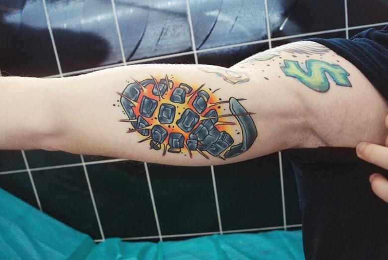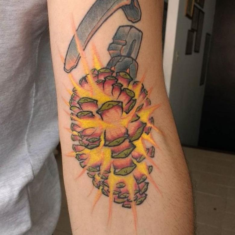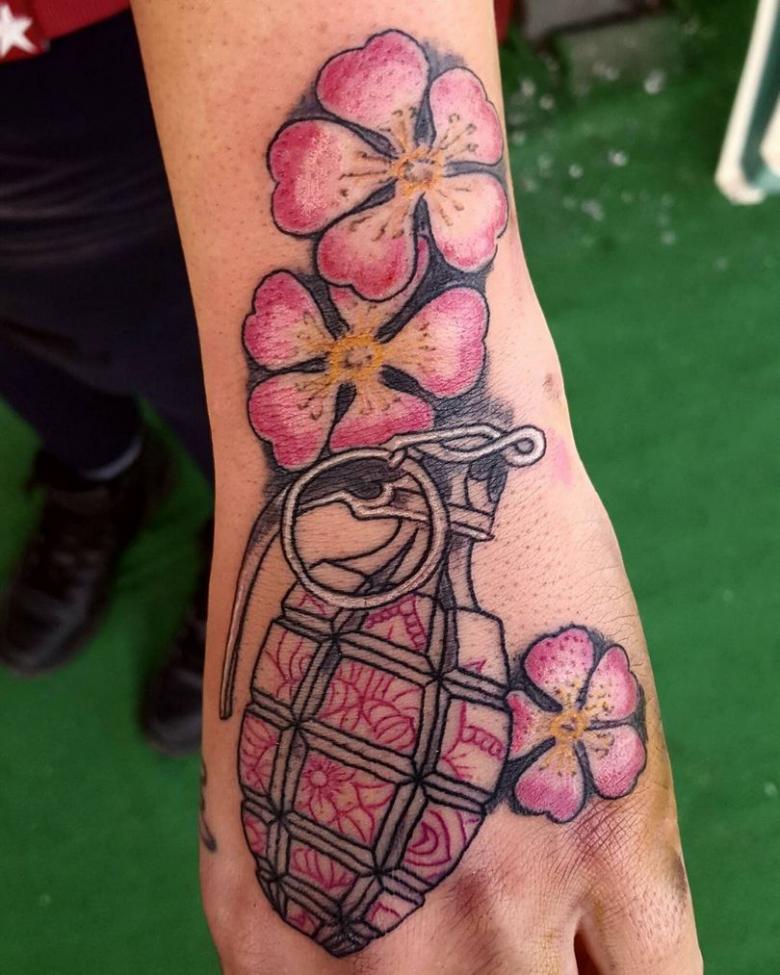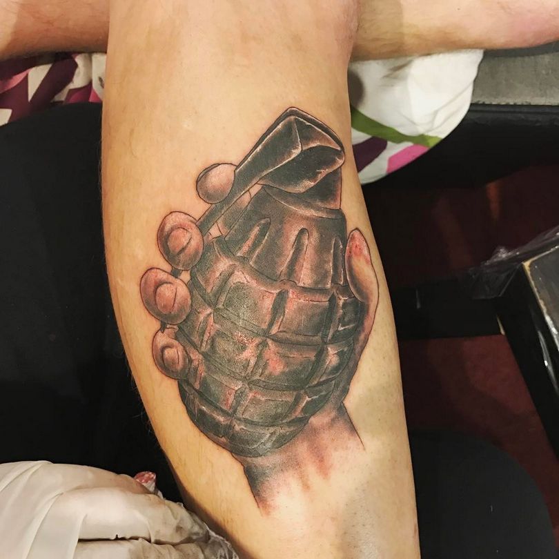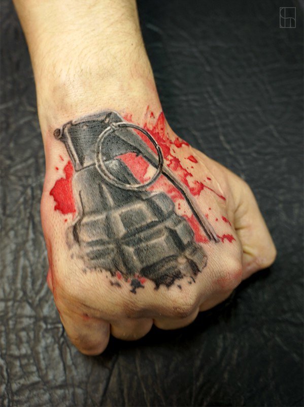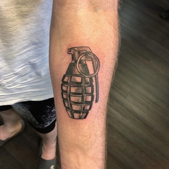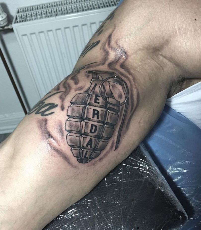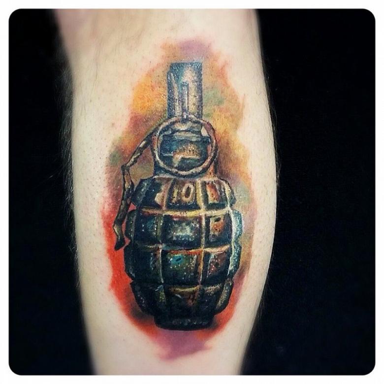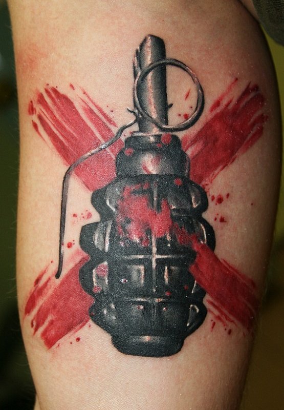Tattoo grenade - une description de la signification, où marquer (sur le bras, la main, le cou, la poitrine), dessins et photos