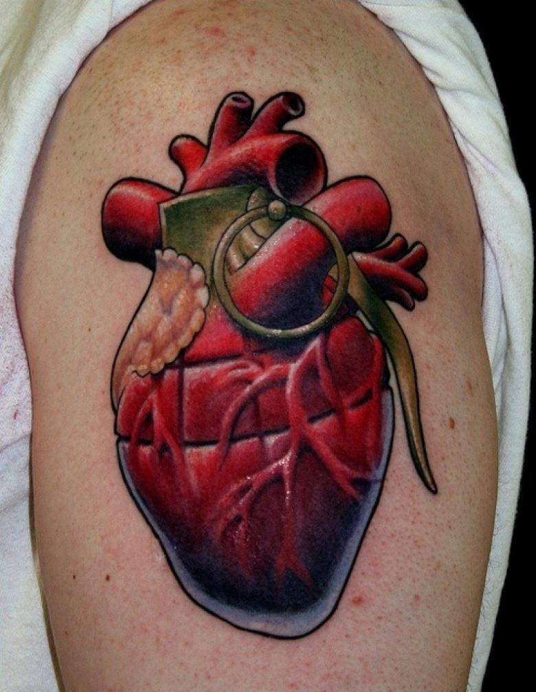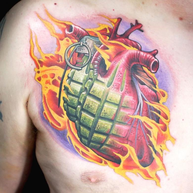 Une grenade avec un cœur est un symbole de souffrance passée et d'expériences qui ont laissé une forte empreinte. Le plus souvent, ces expériences sont liées à la relation entre un homme et une femme.