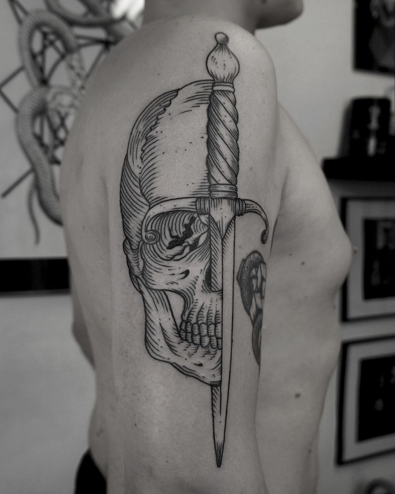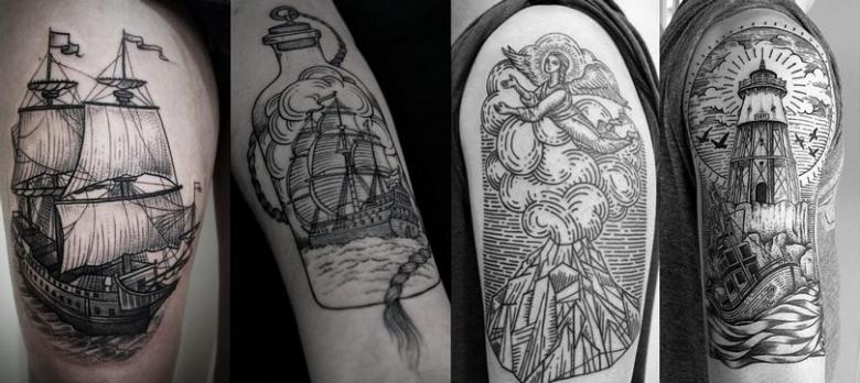 Gravure de tatouage - une description complète, les emplacements des tatouages dans le style de la gravure, des dessins et des photos.