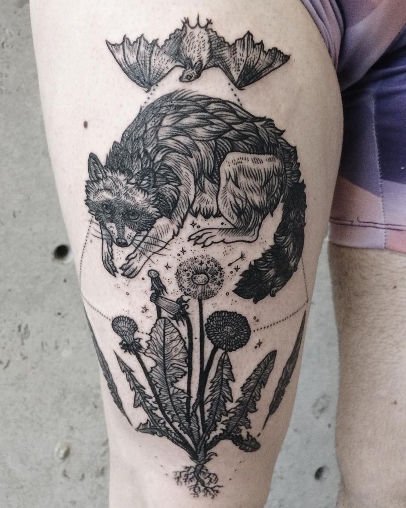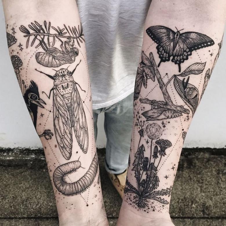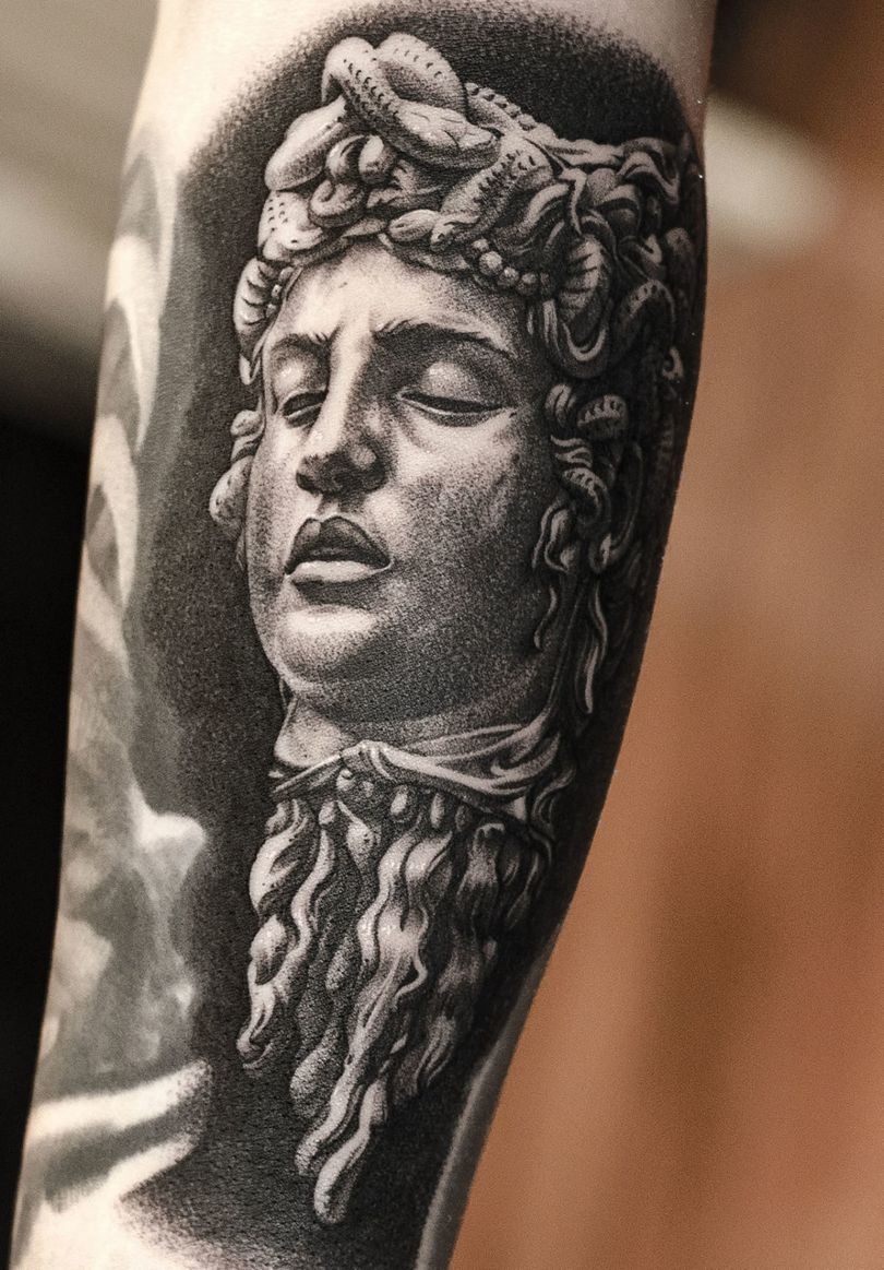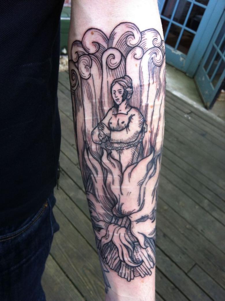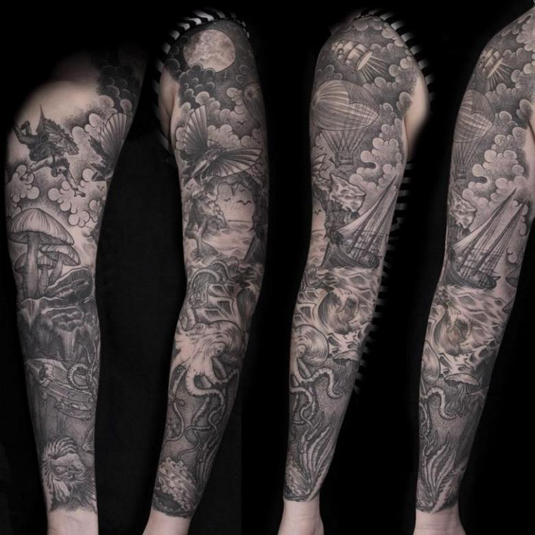 Le plus souvent, ce style est utilisé pour appliquer des tatouages à l'encre noire. C'est pourquoi de nombreuses personnes confondent les tatouages en héliogravure avec les tatouages en noir, ce qui est fondamentalement faux car, à part la couleur de l'encre, il n'y a absolument rien en commun entre ces styles. Pour mieux comprendre ce style, il faut connaître son histoire.