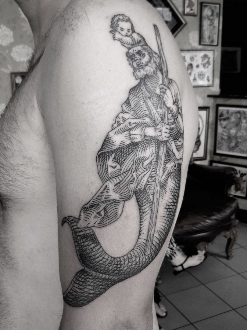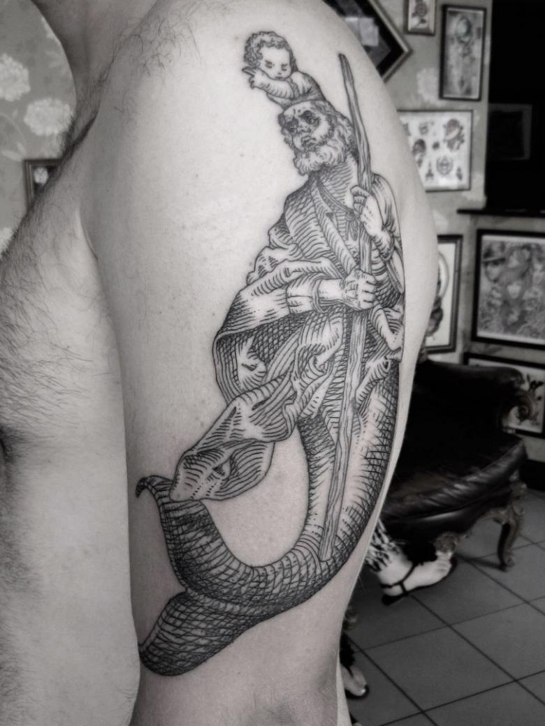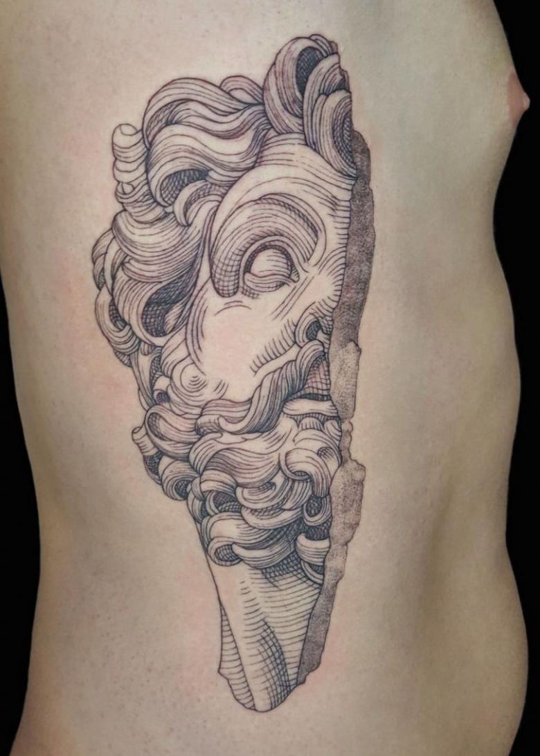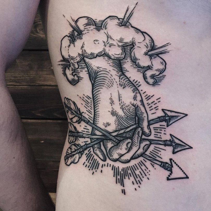 Le style de tatouage "gravure" trouve ses origines dans l'Antiquité. Déjà après zéro ans ce style est devenu le plus populaire parmi les jeunes, après tout il, après tout en soi spectre illimité d'impressions, représentant des lignes claires et vérifiées avec lesquelles il est possible de représenter tout : de portraits humains avant d'images d'animaux ou de héros de mythes et légendes, certains dessinent sur lui-même amulettes protégeant le porteur du mauvais œil, des gâchis et il forces impures.