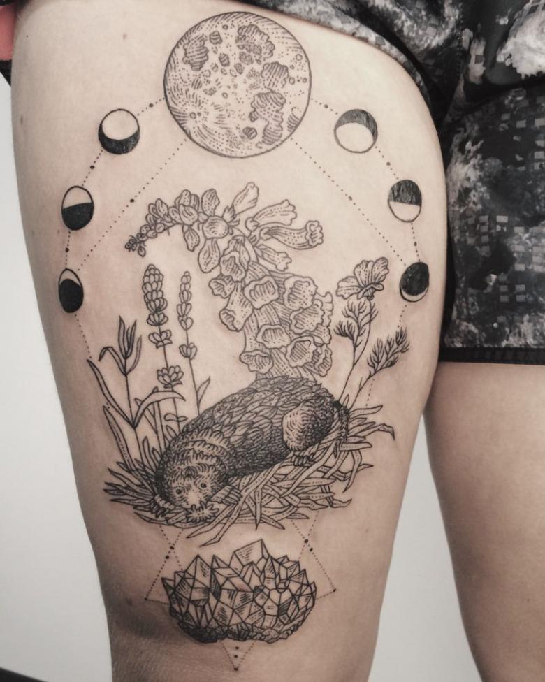 Les femmes, en revanche, cherchant à montrer leur nature délicate et en même temps fougueuse, ont tendance à se représenter avec des dessins aux motifs floraux ou avec des animaux qui peuvent représenter leur caractère. Afin d'accentuer leur féminité, les filles préfèrent un croquis aux lignes plus délicates et raffinées. Les héros mythologiques et les animaux sont également très populaires. Ces images évoquent le mystère de la jeune fille et sa nature mystérieuse.