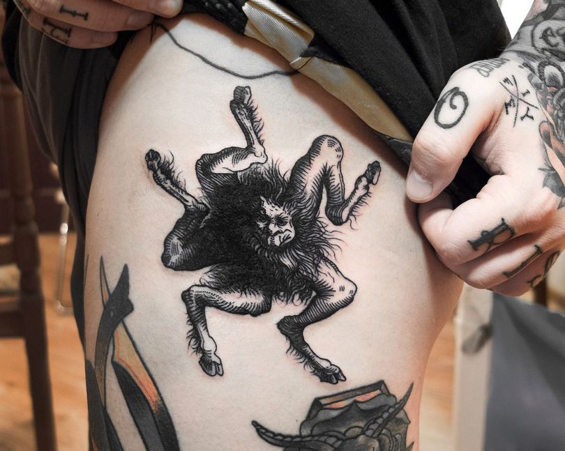 Aujourd'hui, le style de tatouage Gravure peut être qualifié de jeune, bien qu'il soit né il y a très longtemps. À ce jour, les caractéristiques de la gravure sont de plus en plus apparentes sur les corps des jeunes, que le style a fini par goûter.