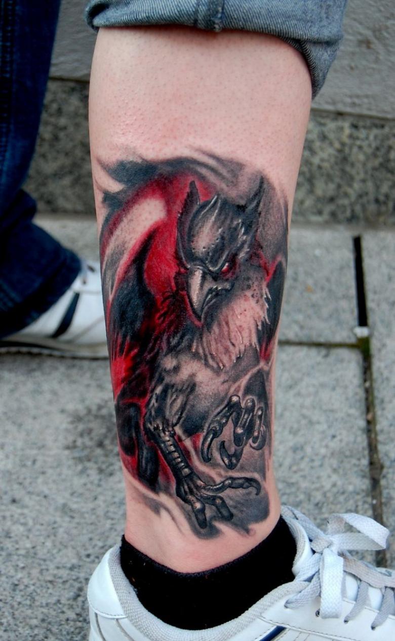 Un gryphon, créature mythologique, recrée sa signification dans l'esprit des artisans. Nous présentons les caractéristiques de la créature libre et les particularités de son application sur la peau.