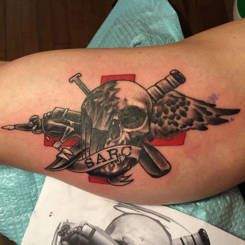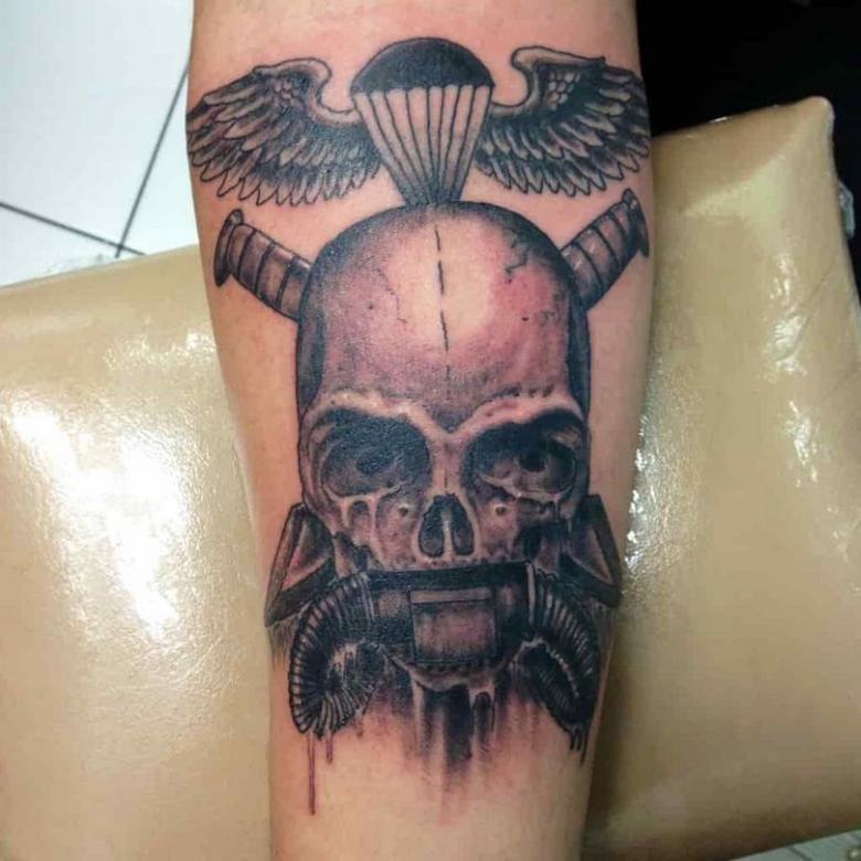Si vous regardez de près les symboles répandus du tatouage GRU, vous pouvez comprendre beaucoup de choses sur le client du dessin.Les chauves-souris ne sont pas du tout un symbole du défenseur de la ville de Gotham, le Batman ailé. De nombreuses forces spéciales seraient offensées par une telle comparaison. Pour eux, c'est un symbole d'intelligence secrète, de structures militaires. Souvent ils le mettent sur leur avant-bras, c'est le signe principal du GRU. Si une souris est complétée par des cibles ou des parachutes, alors il s'agit bien d'un spetsnaz du service de renseignement.