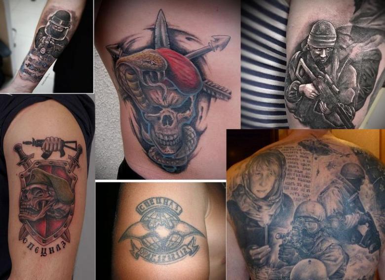 Les forces spéciales constituent une catégorie spécifique de clients dans les salons de tatouage. Les symboles du GRU et d'autres unités sont souvent aperçus sur le corps de certains porteurs.