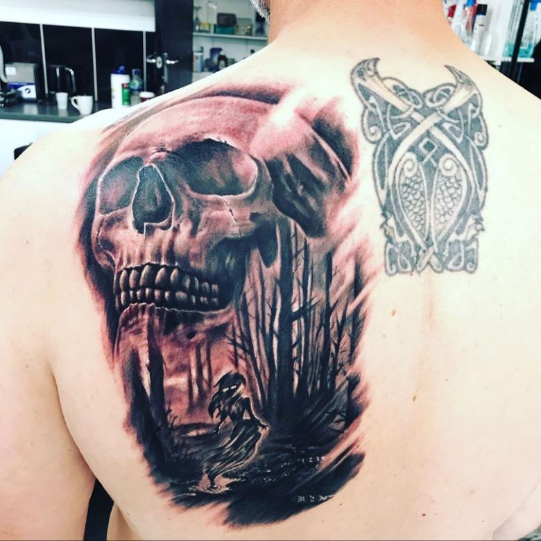 Un crâne est un symbole de la mort, de la fragilité de l'existence. Mais sa charge sémantique est beaucoup plus riche. Dans de nombreux pays, il est une image de changement et de protection contre le mal, il n'a donc pas toujours une connotation négative. Parfois, il s'agit d'un penchant pour la philosophie, qui suggère que le porteur du tatouage n'a pas peur de penser à la mort, conscient de la brièveté de la vie. Ce motif était souvent choisi par les pirates et les brigands qui risquaient chaque jour leur vie pour le profit. En général, cela signifie flirter avec le destin, mais aussi le courage et le fatalisme.