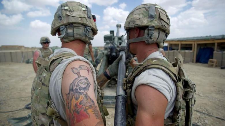 Le tatouage du GRU est souvent accompagné d'une inscription textuelle (par exemple, "No one but us").