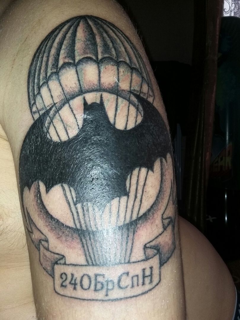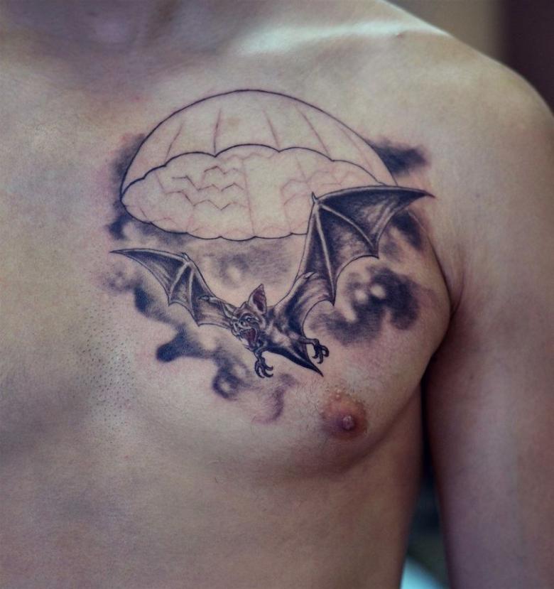 Certains pourraient y voir une référence aux vampires ou aux images lunaires - et ils n'auront pas tort. En Chine, c'est un symbole de mort facile, de santé et de bonne fortune (comme l'interprète le hiéroglyphe). Pour les Indiens, la chauve-souris est un symbole de renaissance. Un parachutiste peut intentionnellement mettre plusieurs significations dans un seul dessin.