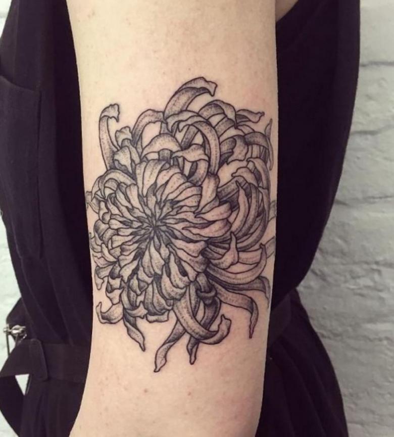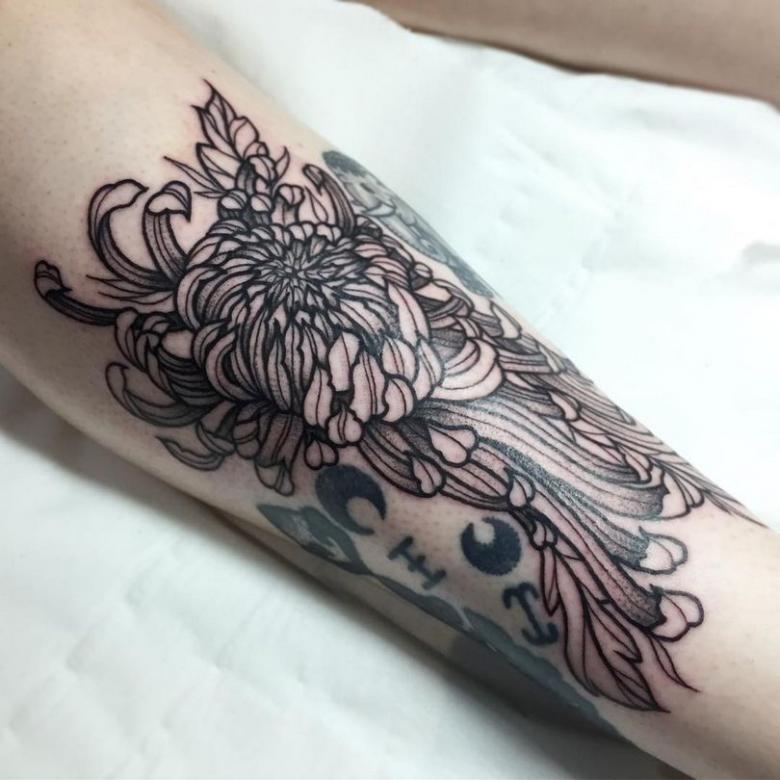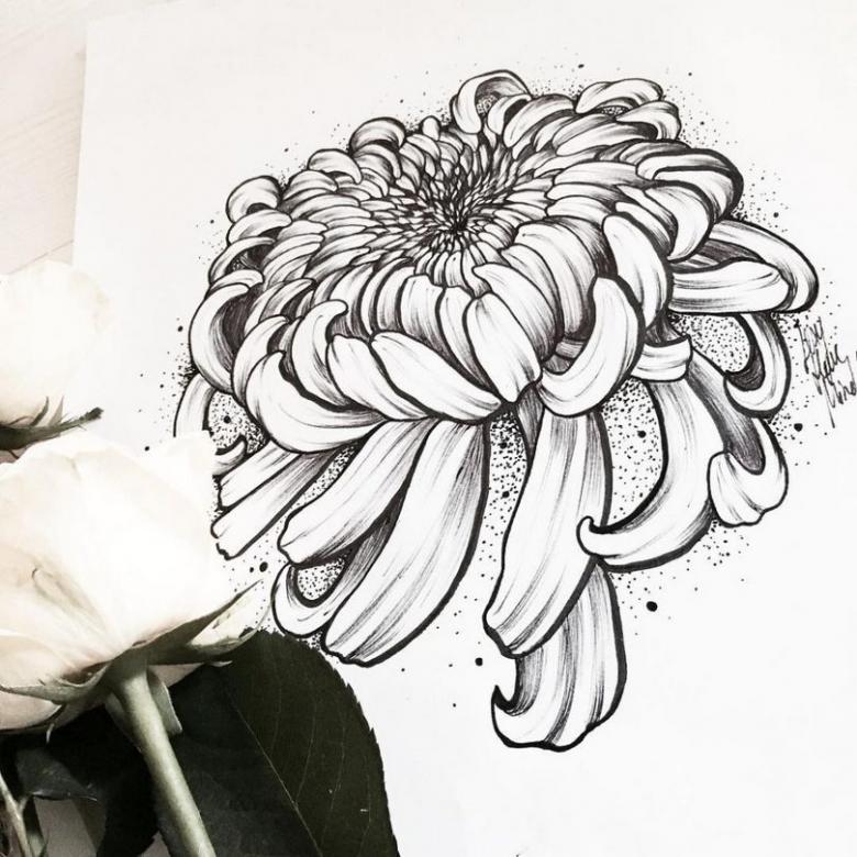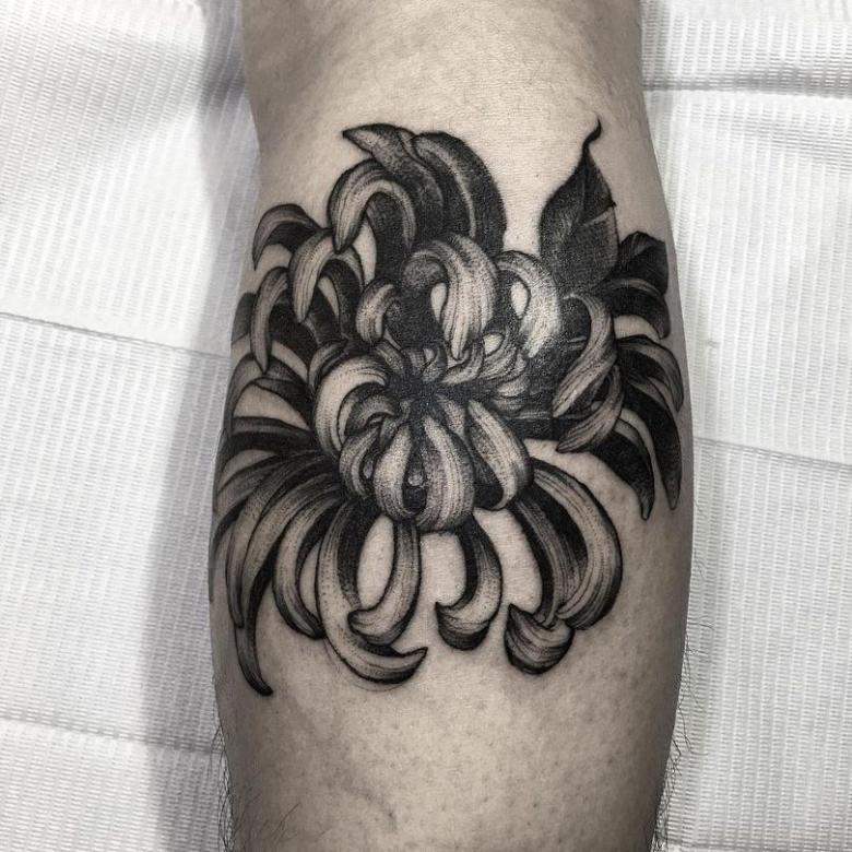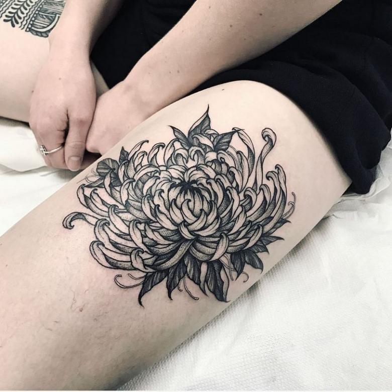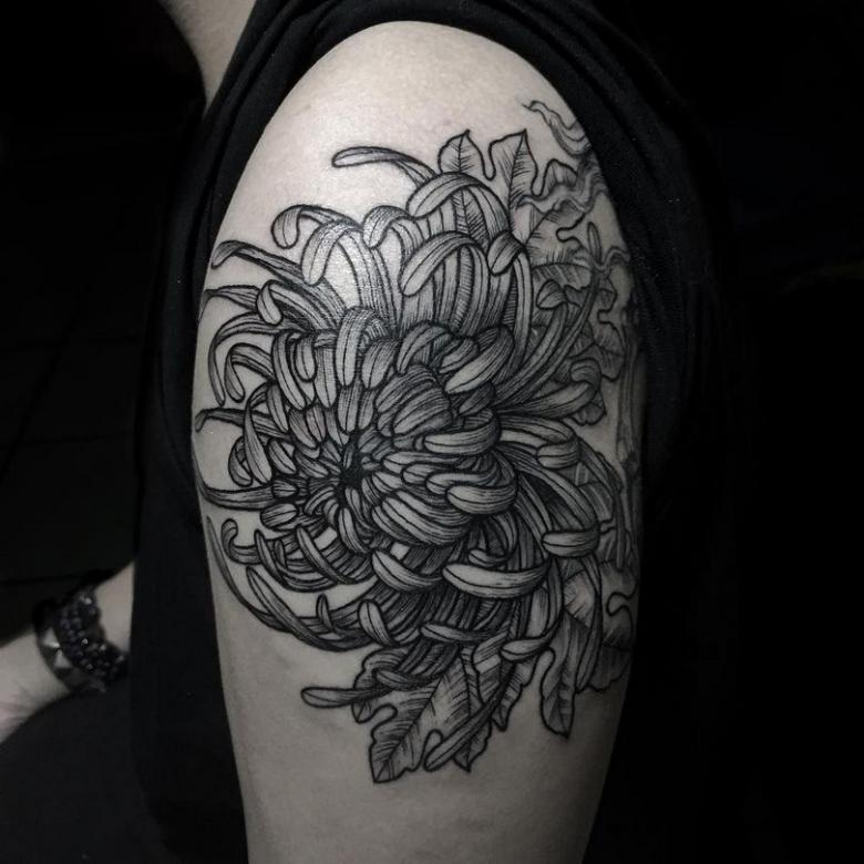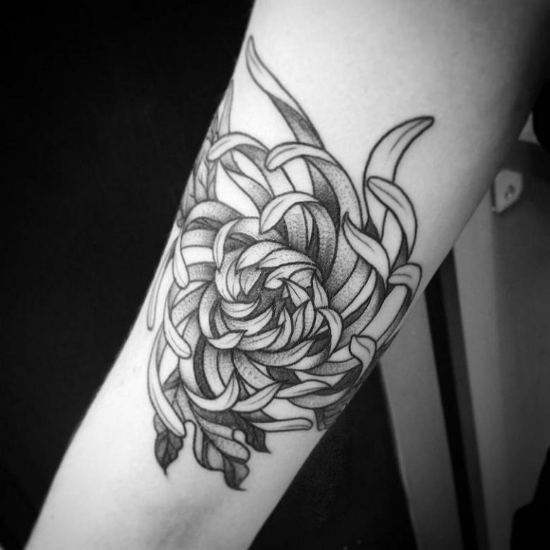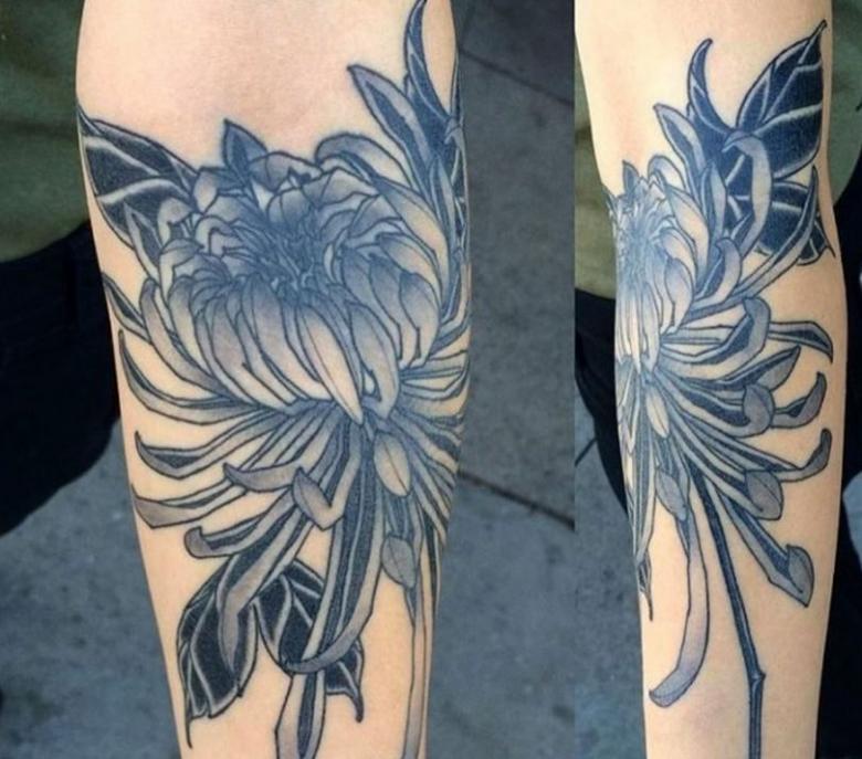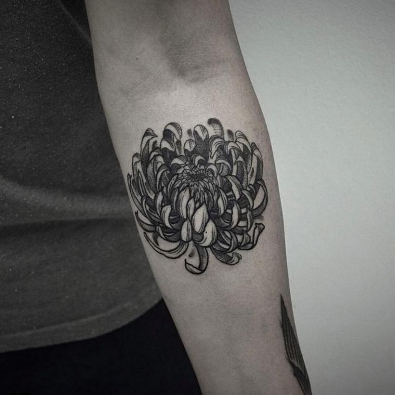 Tatouage d'un chrysanthème - croquis et significations pour les filles et les hommes, idées de photos intéressantes