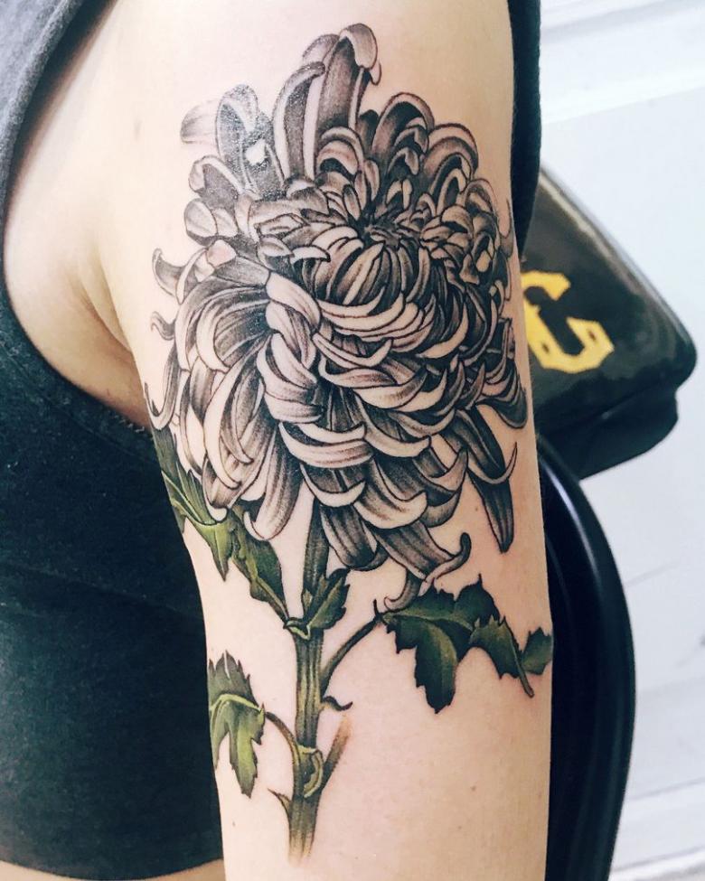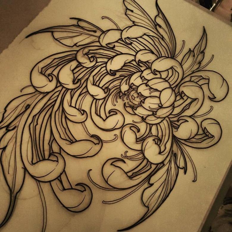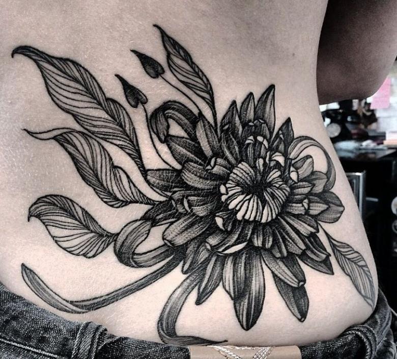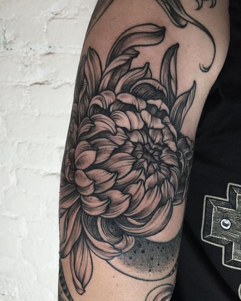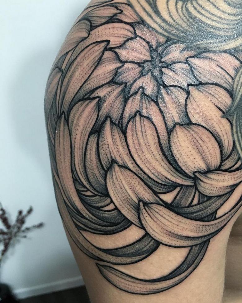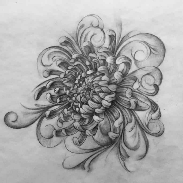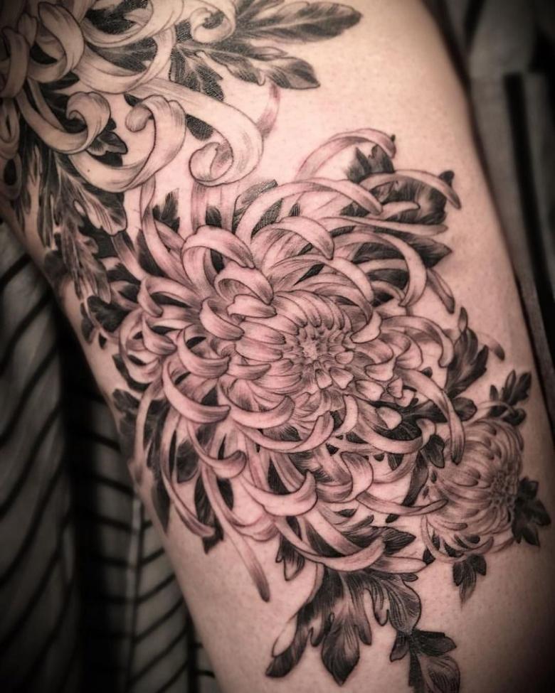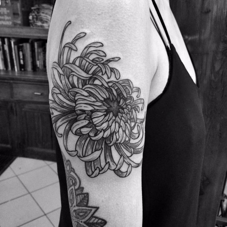 Tatouage d'un chrysanthème - croquis et significations pour les filles et les hommes, idées de photos intéressantes
