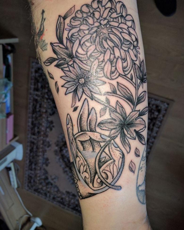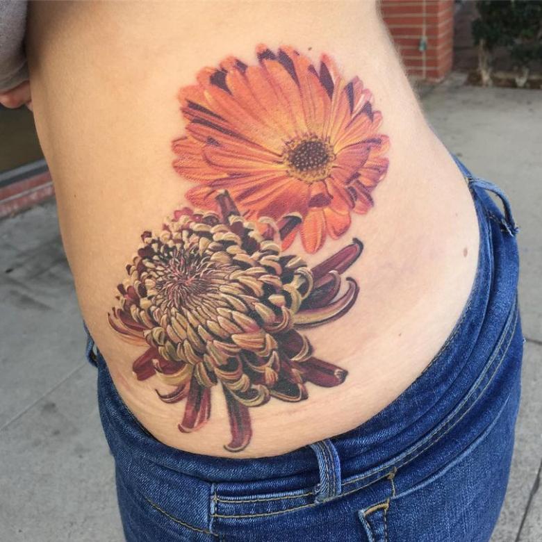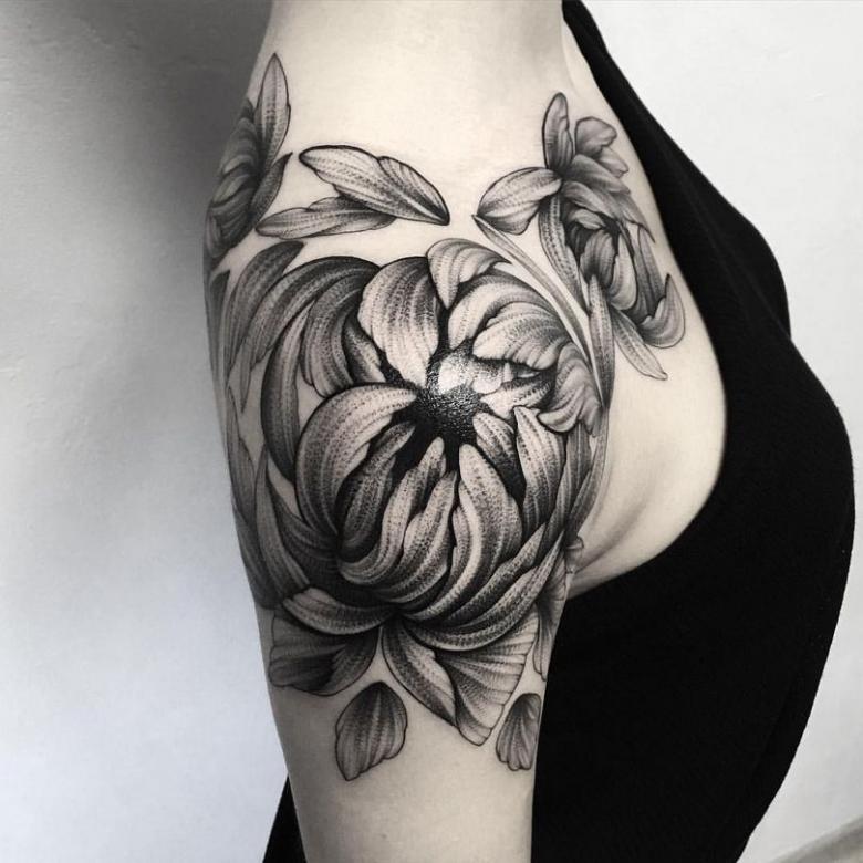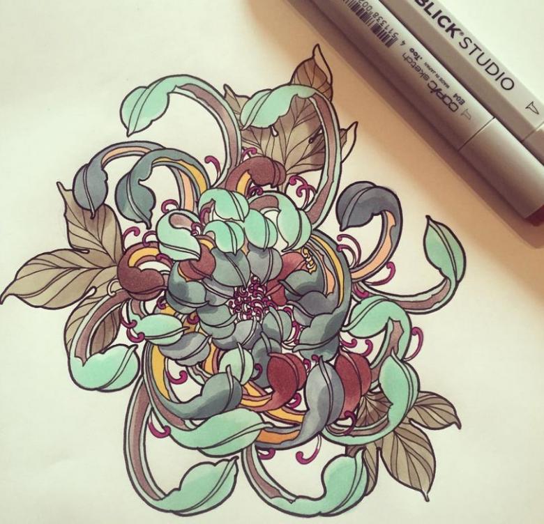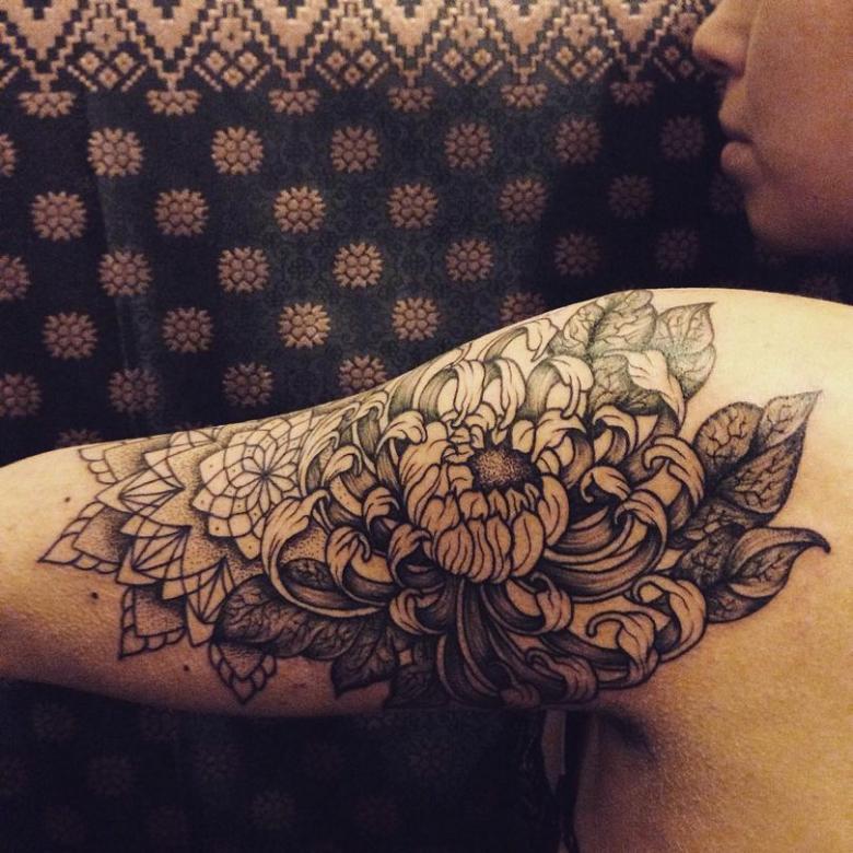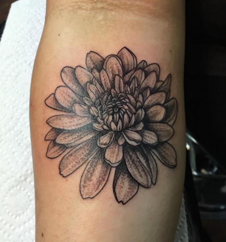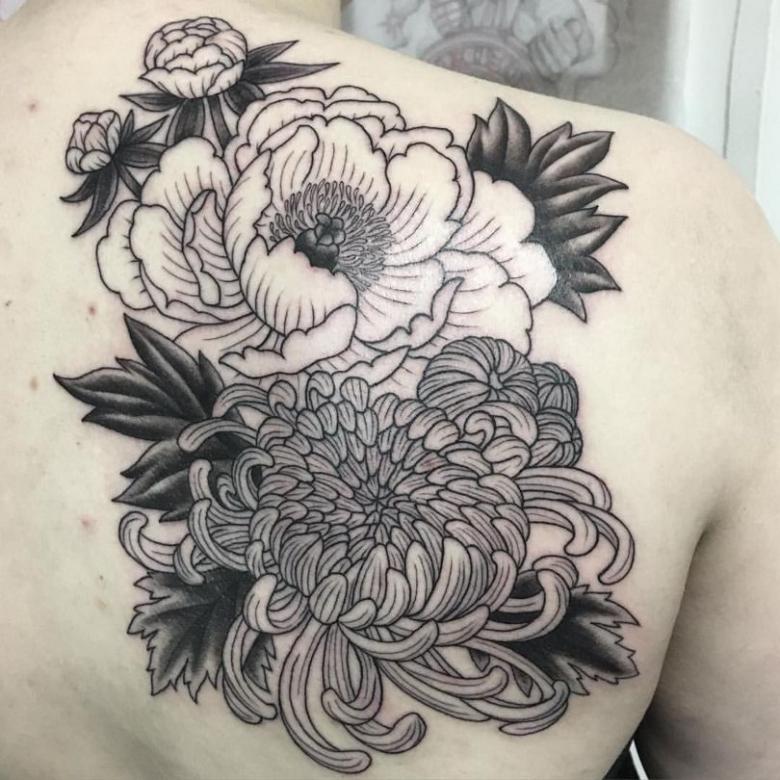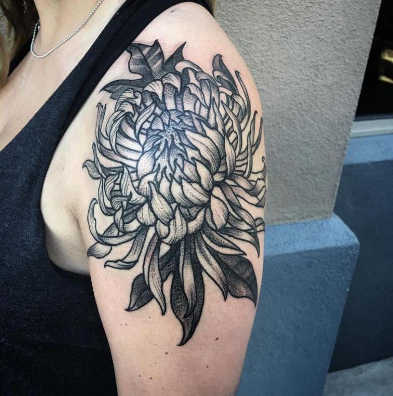 Tatouage d'un chrysanthème - croquis et significations pour les filles et les hommes, idées de photos intéressantes
