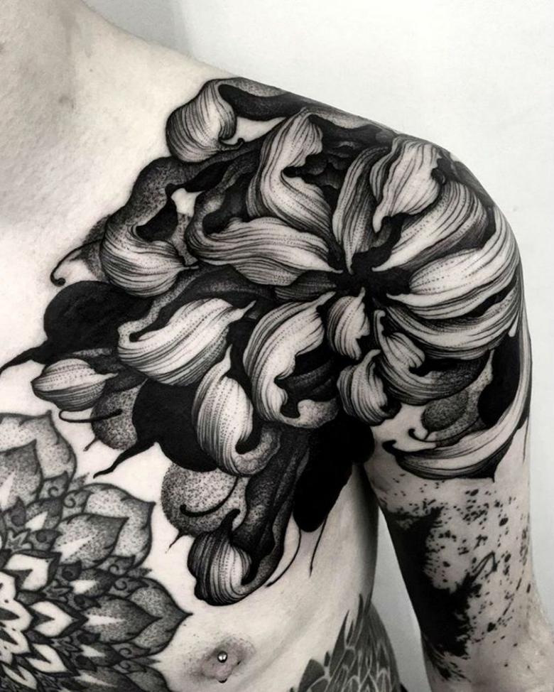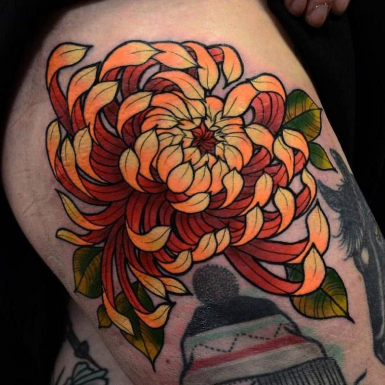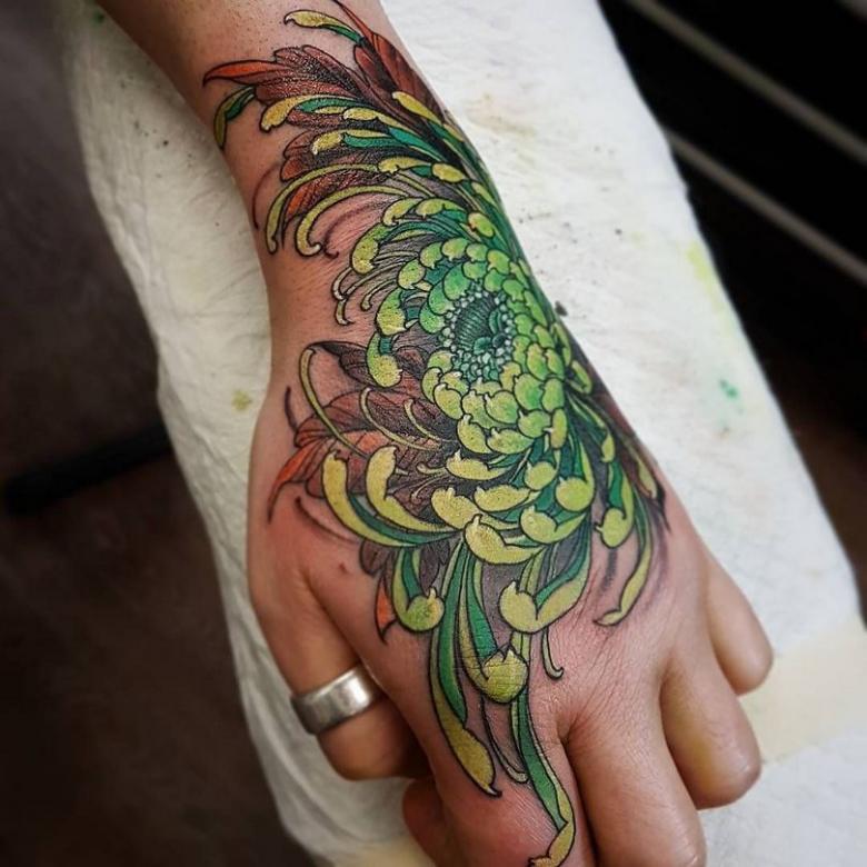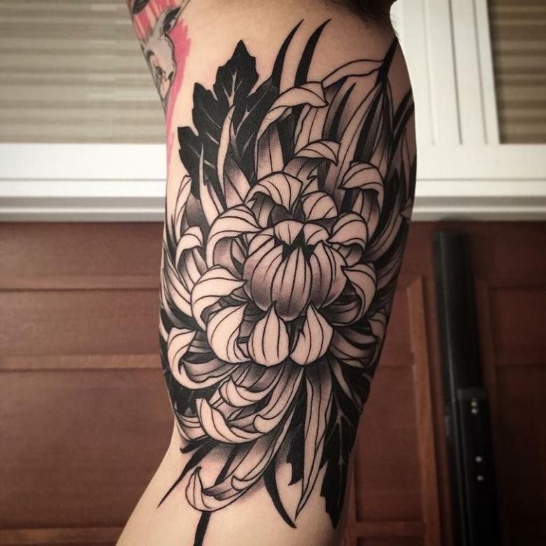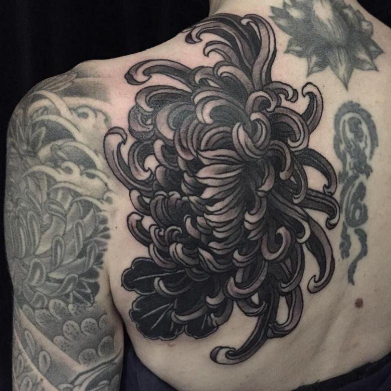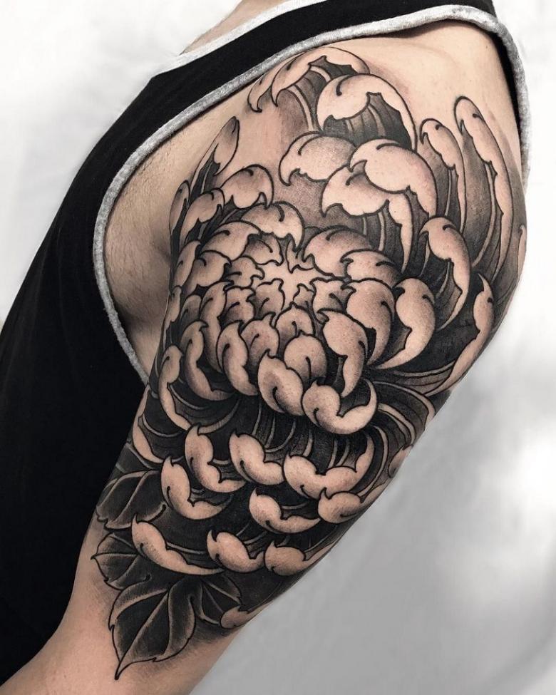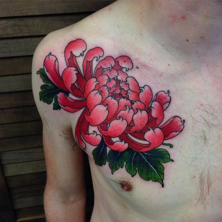Le tatouage de chrysanthème est peut-être le type rare où le choix de l'homme se porte sur une fleur. Apparemment, pour cette raison, il s'agit d'un ancien symbole masculin, rappelant les maîtres de sabre japonais, les samouraïs. Le tatouage est un symbole d'intrépidité, de courage, d'endurance, mais il parle aussi de l'amour de la beauté. Il est le symbole de la victoire, du désir d'atteindre de plus hauts sommets dans toute entreprise.