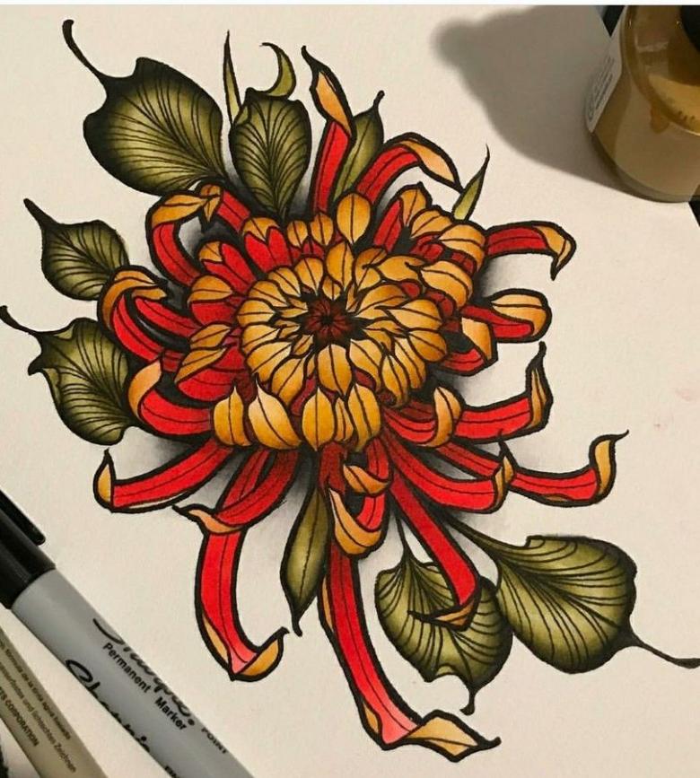 Si nous voyons le tatouage d'un chrysanthème, nous devons d'abord prêter attention à la teinte de la plante afin d'interpréter l'image avec précision. Les interprétations peuvent être les suivantes :