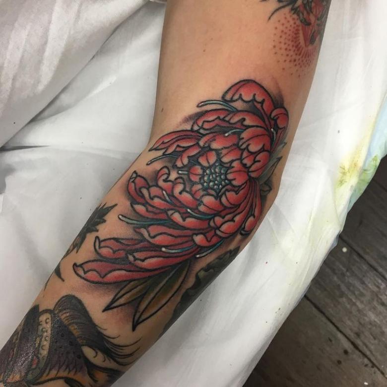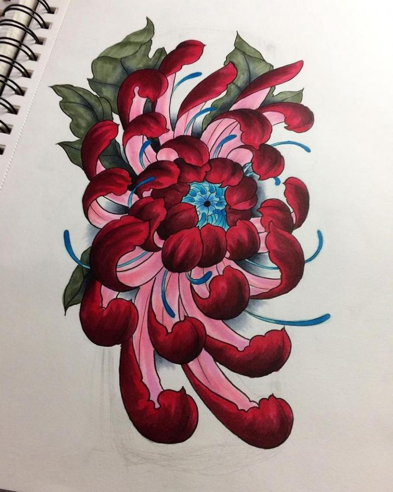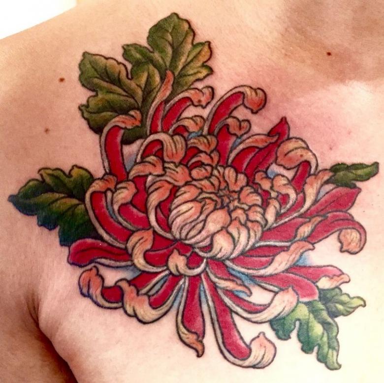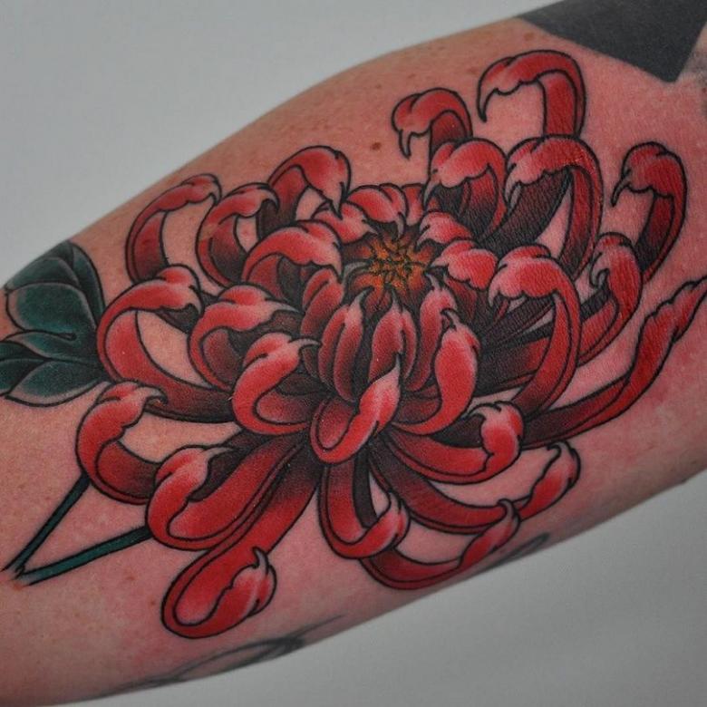 - Un tatouage de chrysanthème rouge est le signe d'une nature passionnée. Le tempérament est chaud, et l'émotivité est exacerbée. Le tempérament dans ce cas est rare, le porteur est souvent expressif, impulsif, il a une sensualité particulière, de la chaleur.