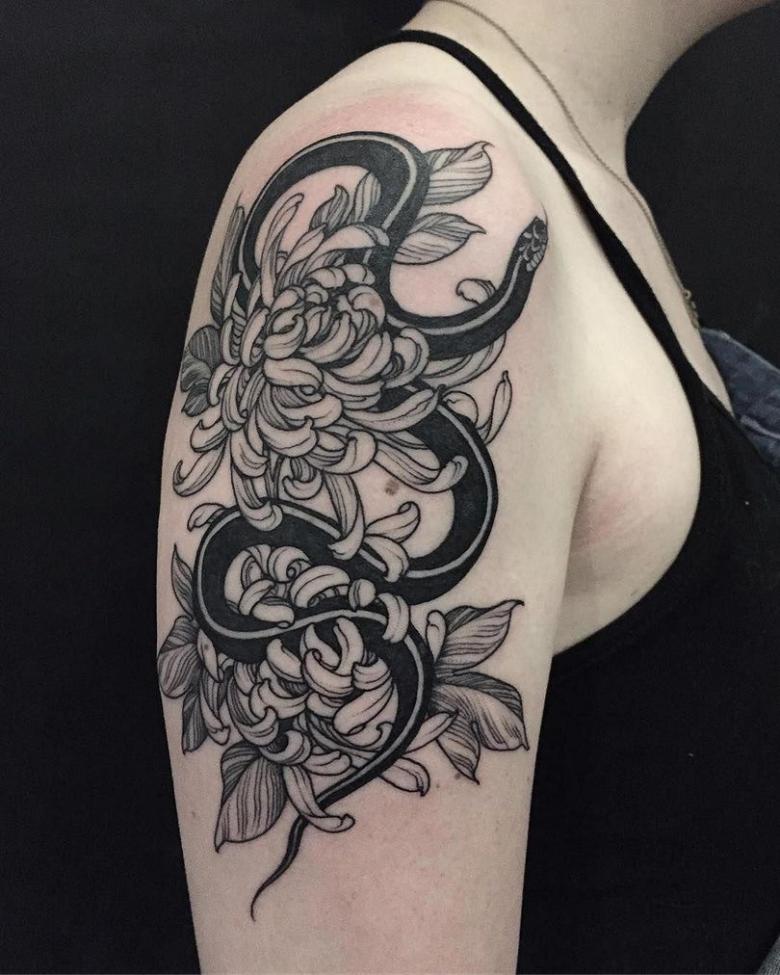 Si une femme veut emprunter un peu de traits masculins, elle peut opter pour un tatouage de chrysanthème et absorber certaines qualités à travers lui. Il s'agit d'un dessin populaire pour les filles au caractère d'amazones, de sportives, un peu hooligans. Pour les femmes, la fleur signifie la persévérance et la détermination, un caractère bien trempé, la détermination, l'inflexibilité face à l'adversité, ainsi que la patience.