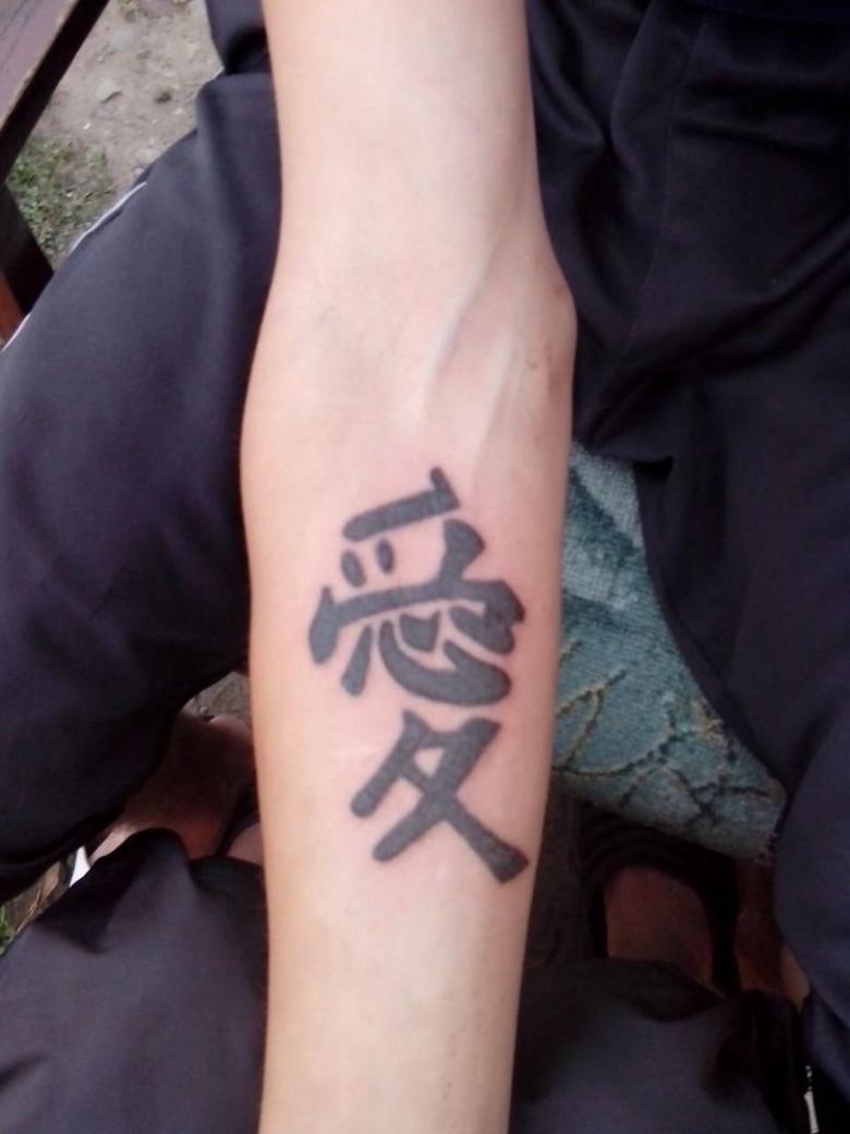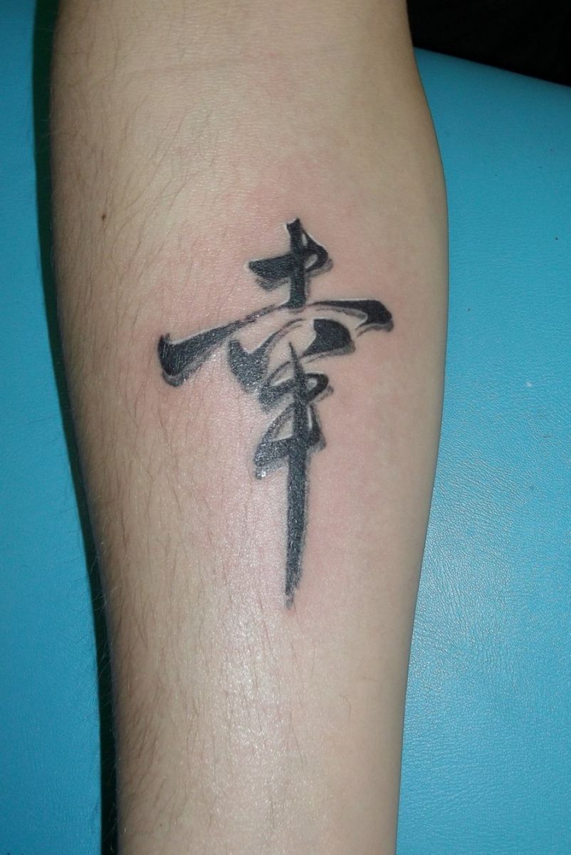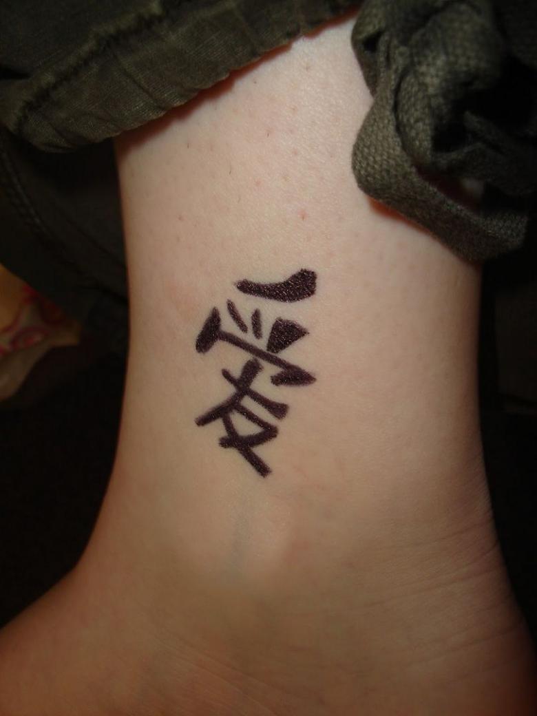 - Le caractère chinois pour "Kind". En tant que symbole autonome, il est rarement utilisé, sauf si le porteur souhaite souligner un aspect de son caractère. Il y a souvent un élément supplémentaire dans l'inscription.