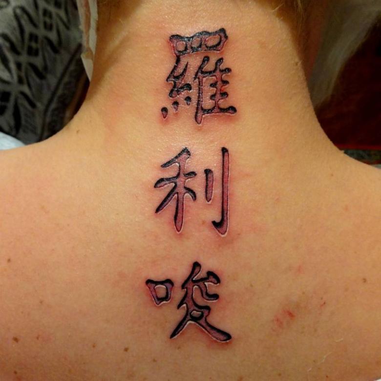 Les filles préfèrent avoir ces tatouages sur le cou, le ventre, le dos et les jambes. Les hommes, quant à eux, choisissent de dessiner sur leurs avant-bras, leur poitrine et leur dos. En outre, le beau sexe préfère un signe d'une petite taille, mais les hommes - le plus grand. Curieusement, ils peuvent être positionnés verticalement ou horizontalement sur le corps.