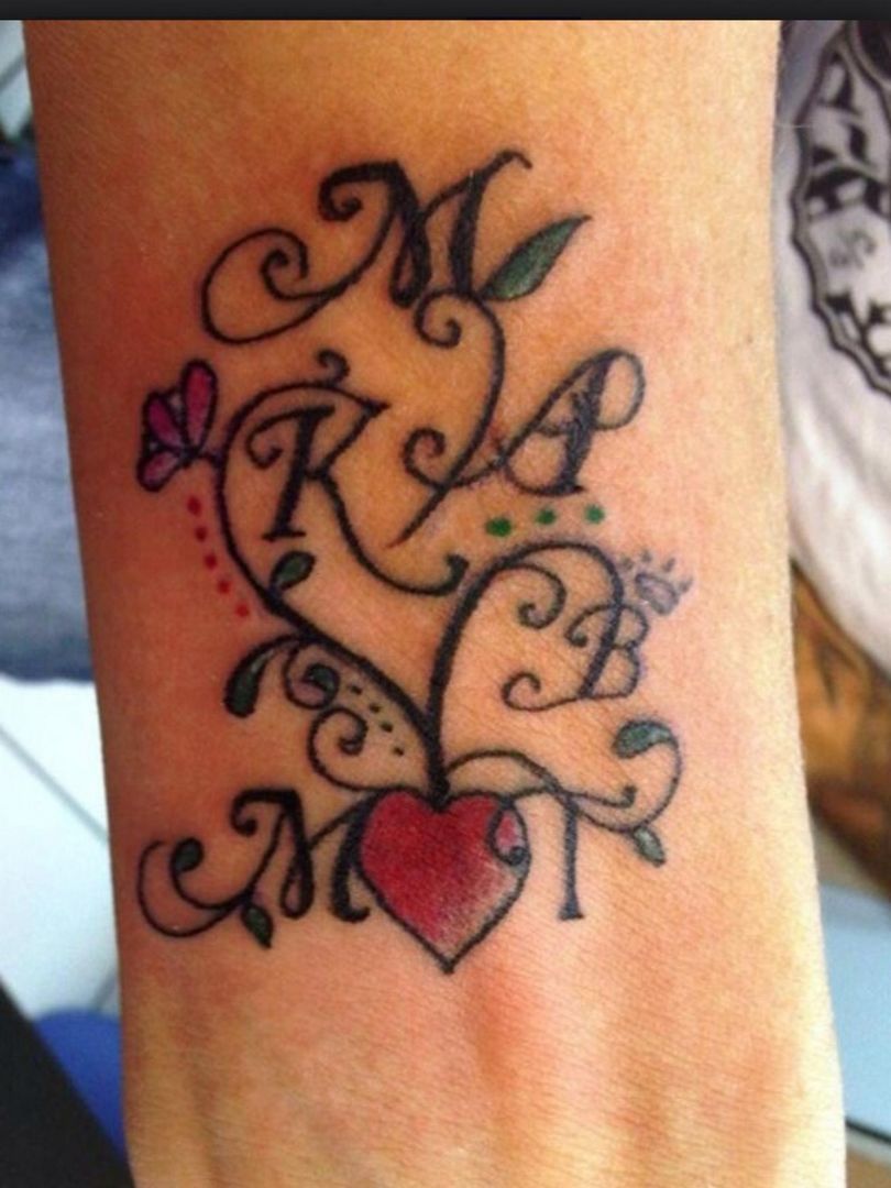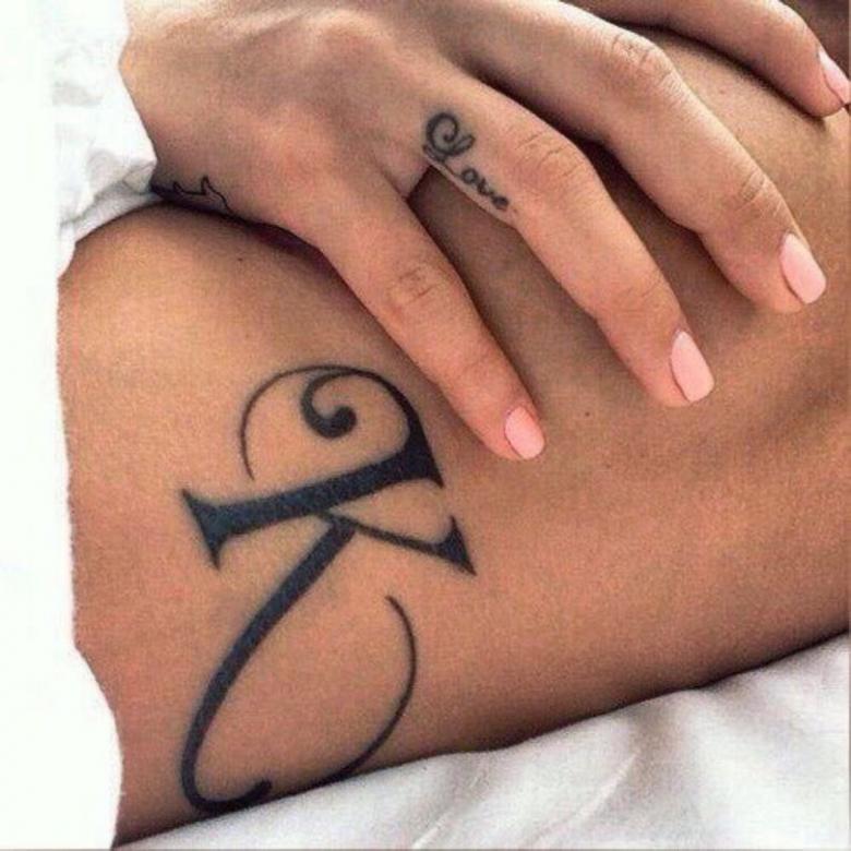 Dans la plupart des cas, les filles les plus sentimentales et sensibles choisissent d'avoir les initiales, la première lettre du nom de l'amoureux, comme art corporel. Ce tatouage est également très populaire auprès des jeunes mères, qui y appliquent la première lettre du nom de leur enfant - symbolique et touchant. Souvent, la lettre peut représenter la lettre initiale du nom d'une personne qui n'est plus en vie, mais dont ils veulent garder le souvenir à jamais.