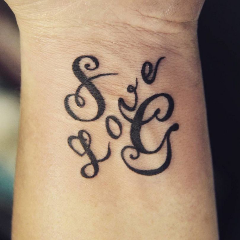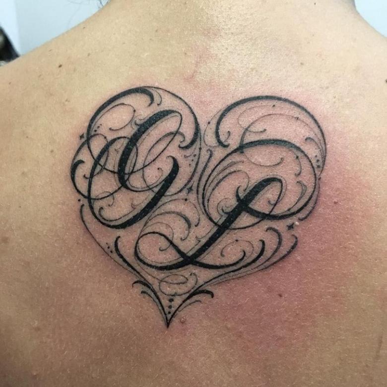 Presque tous les maîtres ont été confrontés au travail avec des lettres. Un bon maître proposera toujours une variante d'un croquis individuel d'un tatouage avec initiales afin d'obtenir l'originalité de la figure.