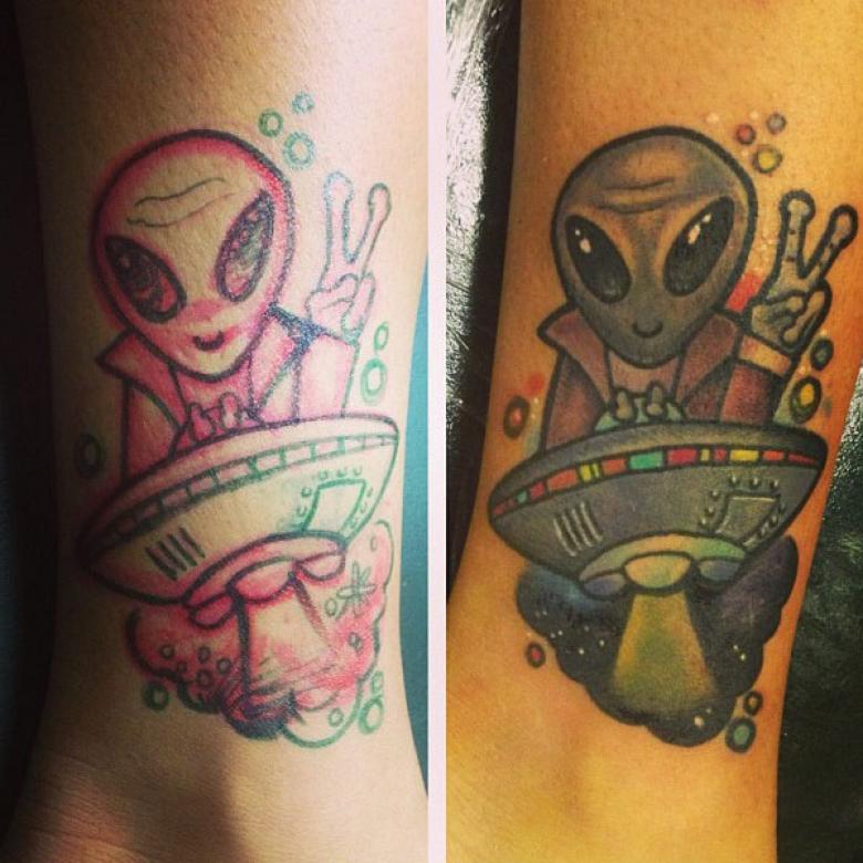 Le tatouage est un moyen de montrer votre état intérieur, et certains dessins laissent la possibilité de changer votre destin. Les images d'OVNI sont un excellent moyen de se rapprocher du mystérieux, d'atteindre le cosmos et de se purifier des valeurs du monde.