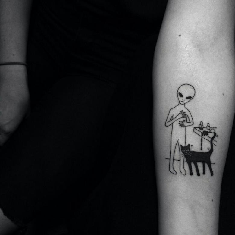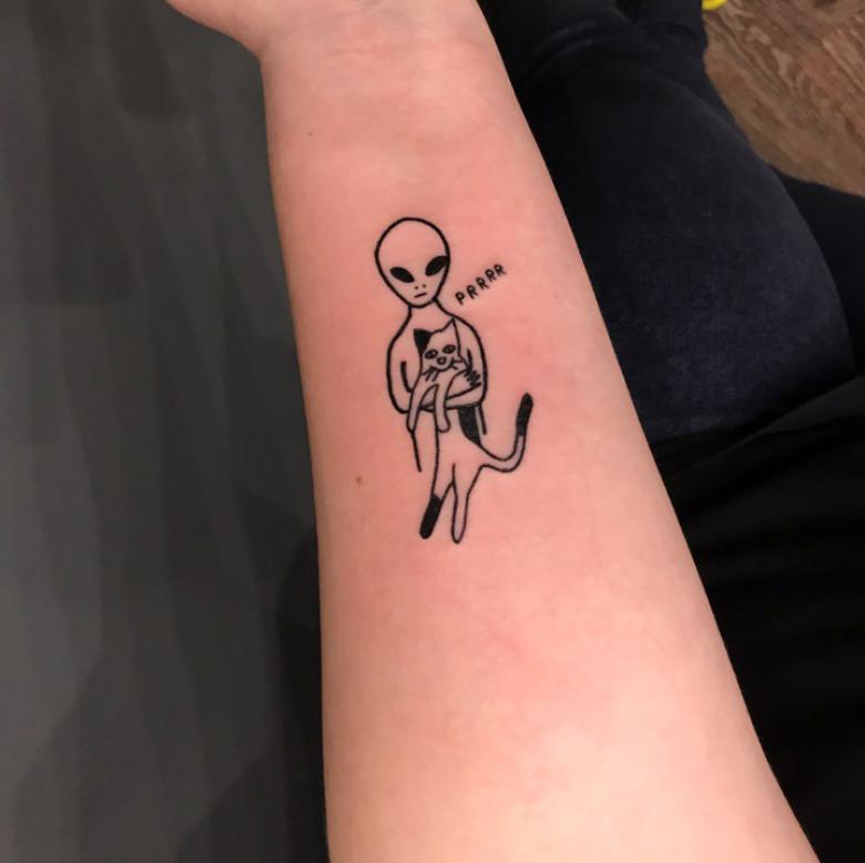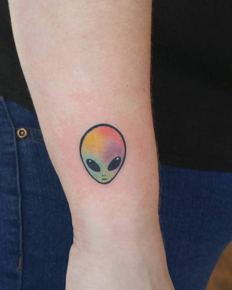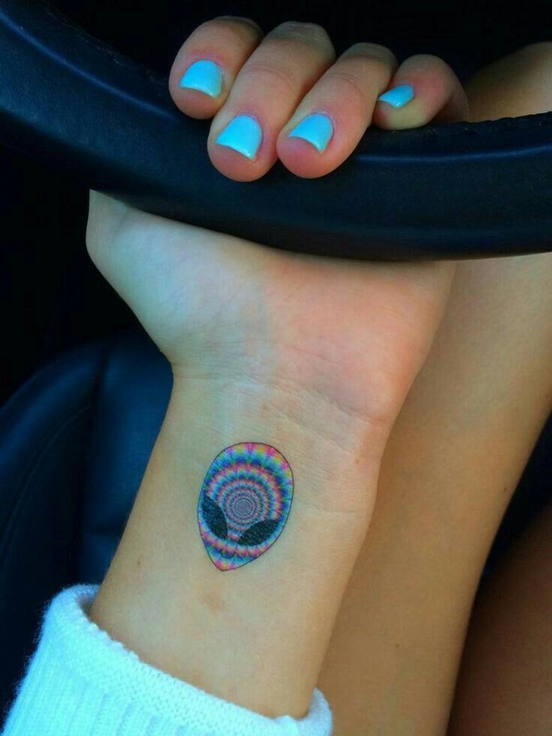 D'ailleurs, statistiquement, ce sont les filles de moins de 25 ans qui le font le plus souvent. Quant aux hommes, les bons OVNIs sont en tandem avec d'autres personnages comme Raoul Duke (Fear and Loathing in Las Vegas). Le plus souvent exprimé dans le minimalisme, il peut simplement s'agir d'un dessin de contour sur le poignet.
