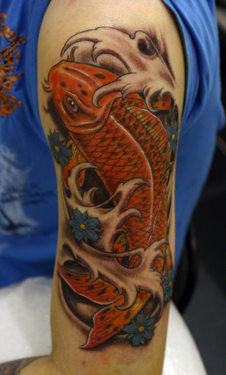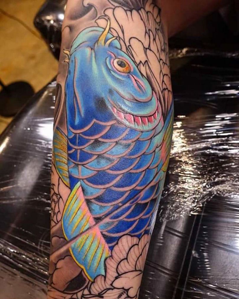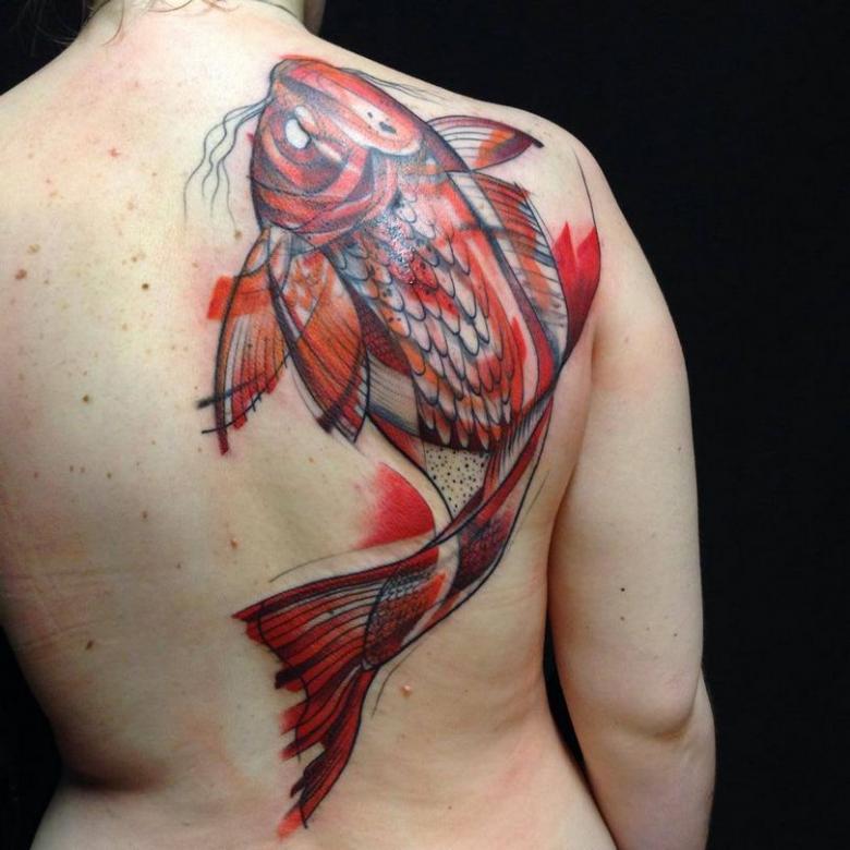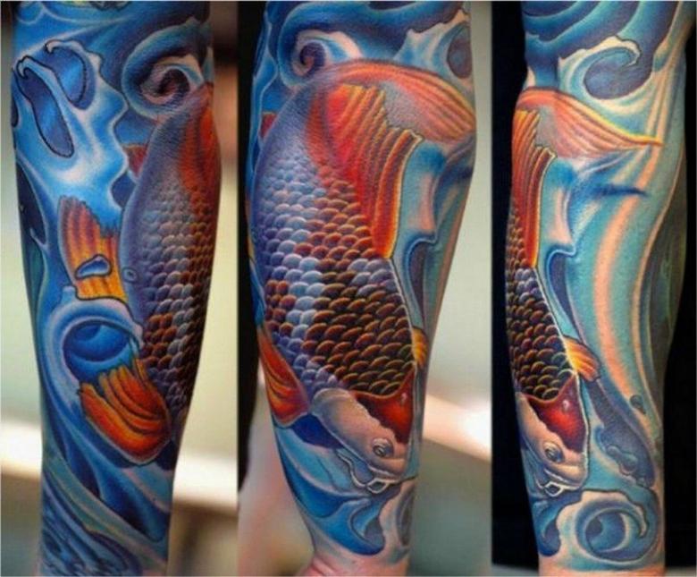 Tatouage de la carpe - légende et signification, croquis de la carpe japonaise koi, comment choisir le schéma de couleurs, où appliquer, photos étonnantes de travaux